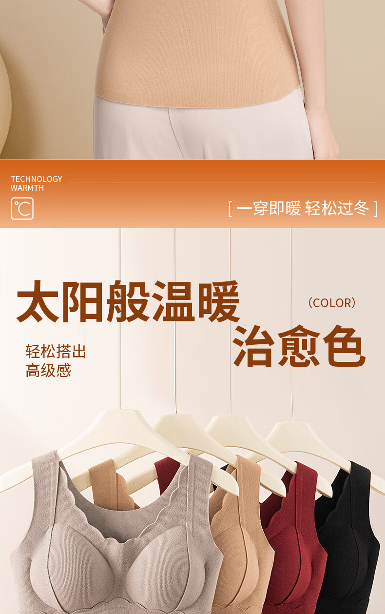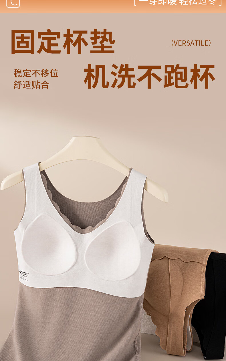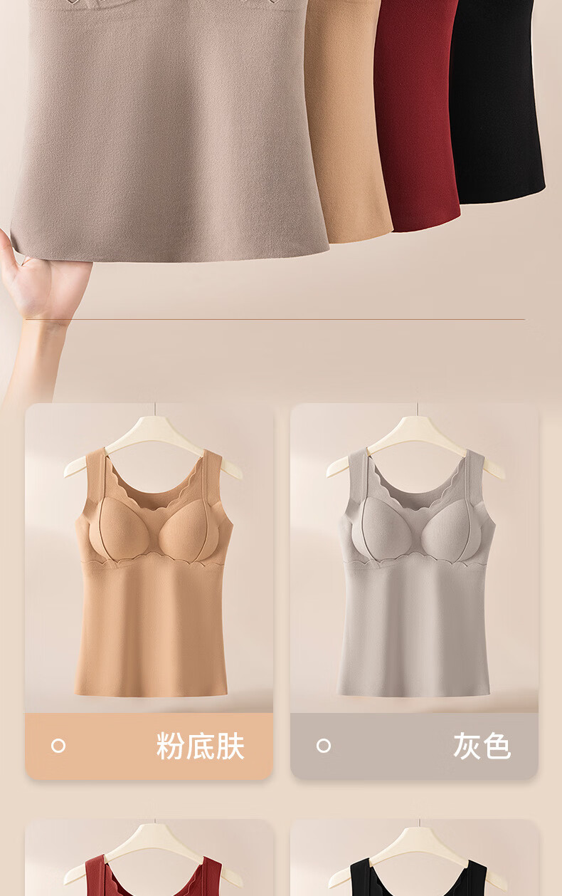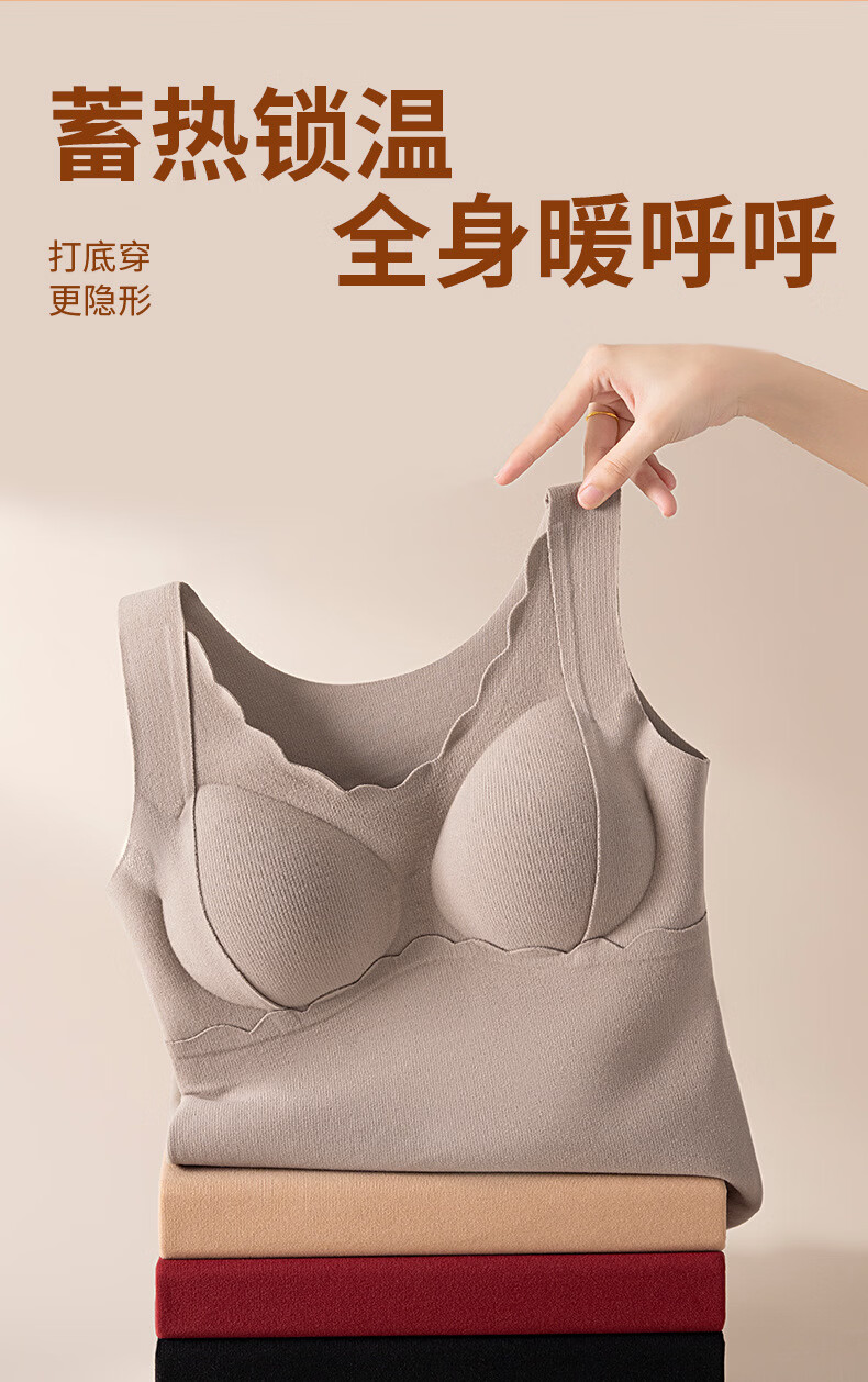 芬腾可安(FENTENGCARE)保暖背心女带胸垫无痕美体内搭打底无袖上衣女本命年红色保暖背心 红色 L (80-100斤)