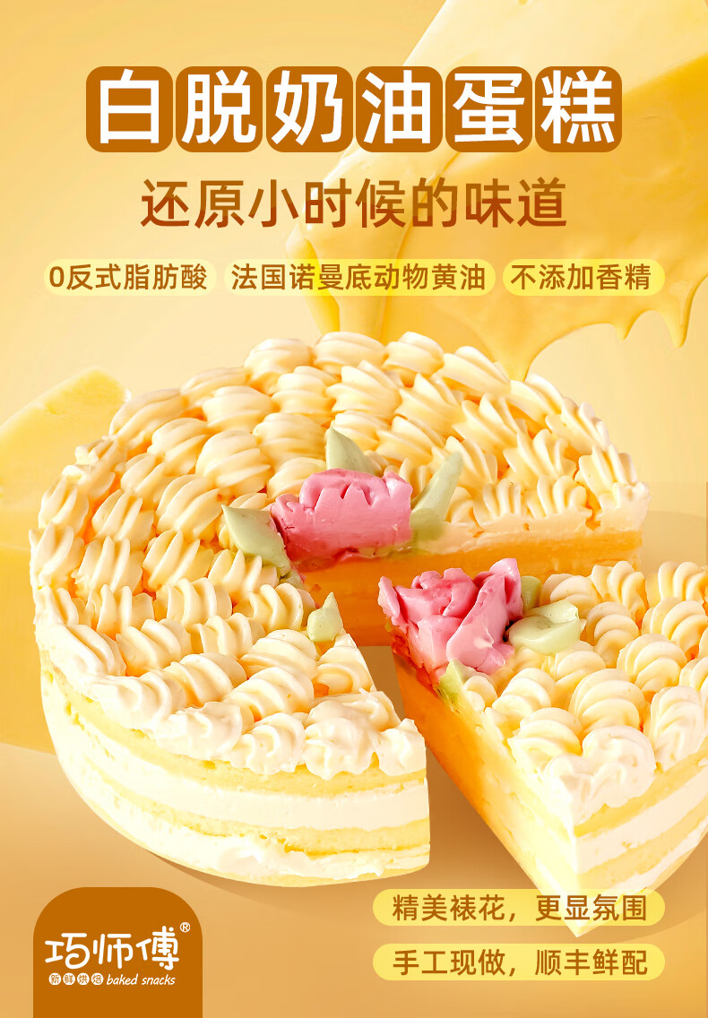 巧师傅白脱奶油蛋糕裱花糕点小时候老式硬奶油动物黄油生日蛋糕甜品零食 白脱奶油蛋糕1个200g