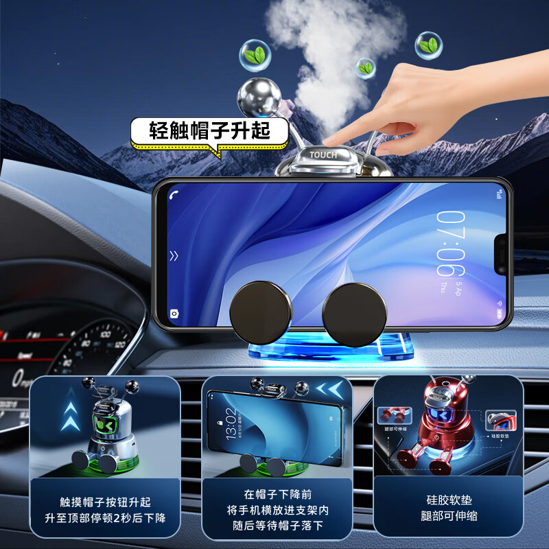 wonew七彩蜗牛车载手机支架电动真空磁吸支架汽车导航架自动吸附可旋转 皓月银【ZJ43 PRO】电动真空吸附