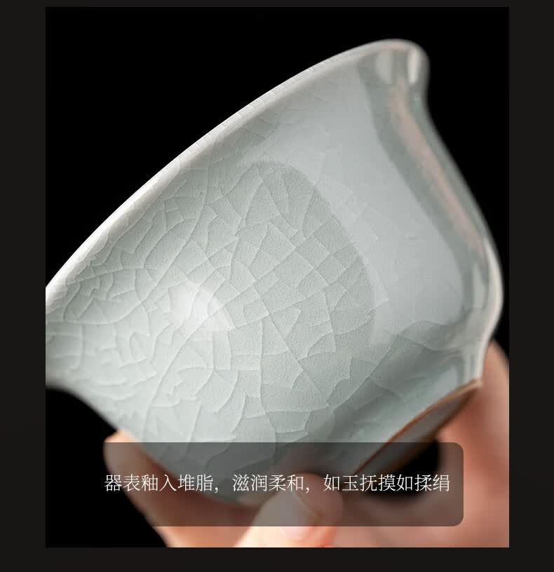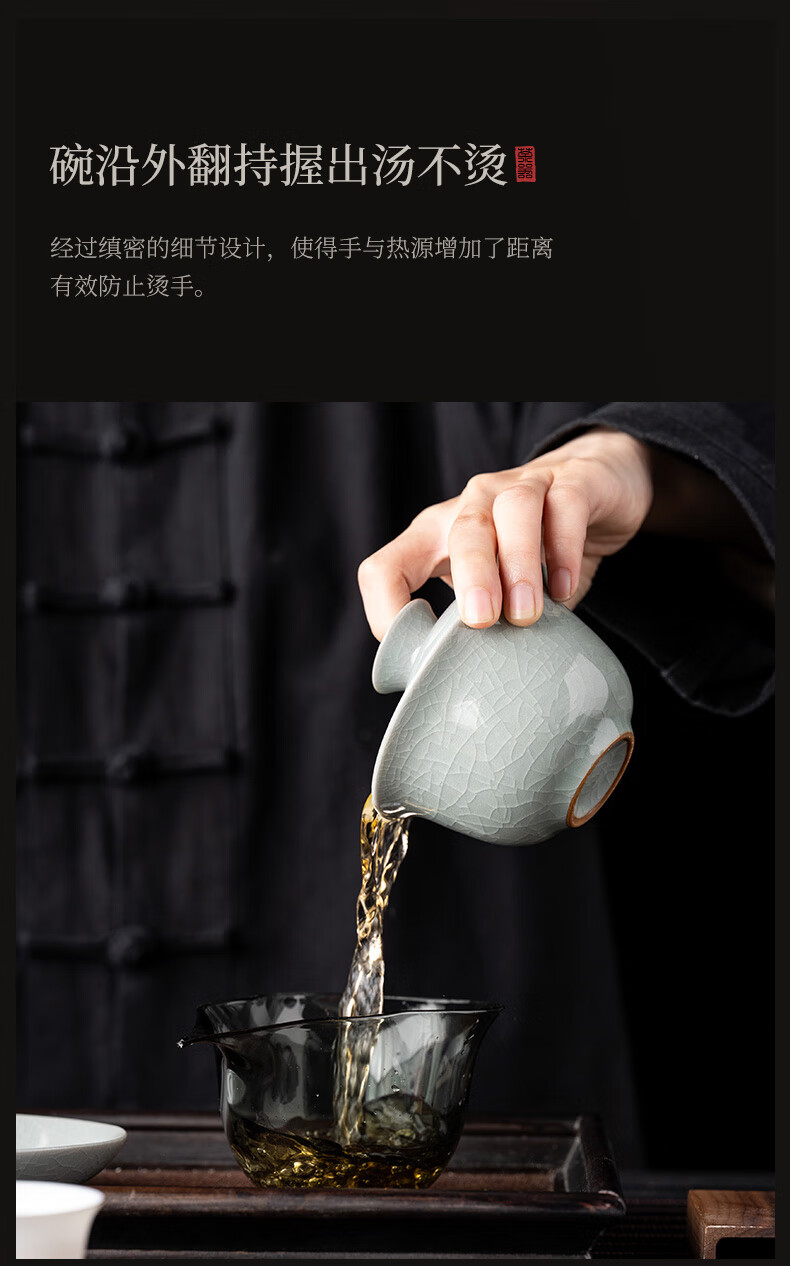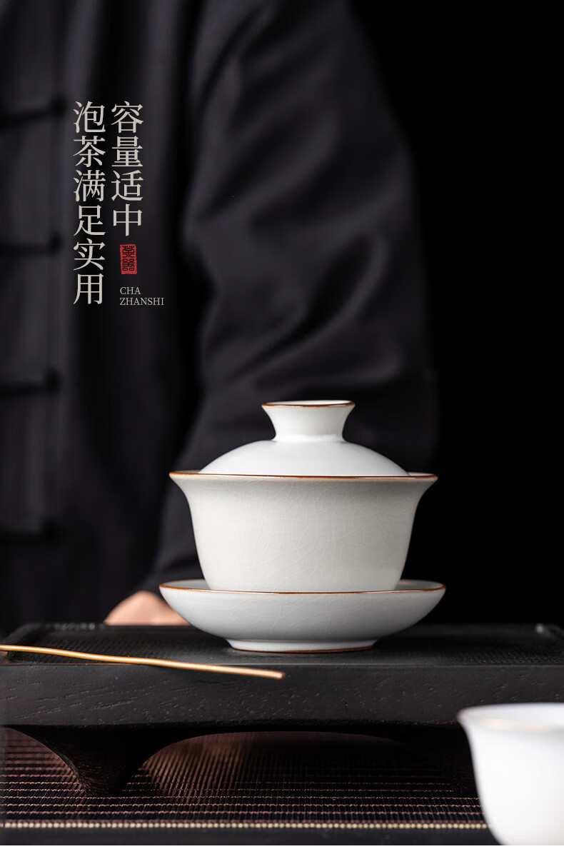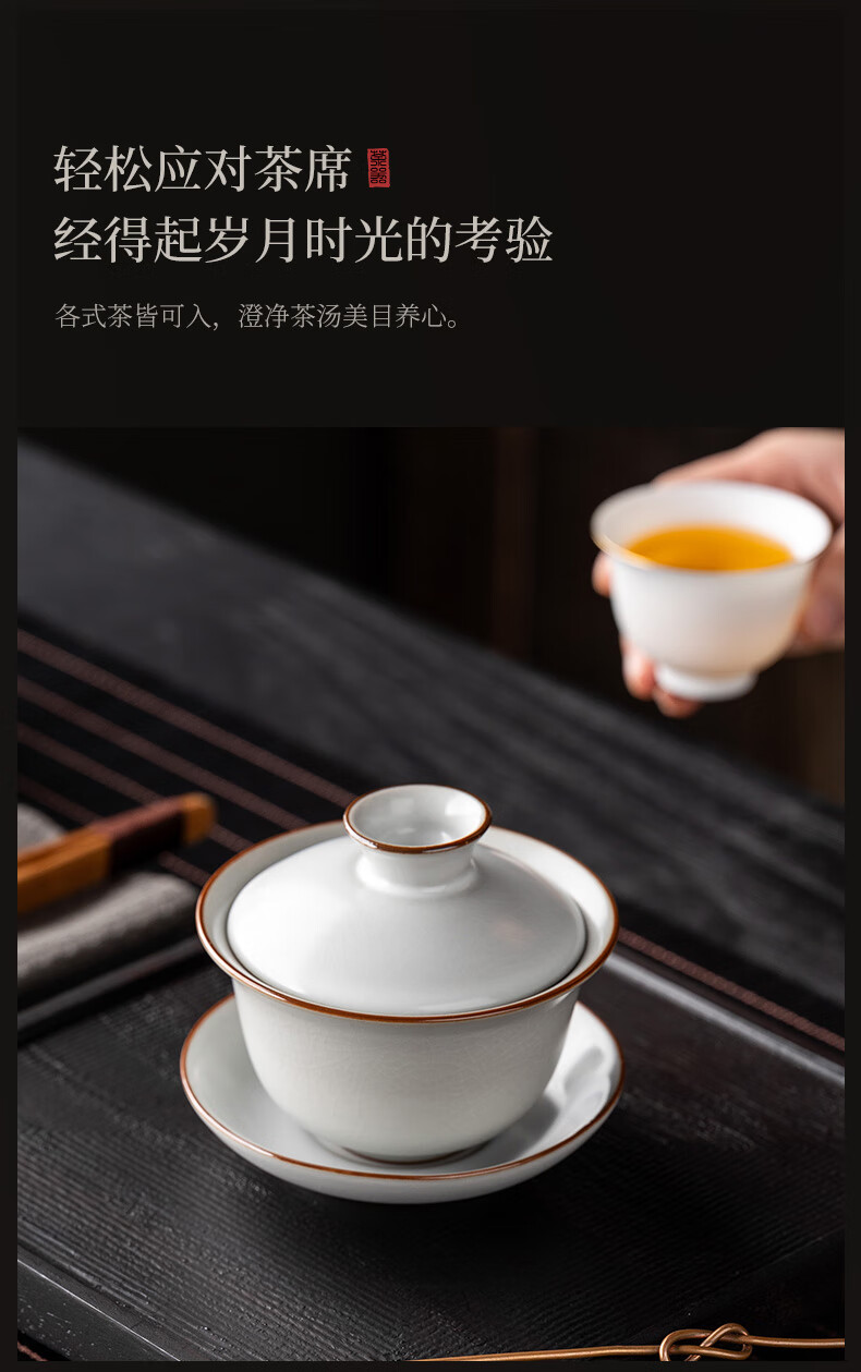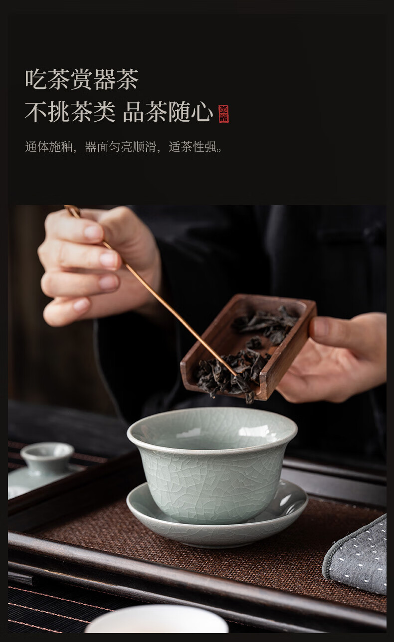 韵化【精选直发】汝窑三才盖碗开片铁线单个高档可养家用泡茶茶碗礼盒 密釉绿三才盖碗