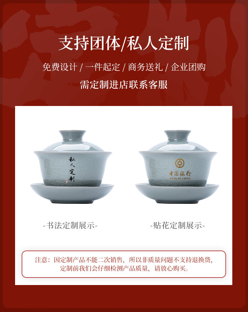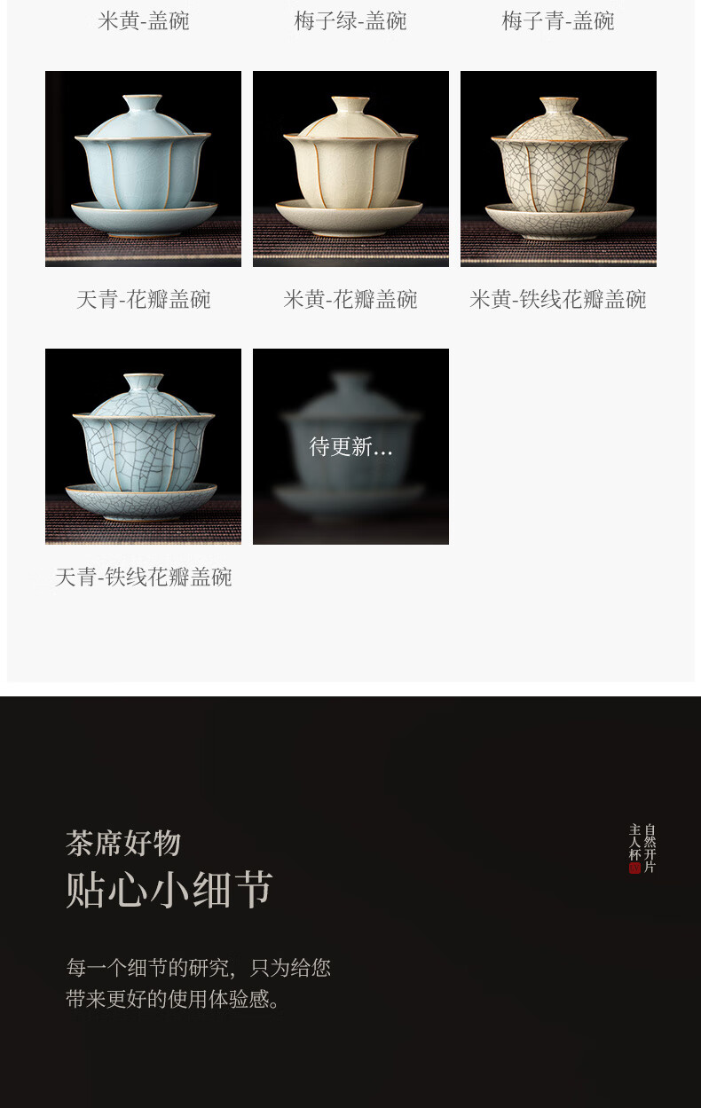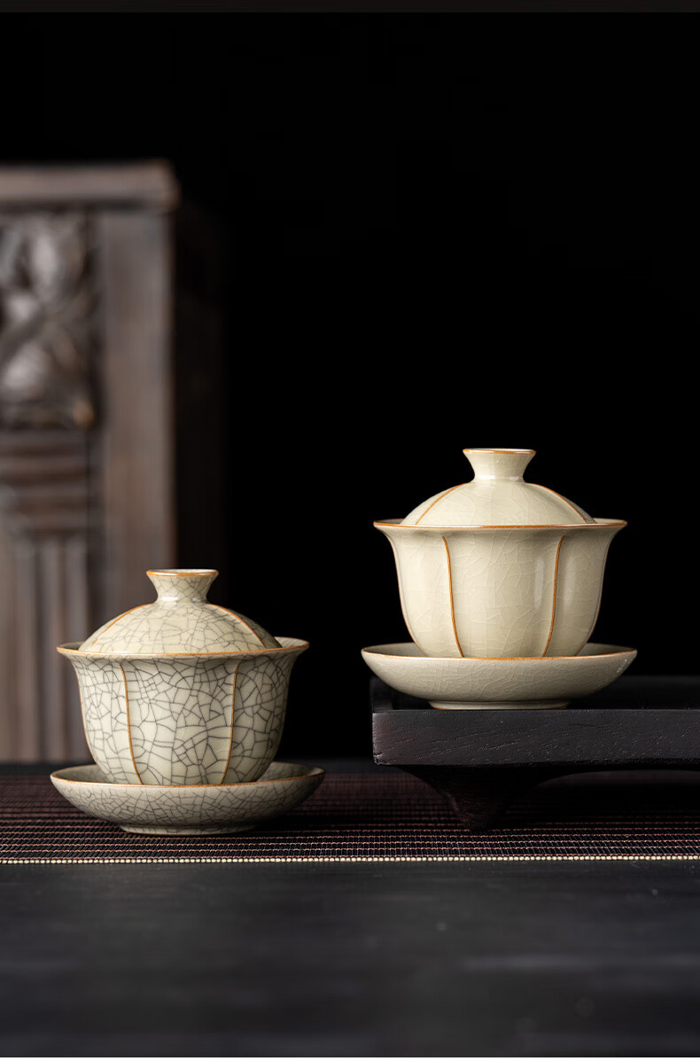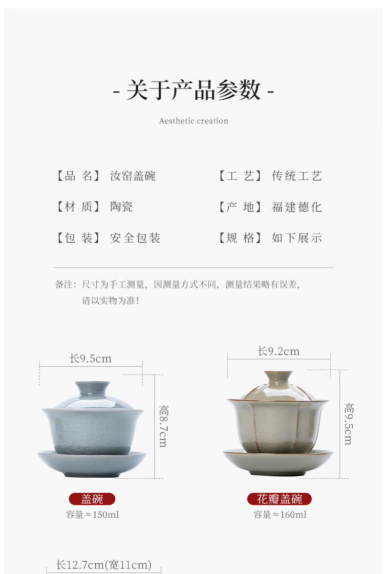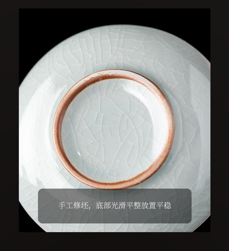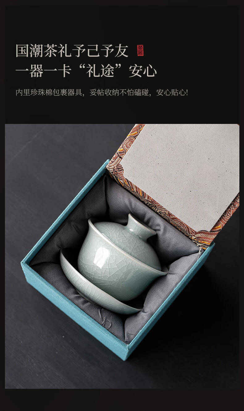 韵化【精选直发】汝窑三才盖碗开片铁线单个高档可养家用泡茶茶碗礼盒 密釉绿三才盖碗