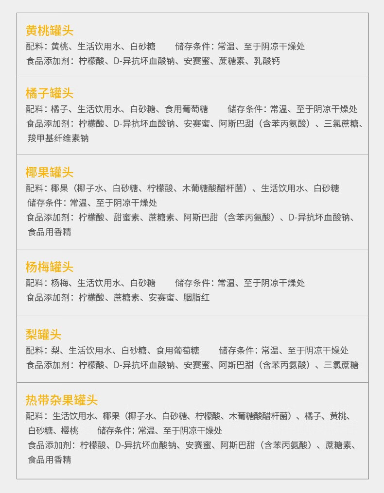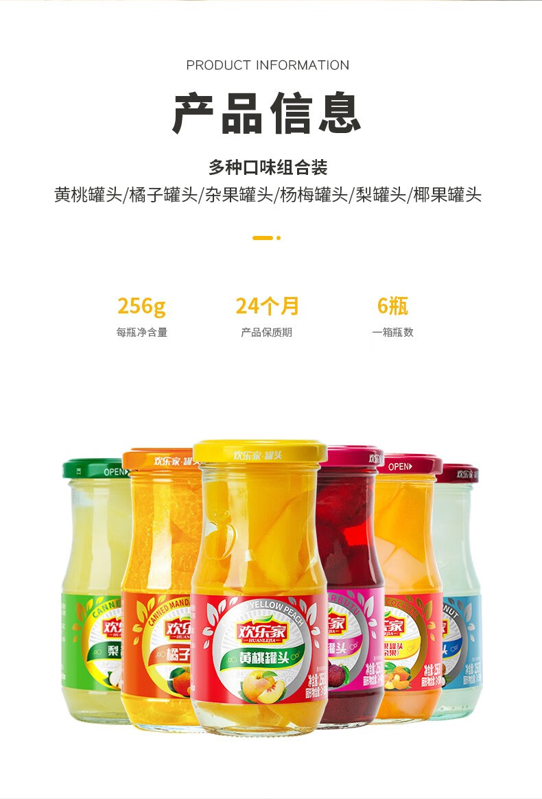 欢乐家 6合1组合水果罐头256g*6罐 黄桃/橘子/杨梅/雪梨/椰果/什锦各1罐