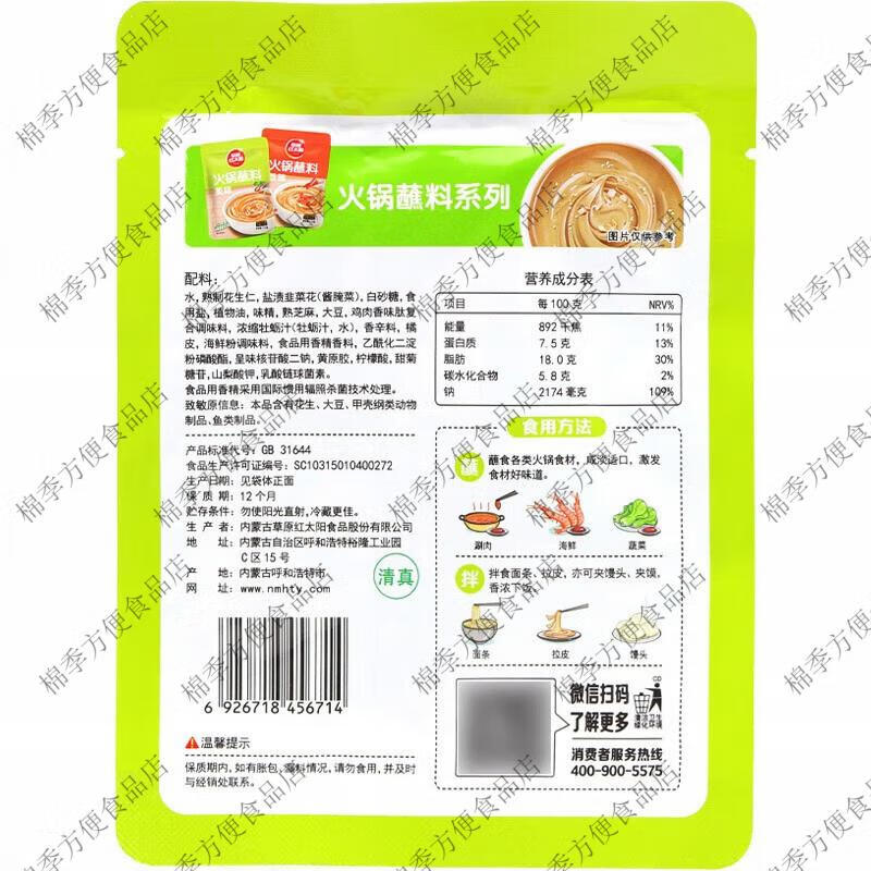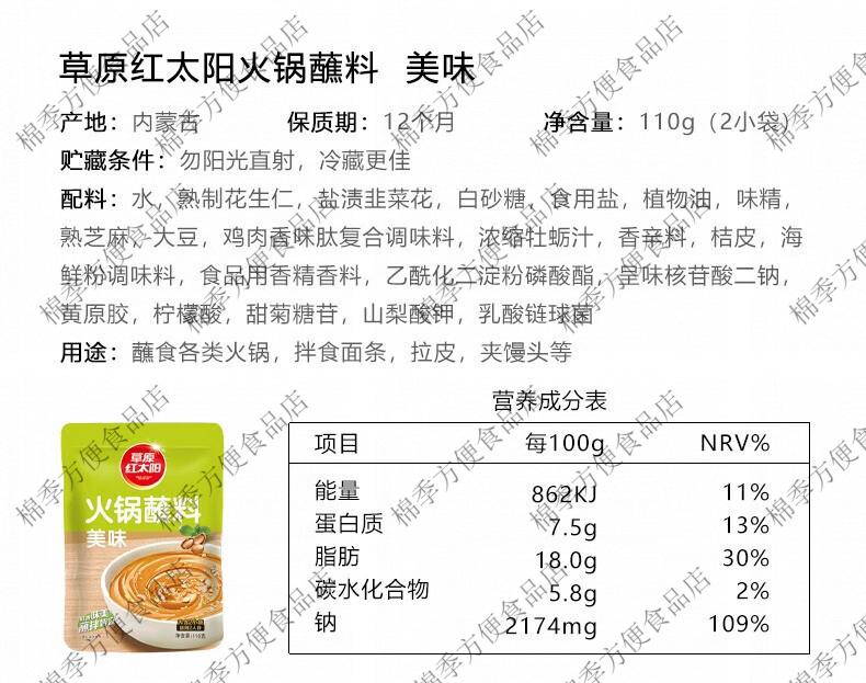 火锅蘸料110g原味香辣家用麻酱涮羊肉拌面酱料小包装 火锅蘸料美味110g