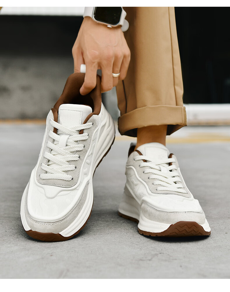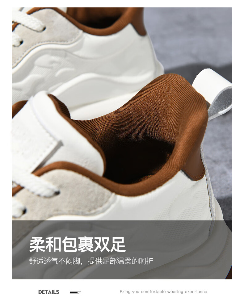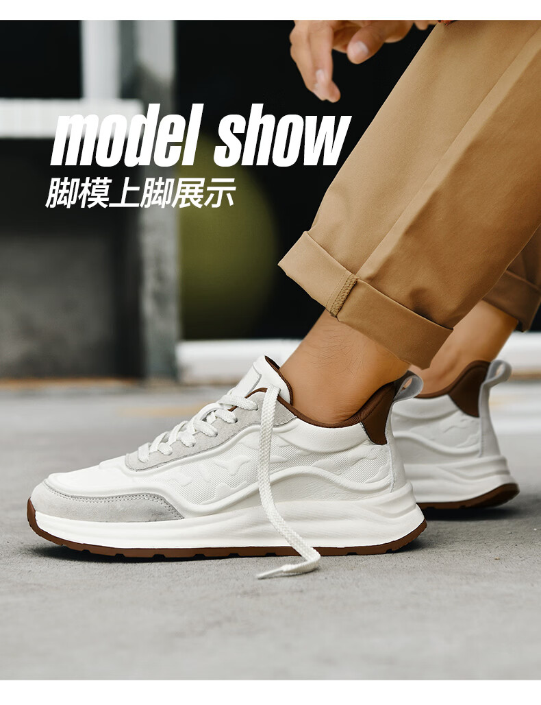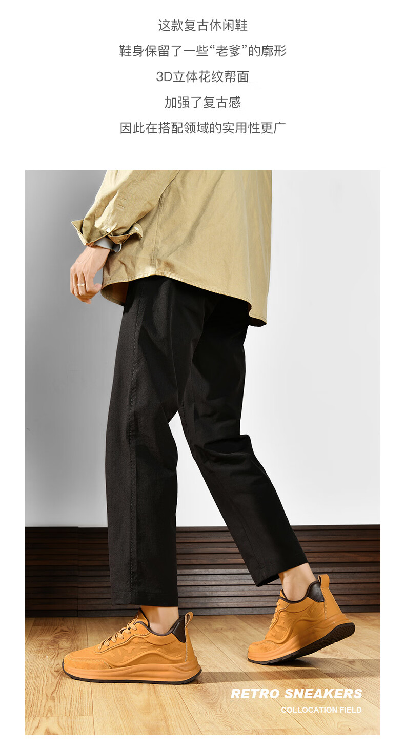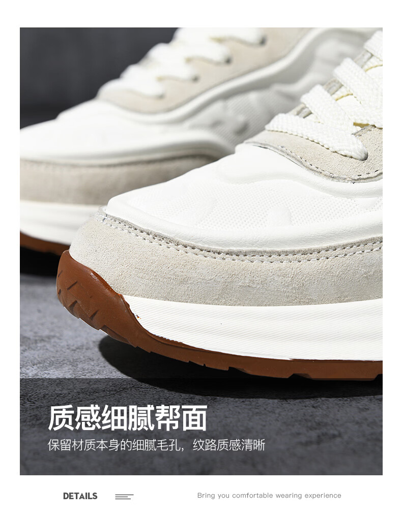 卡帝乐鳄鱼男鞋春夏季真皮复古厚底增高老爹鞋防滑鞋子男跑步减震运动休闲鞋 米色[四季款] QH8311 40 [运动鞋码]