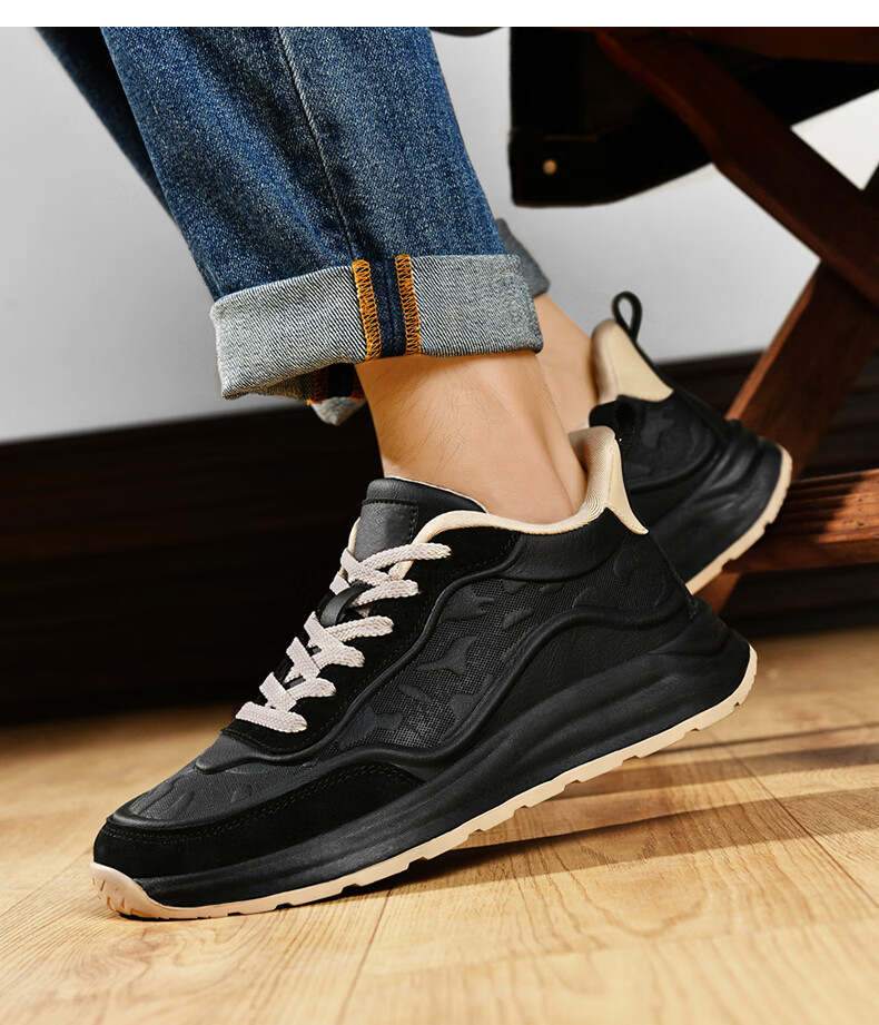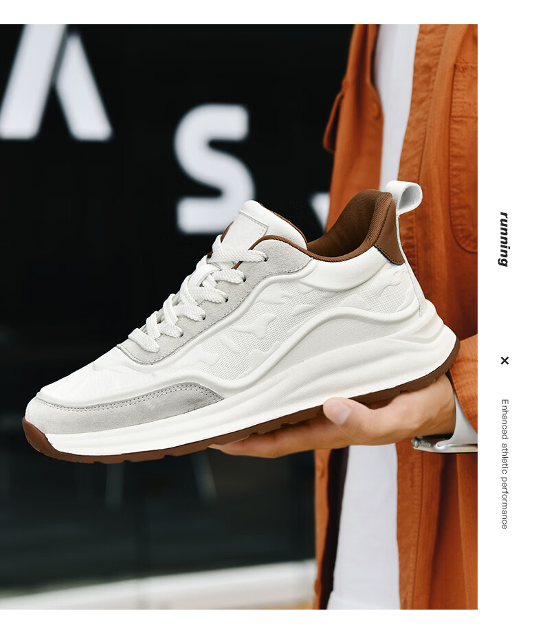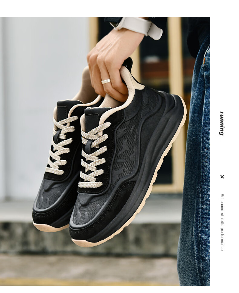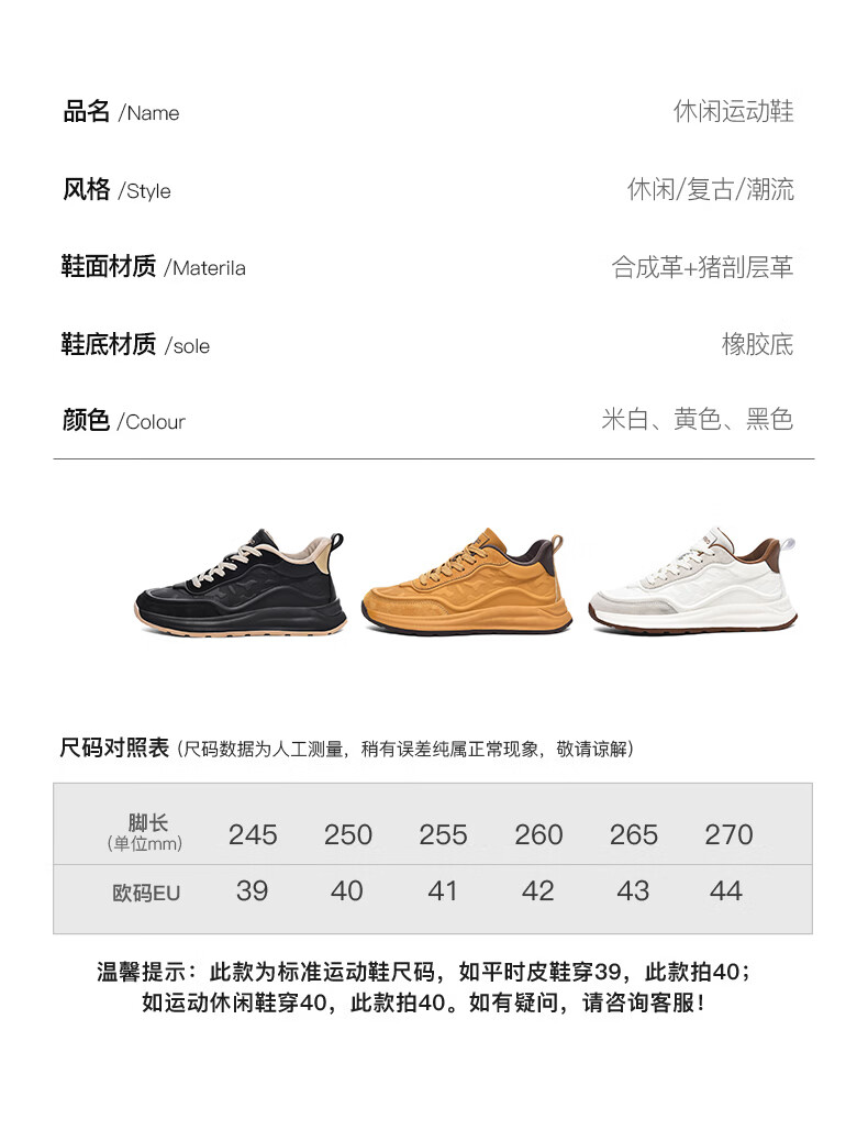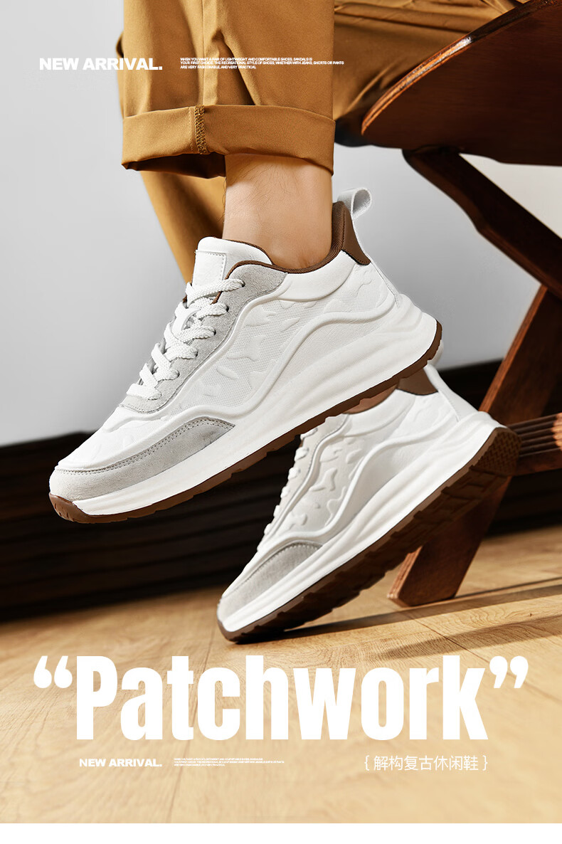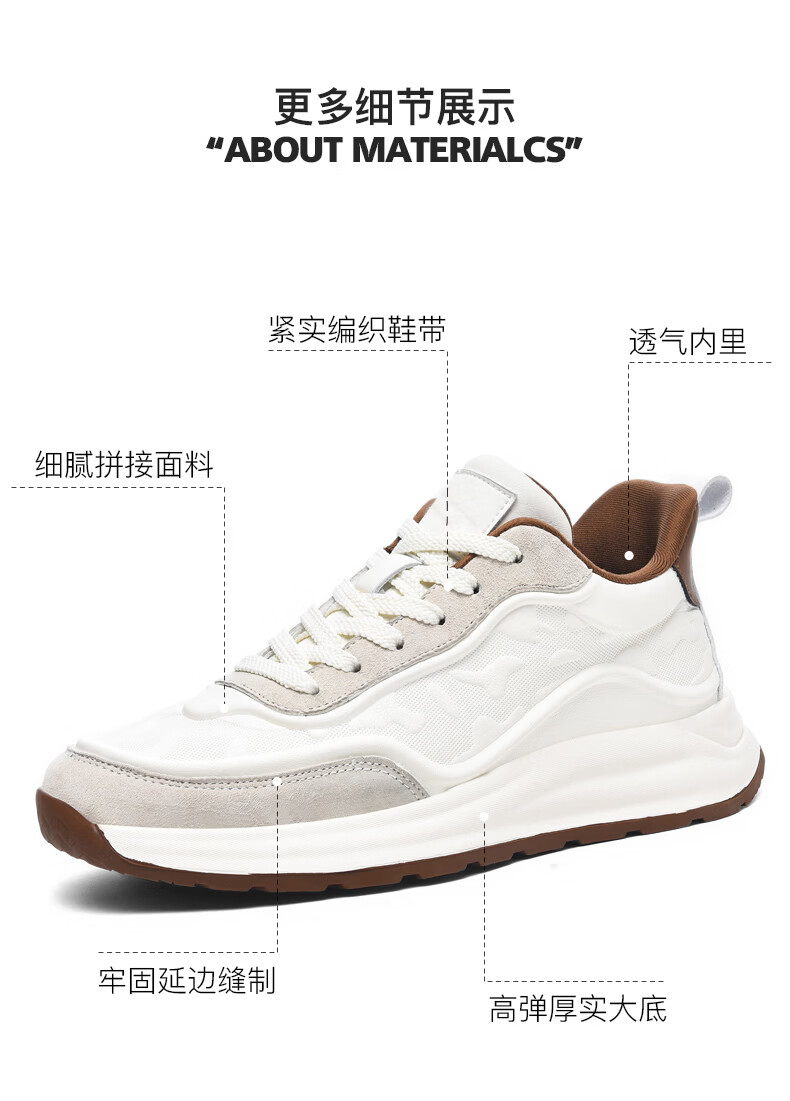 卡帝乐鳄鱼男鞋春夏季真皮复古厚底增高老爹鞋防滑鞋子男跑步减震运动休闲鞋 米色[四季款] QH8311 40 [运动鞋码]