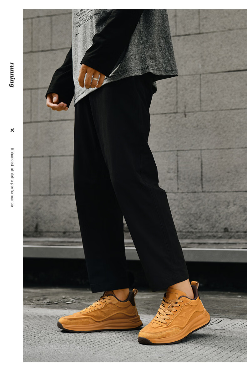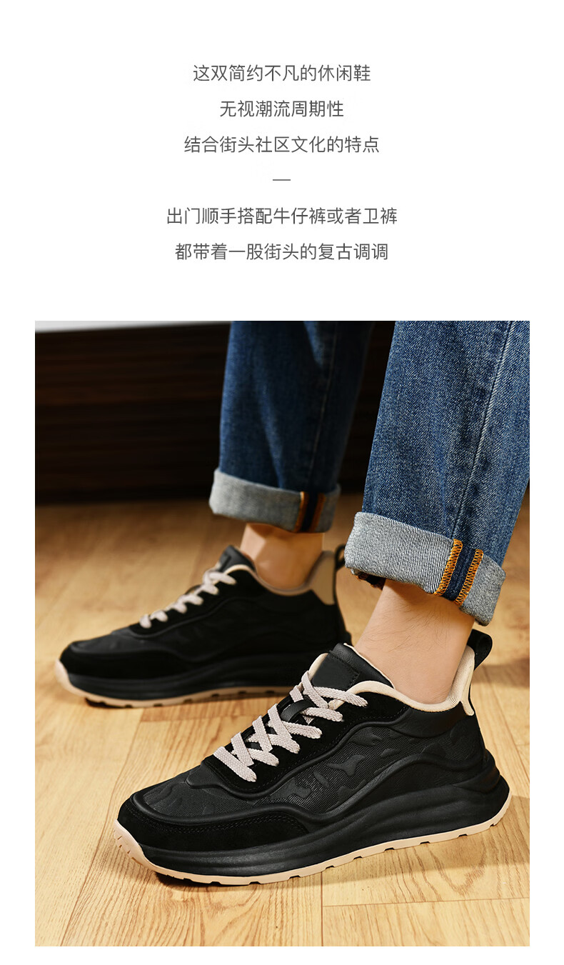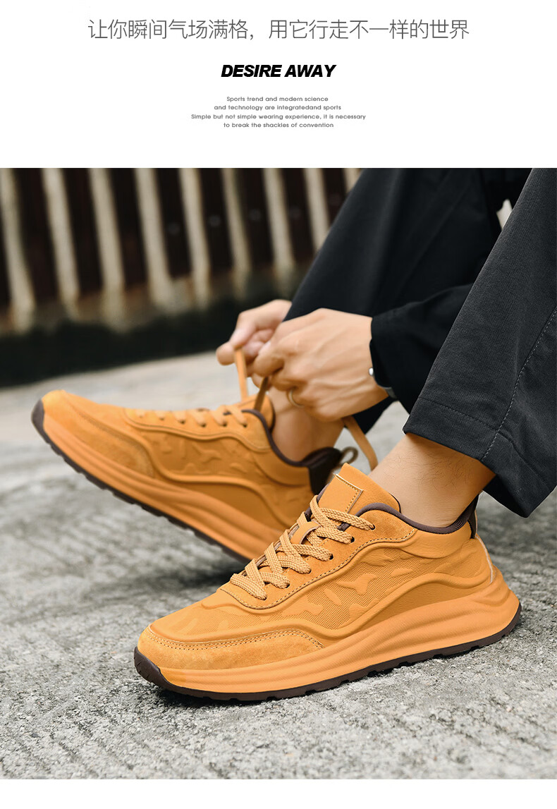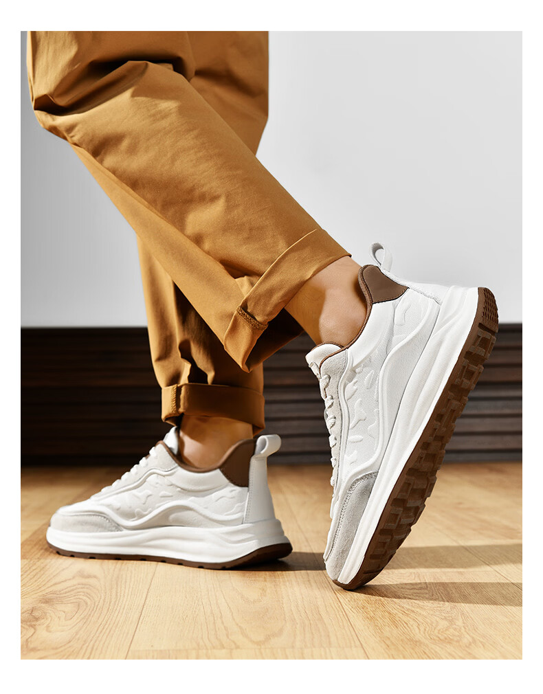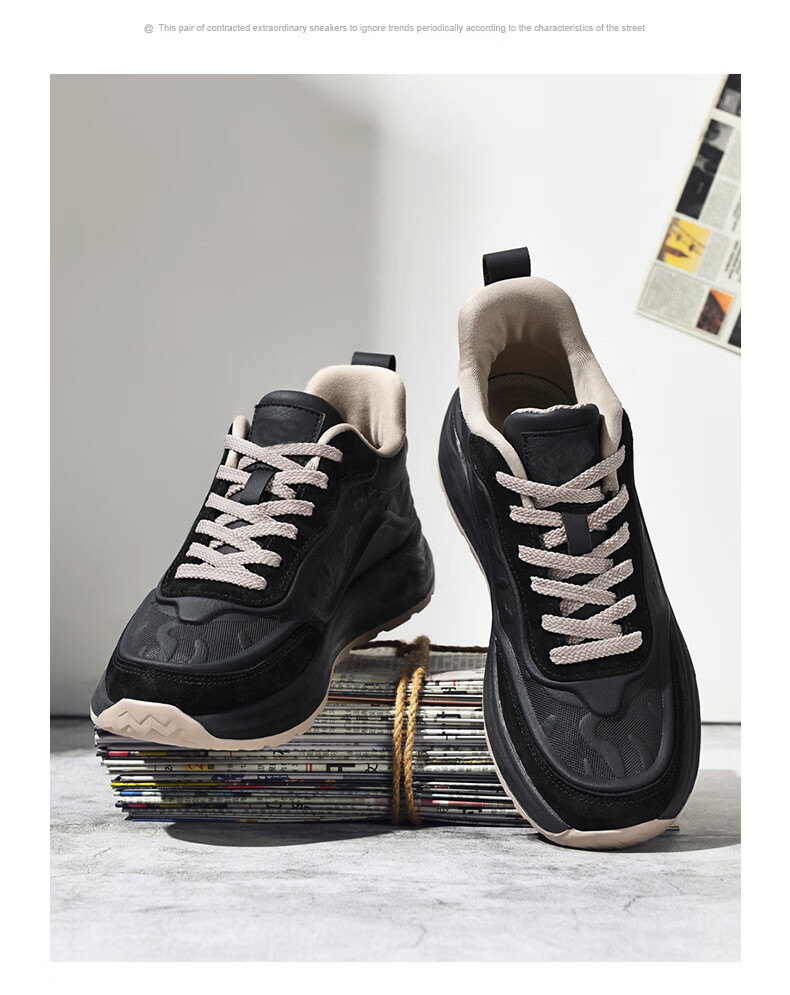卡帝乐鳄鱼男鞋春夏季真皮复古厚底增高老爹鞋防滑鞋子男跑步减震运动休闲鞋 米色[四季款] QH8311 40 [运动鞋码]