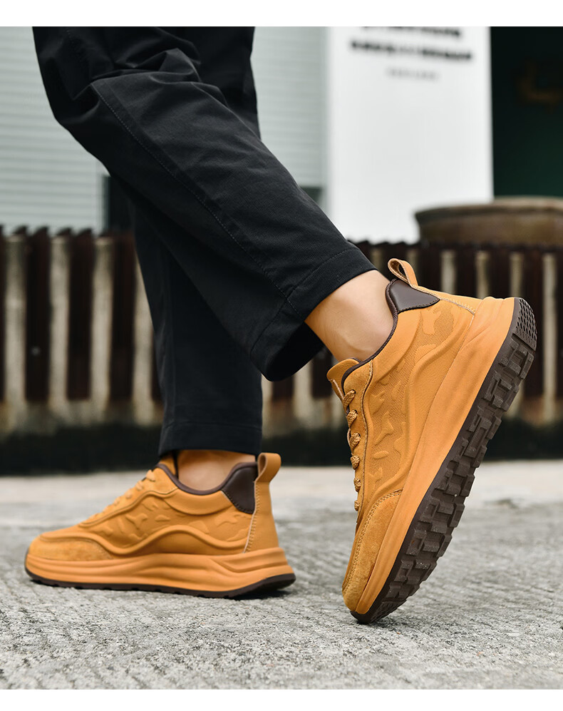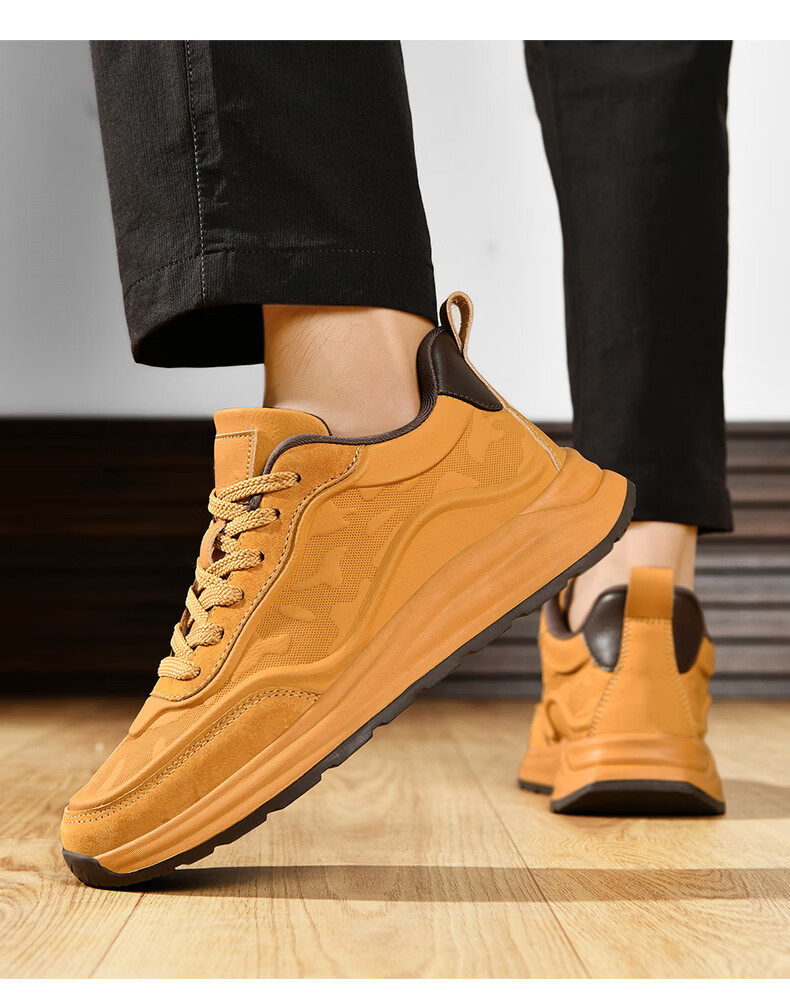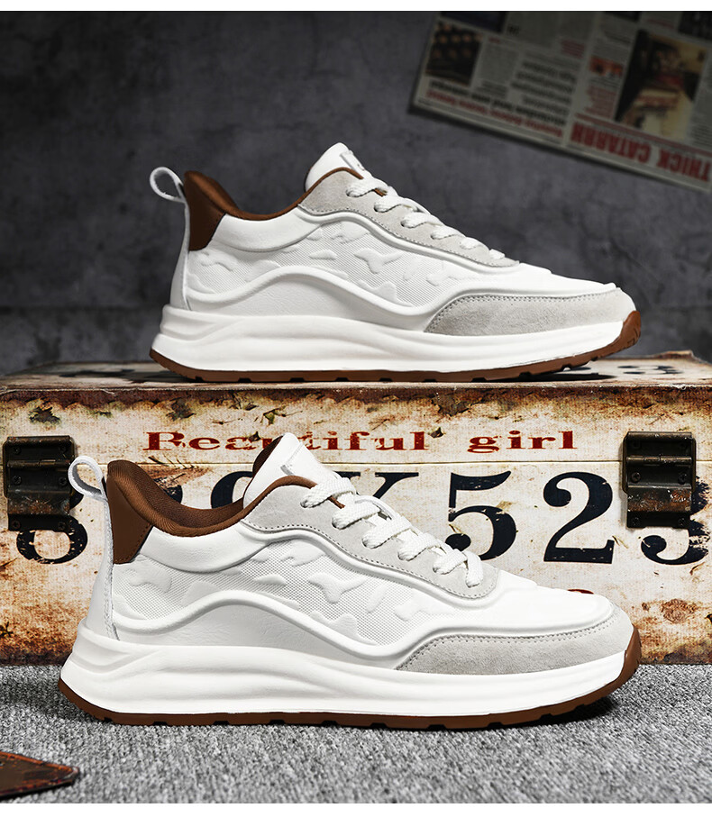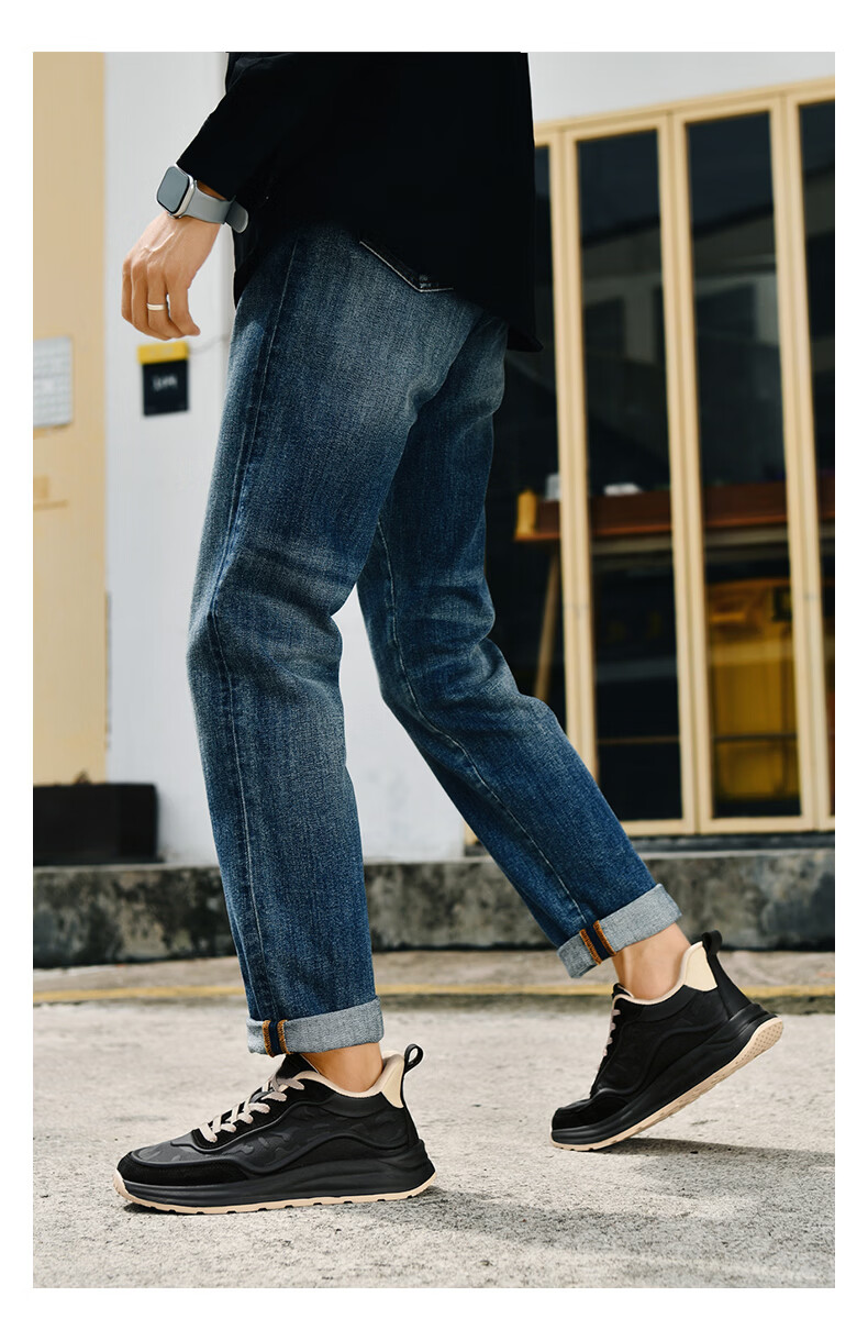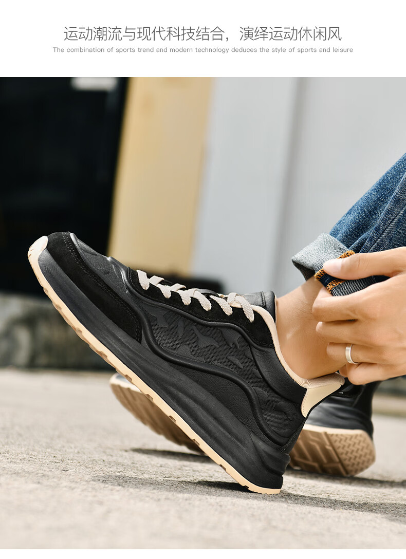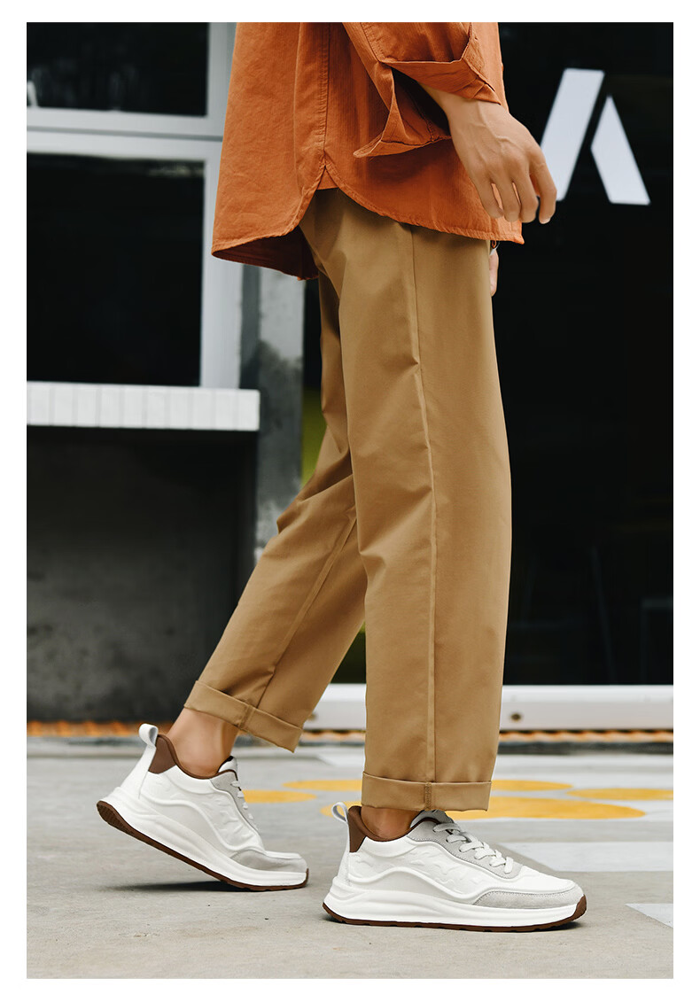 卡帝乐鳄鱼男鞋春夏季真皮复古厚底增高老爹鞋防滑鞋子男跑步减震运动休闲鞋 米色[四季款] QH8311 40 [运动鞋码]