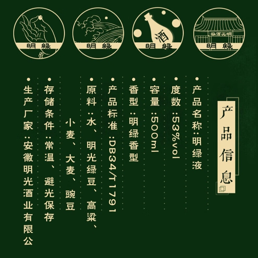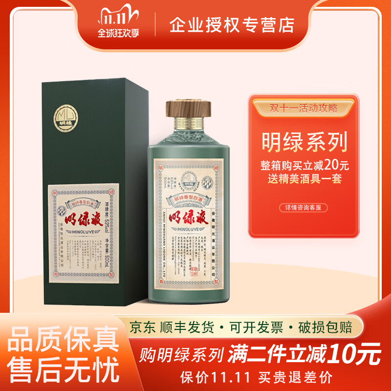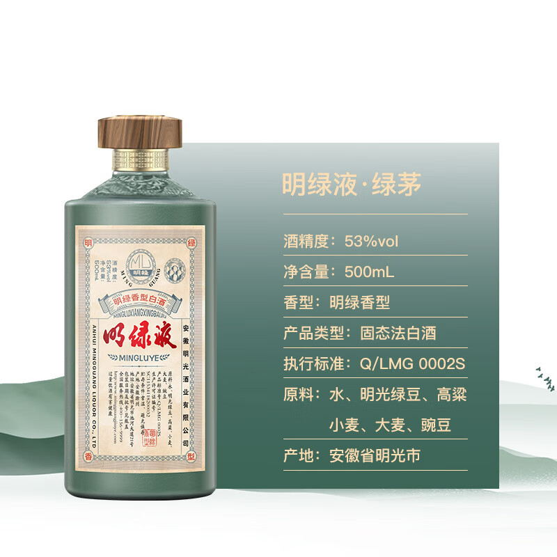 明光酒明绿系列新品 明绿液 明绿香型 白酒53度 500ml 单瓶 53度 1000mL 2瓶 二瓶礼盒装