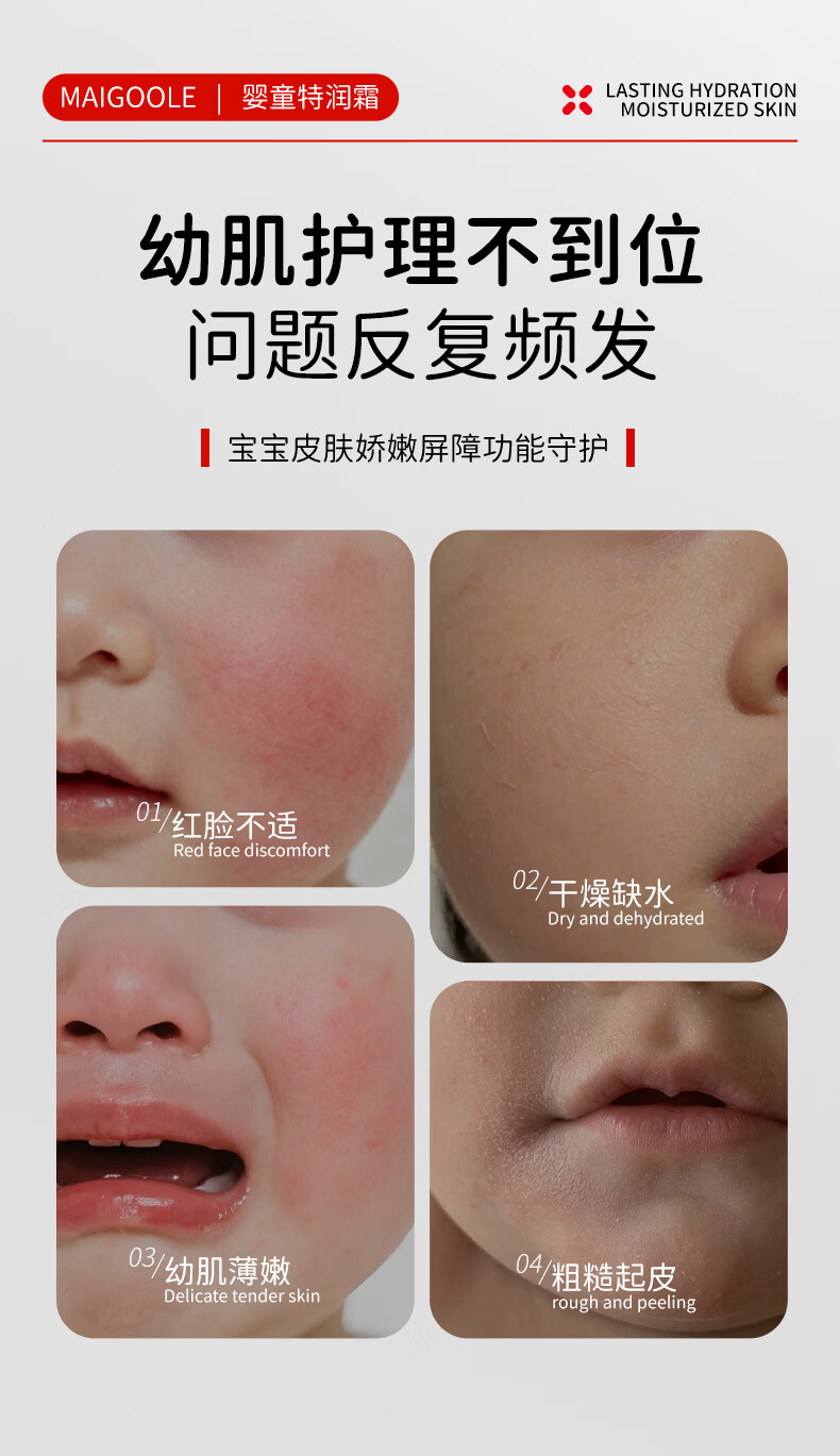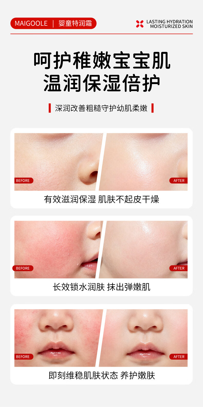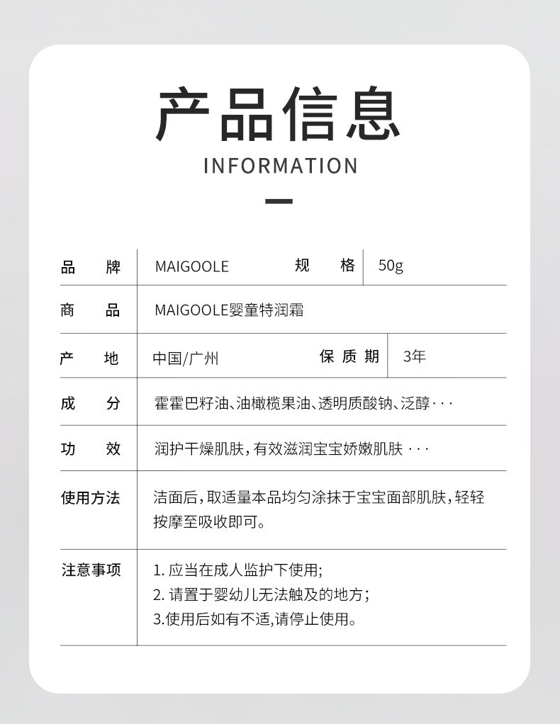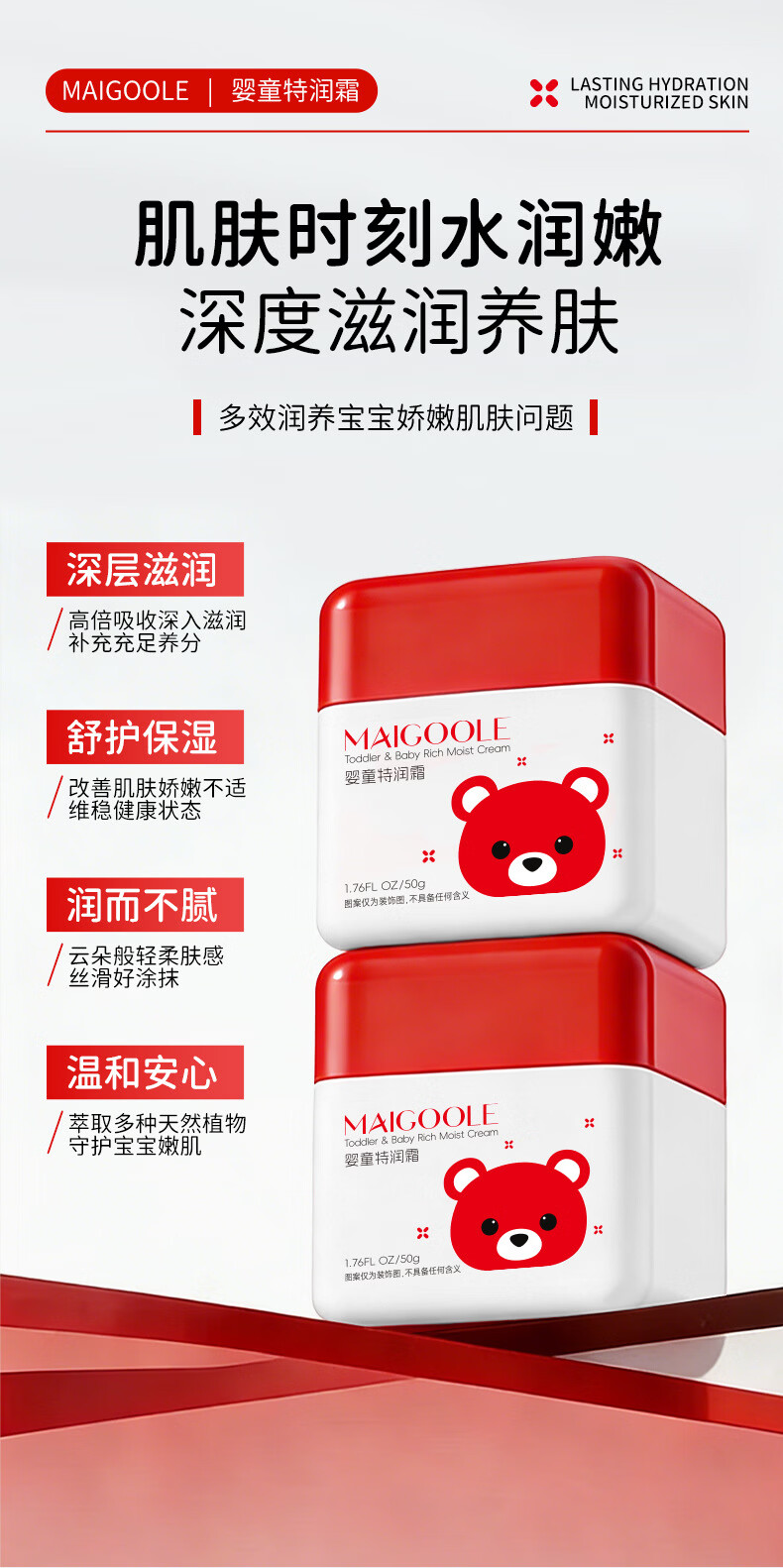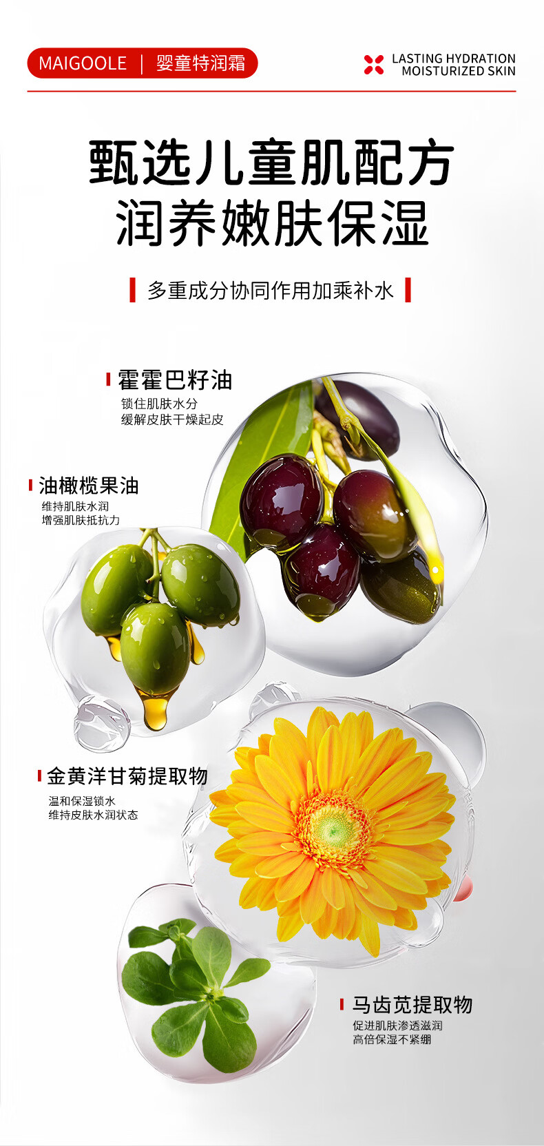 玫黛琳婴幼儿换季保湿补水特润面霜宝宝儿童滋润搽脸润肤乳 【四季囤货装 全家用】特润霜50g*3