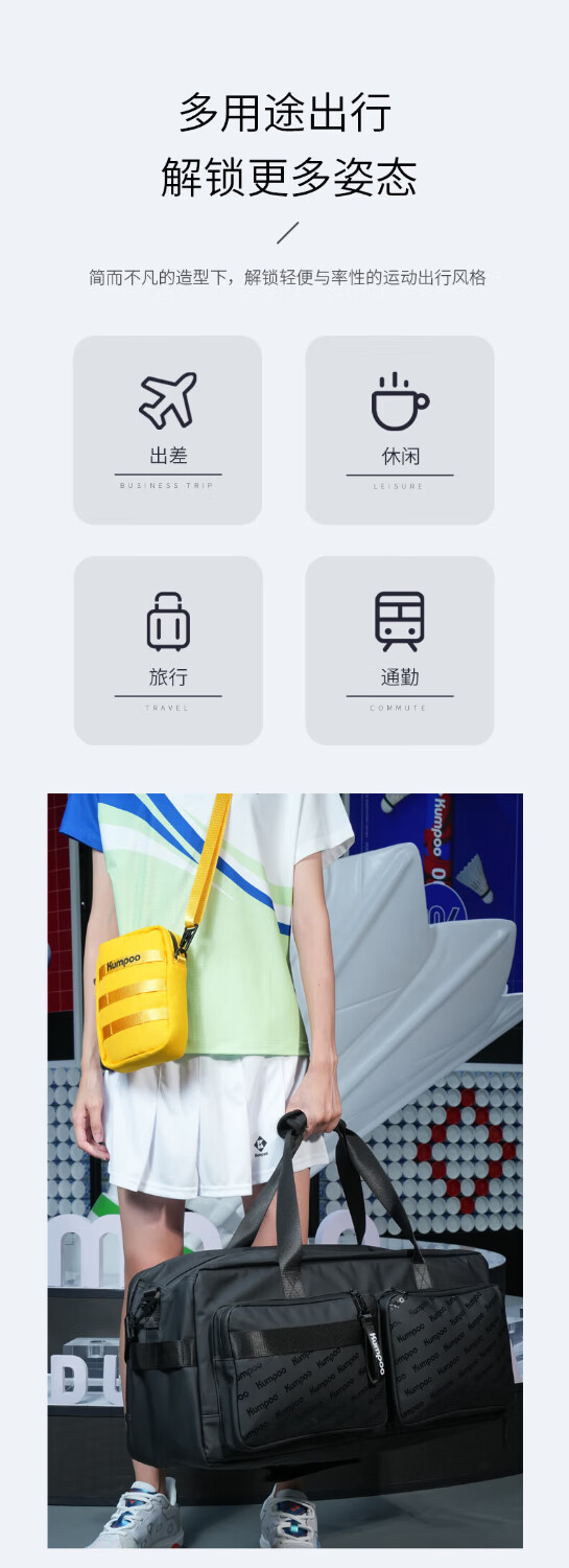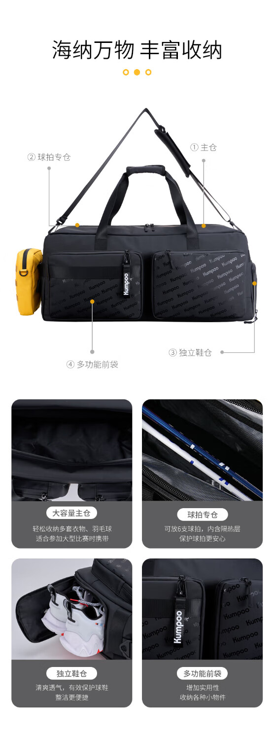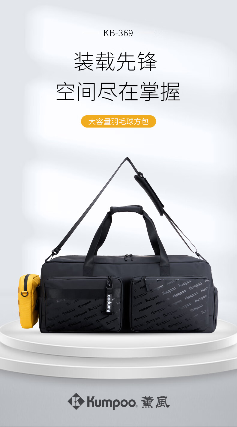 薰风(KUMPOO)王小羽同款专业羽毛球包熏风大容量收纳袋单肩挎包防水百搭运动包 KB-369 黑色