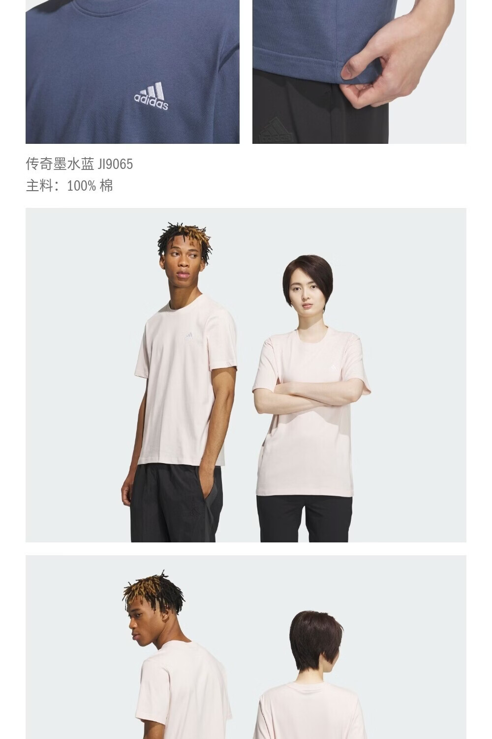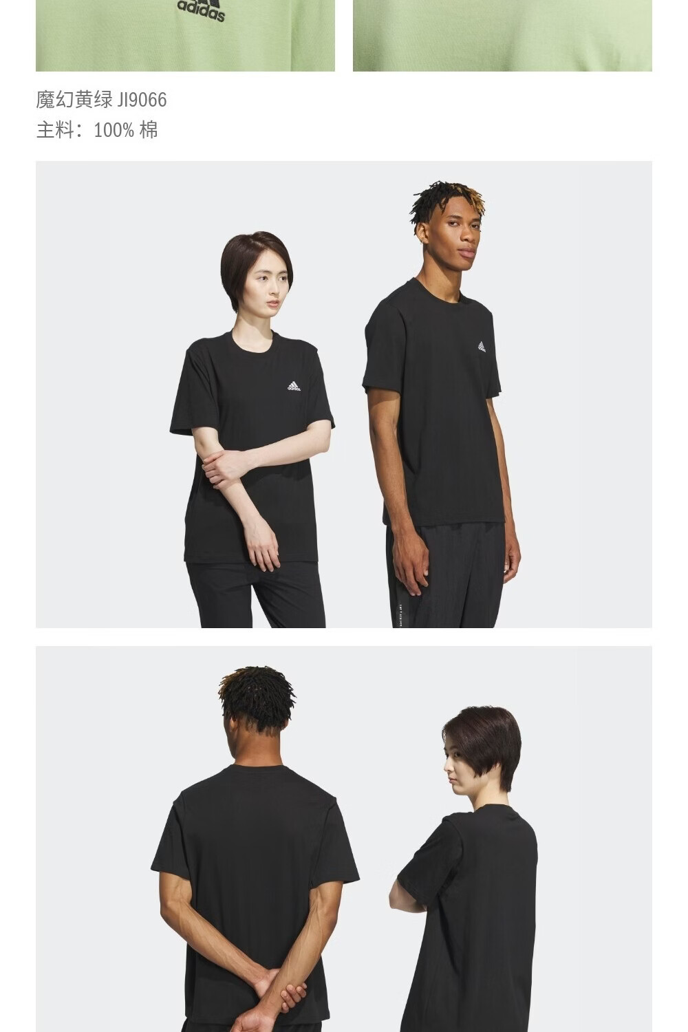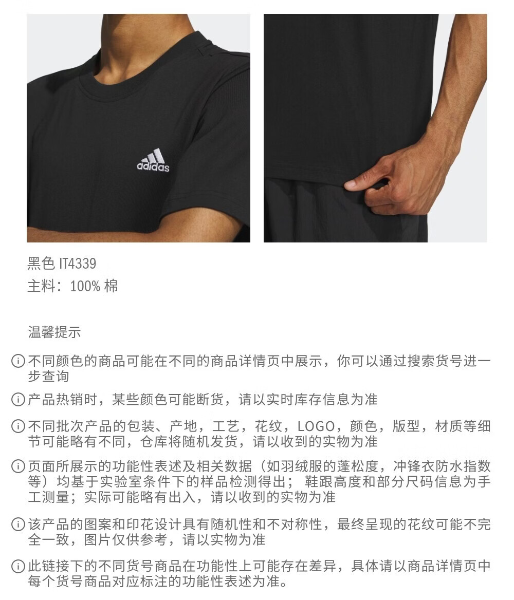 adidas情侣休闲纯棉上衣圆领短袖T恤男女夏季阿迪达斯官方轻运动 黑色 L