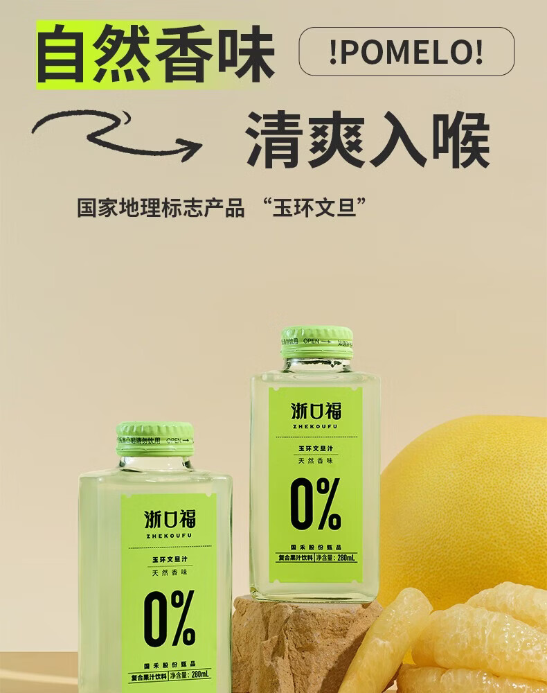 浙口福爆款特产文旦汁纯果汁原味便携自然香清爽营养原语田牧歌