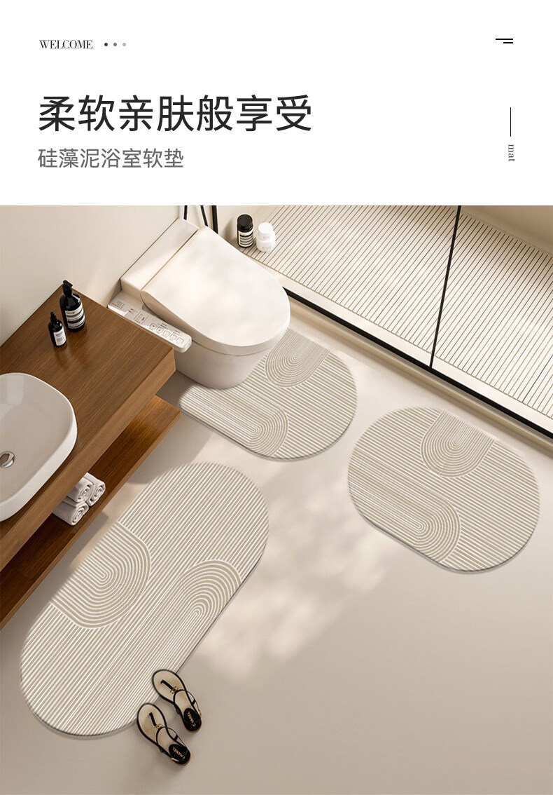 DONOYA 多罗亚硅藻泥卫生间地垫浴室门口吸水地垫2026新款浴室厕所防滑垫脚垫 毕加索线条【软硅藻泥】 30cm*50cm 椭圆