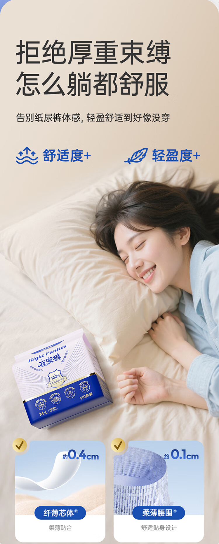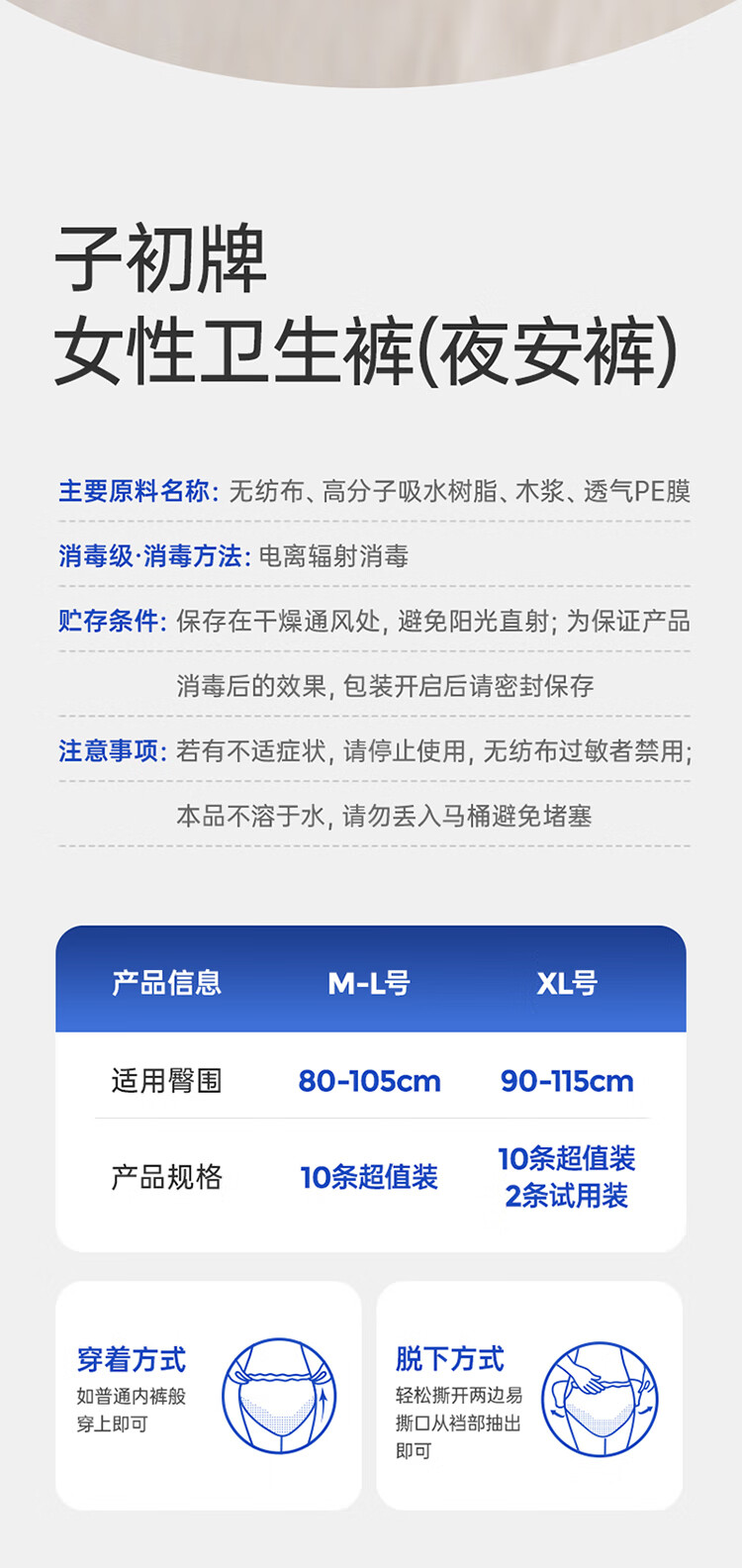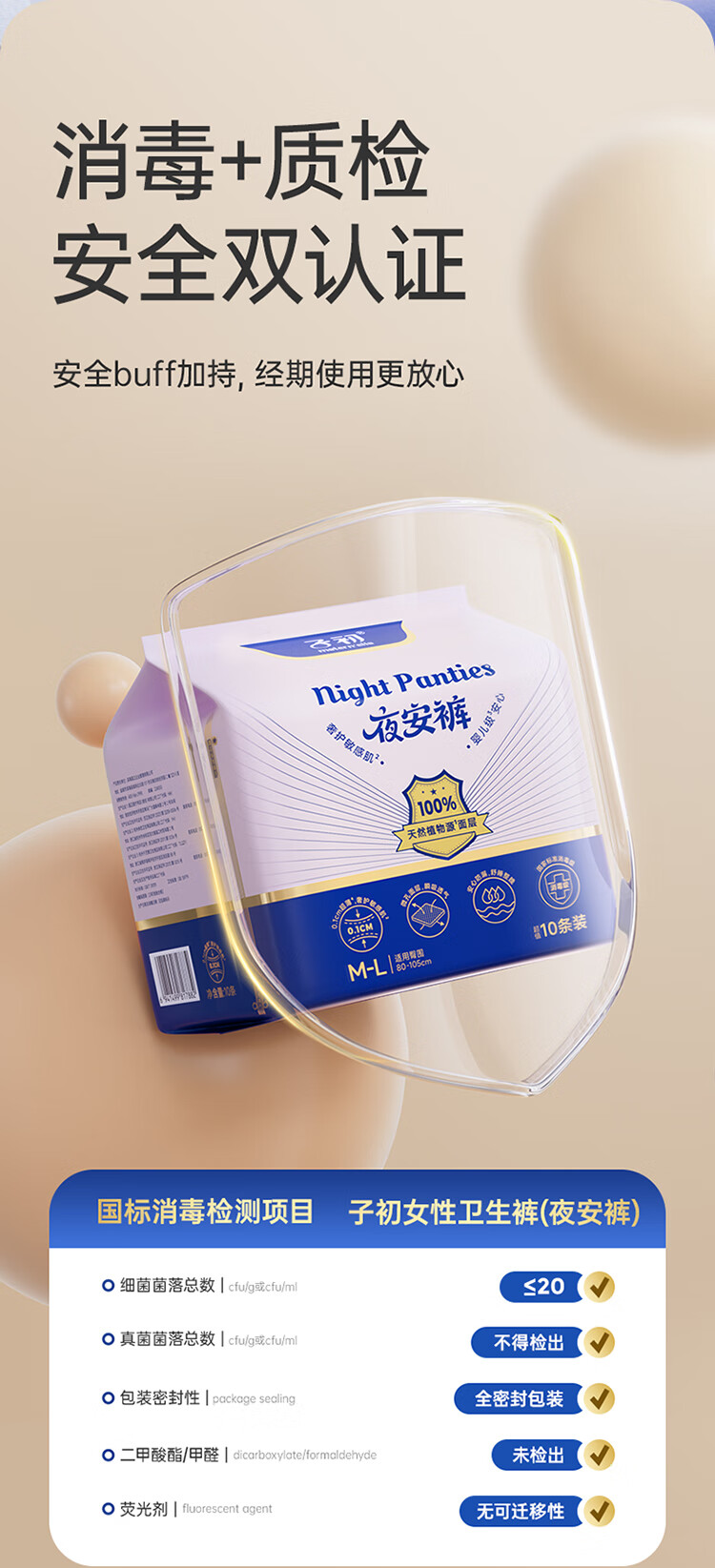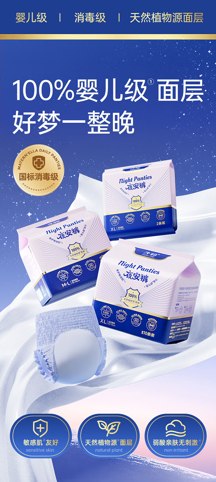 子初【国标消毒级】100%莱赛尔安睡裤大吸量抑菌 XL码2片