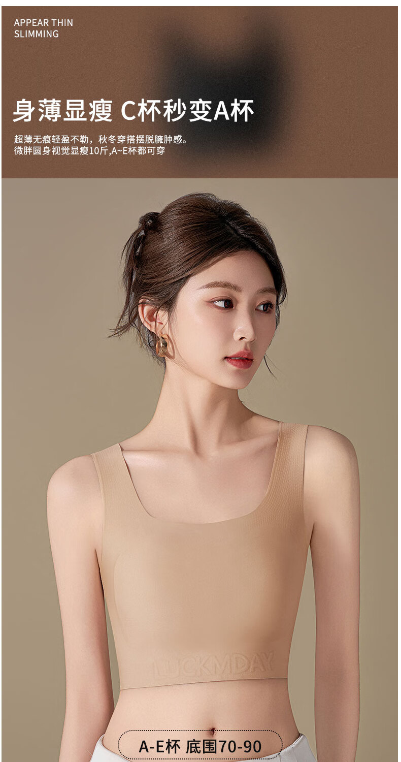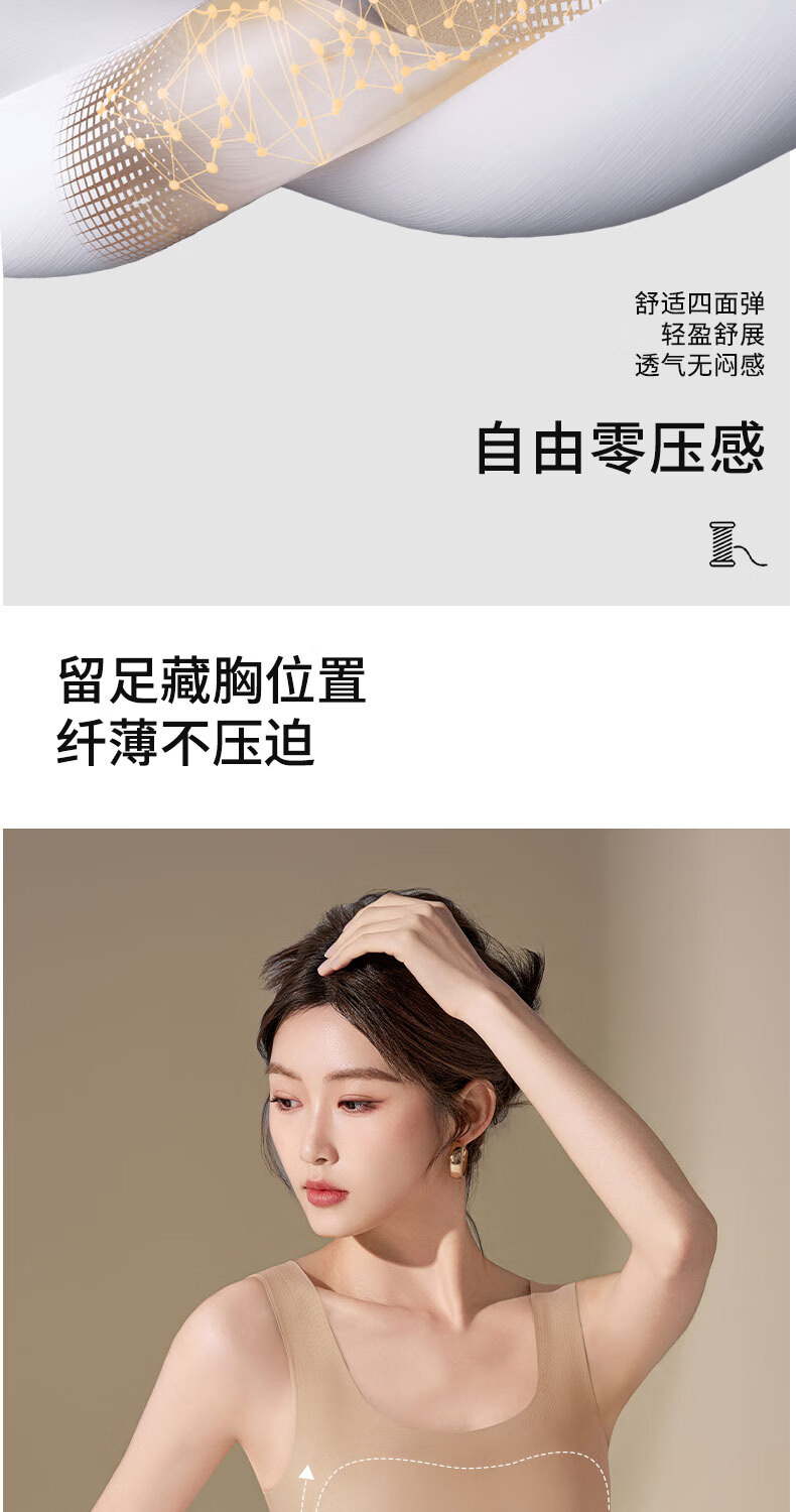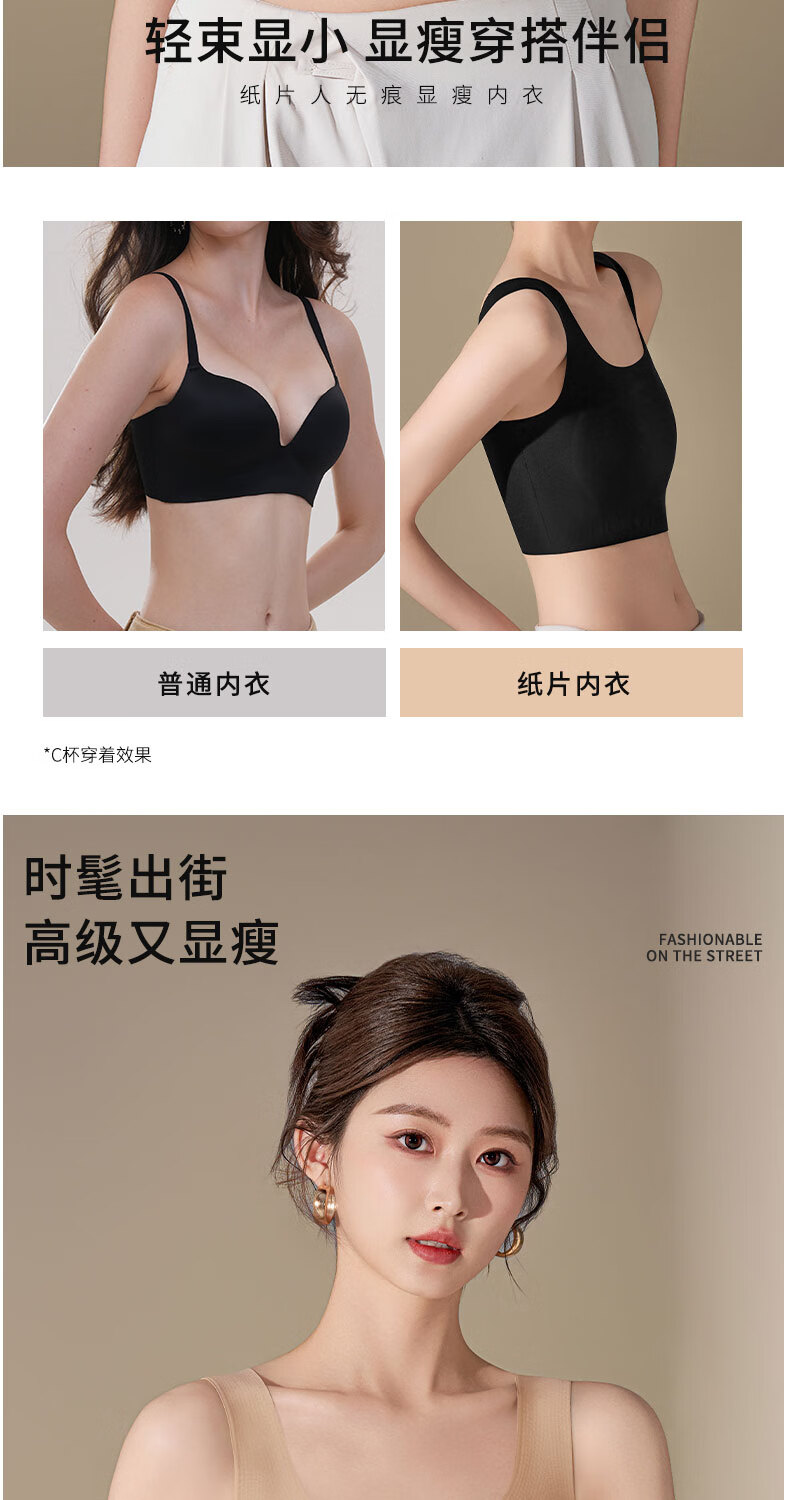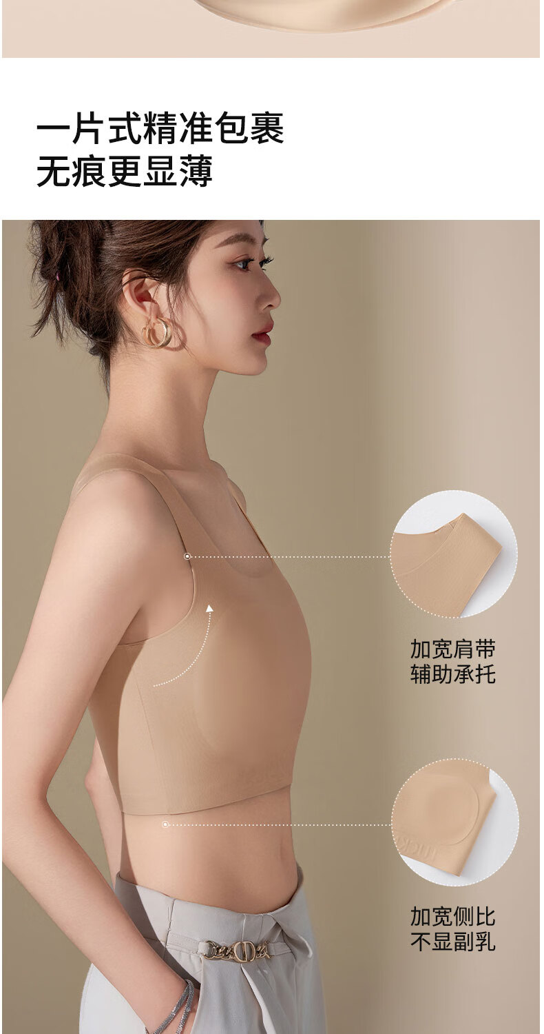 欧迪芬大胸显小纸片人文胸粉底液内衣束胸无痕隐形背心式胸罩美背防下垂