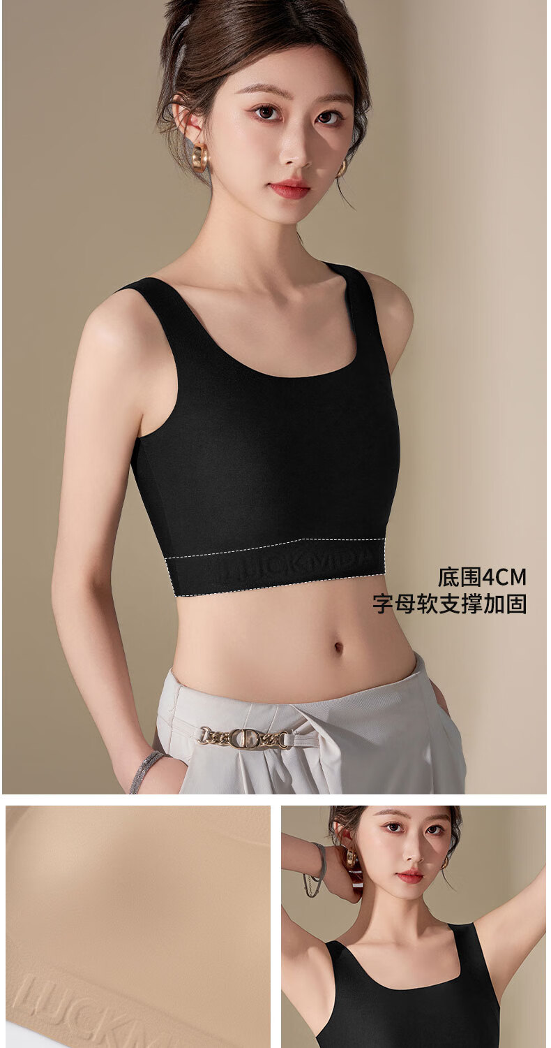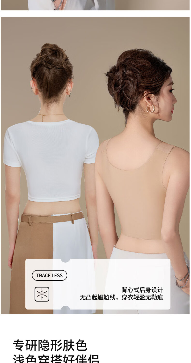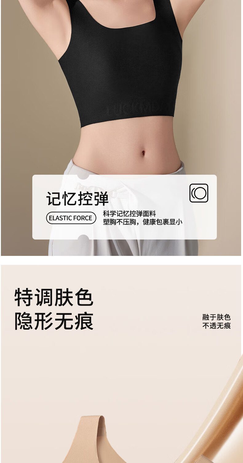 欧迪芬大胸显小纸片人文胸粉底液内衣束胸无痕隐形背心式胸罩美背防下垂