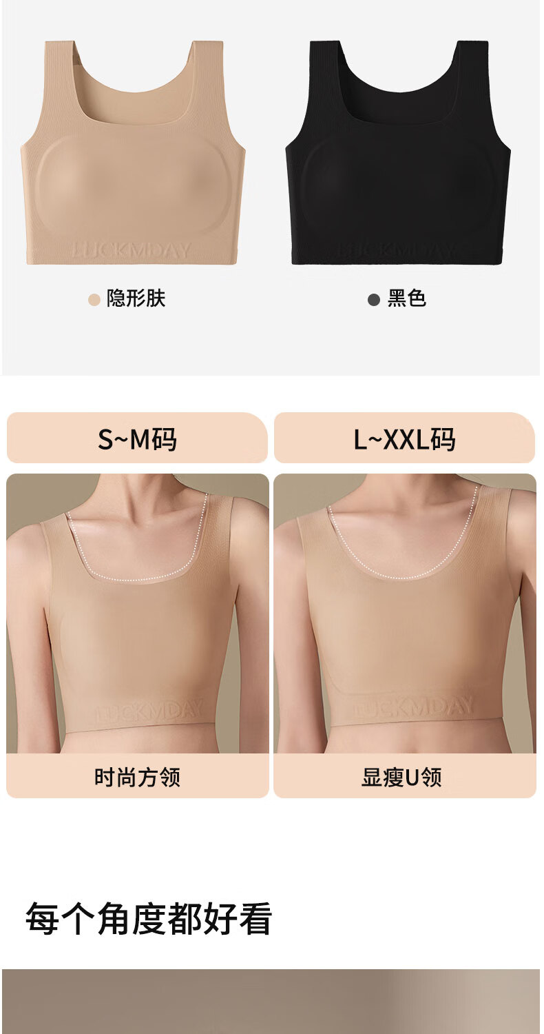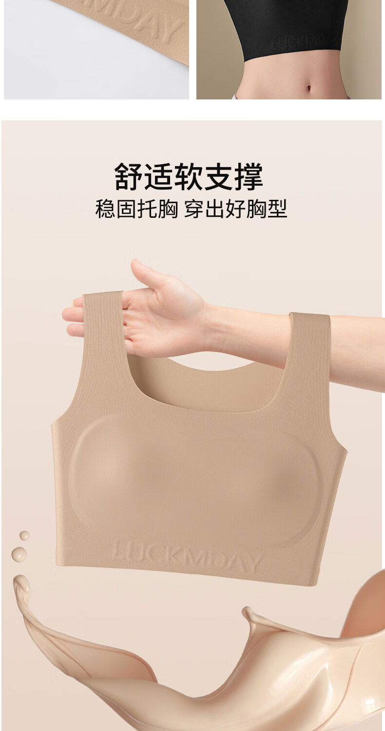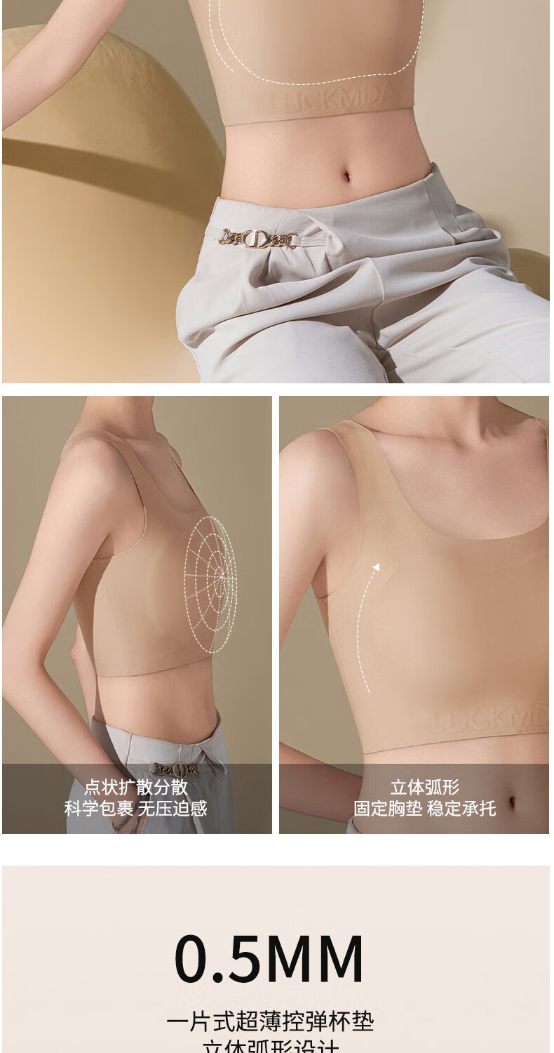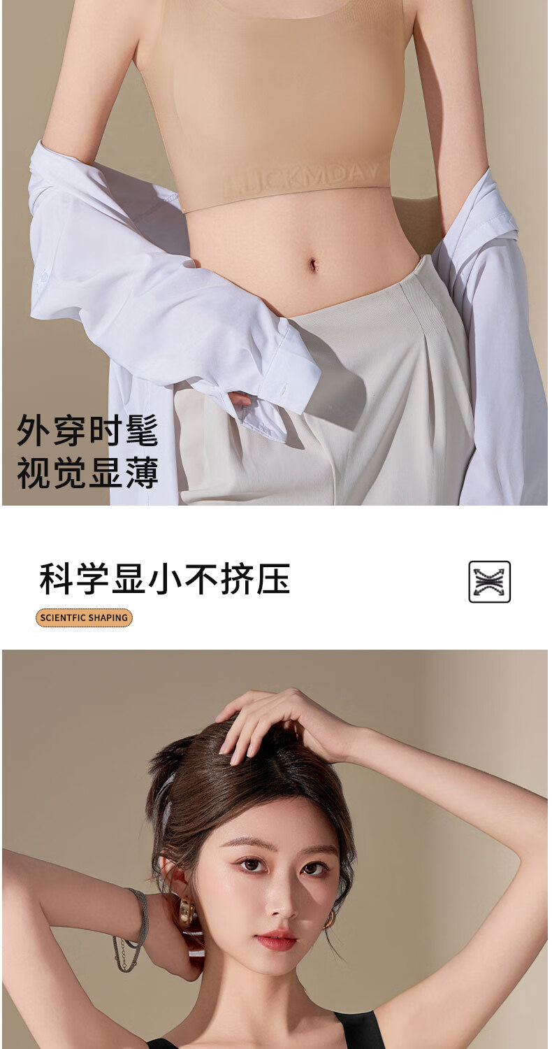 欧迪芬大胸显小纸片人文胸粉底液内衣束胸无痕隐形背心式胸罩美背防下垂