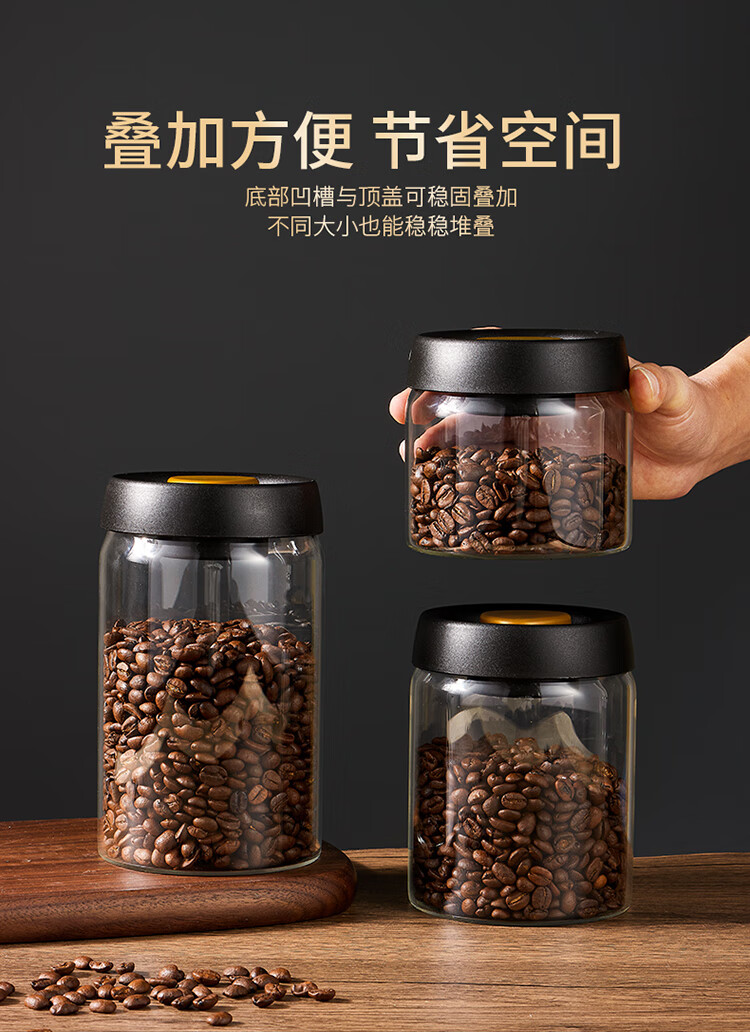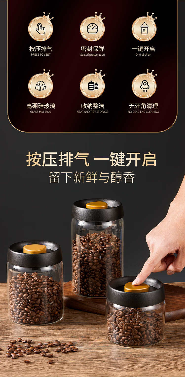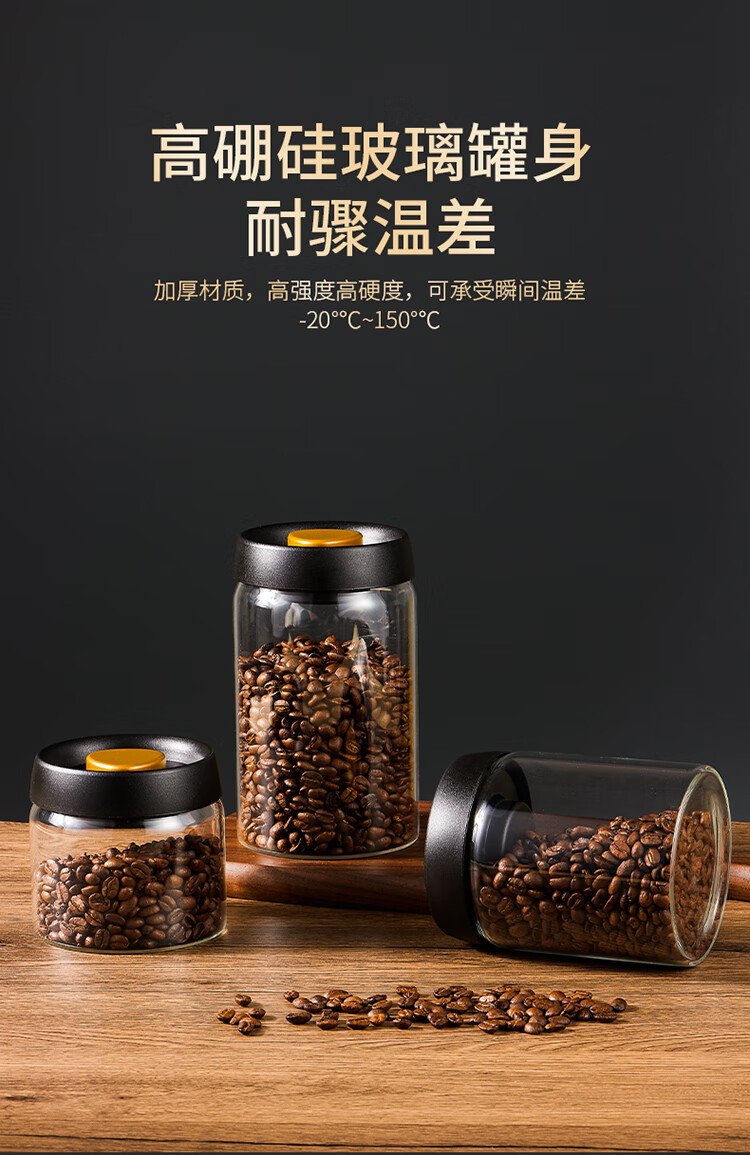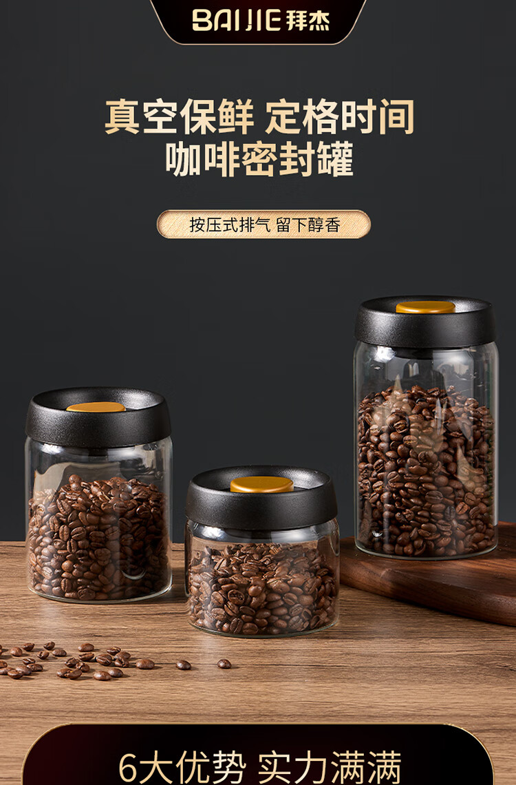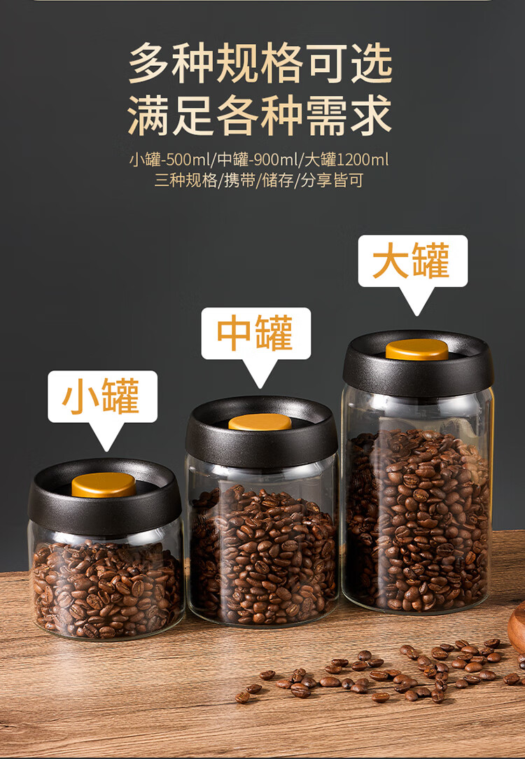 拜杰咖啡豆保存罐真空密封罐高硼硅玻璃坚果茶叶收纳储物罐900ML