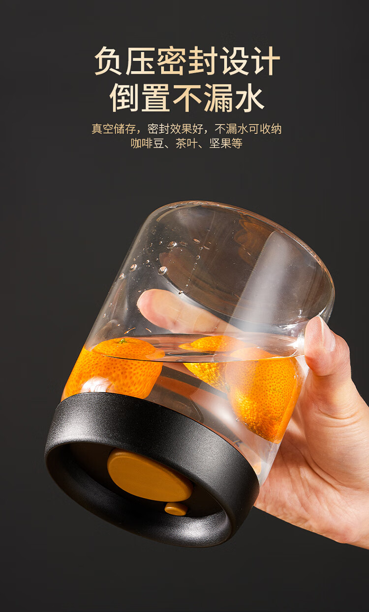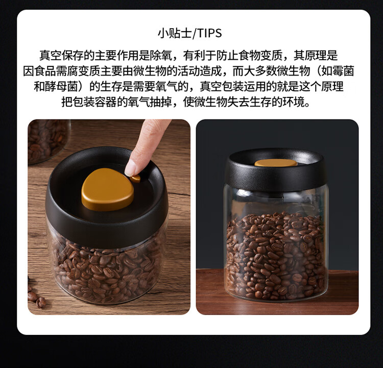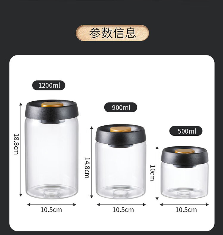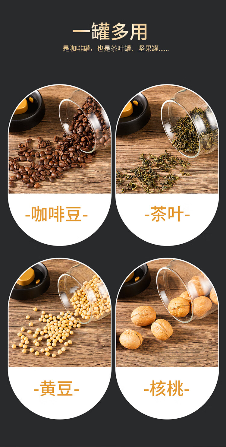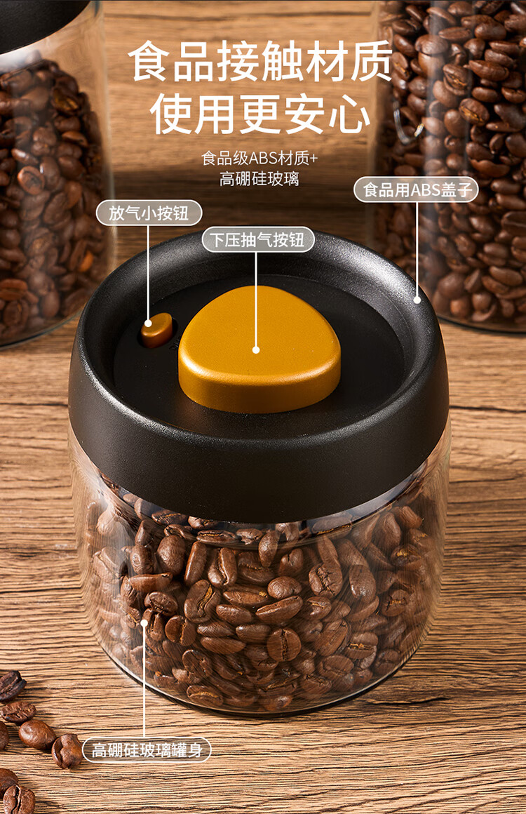 拜杰咖啡豆保存罐真空密封罐高硼硅玻璃坚果茶叶收纳储物罐900ML