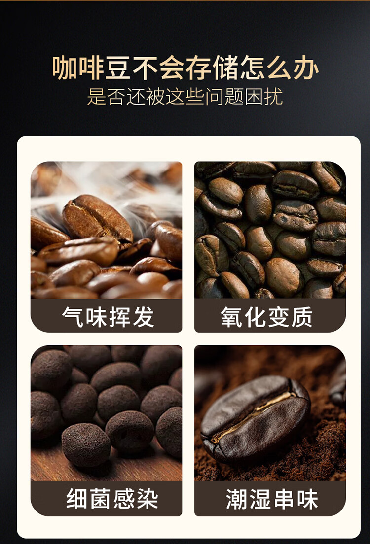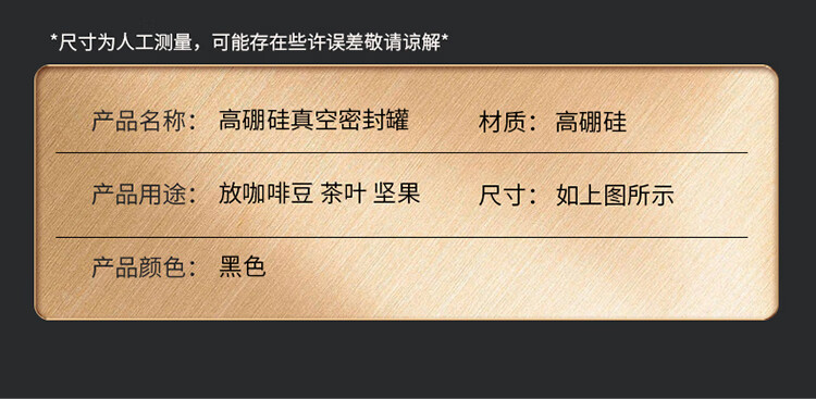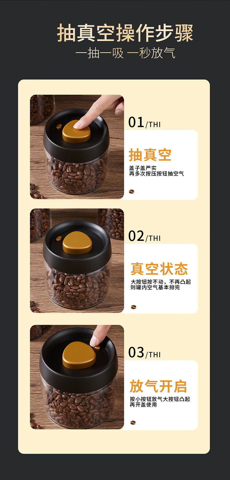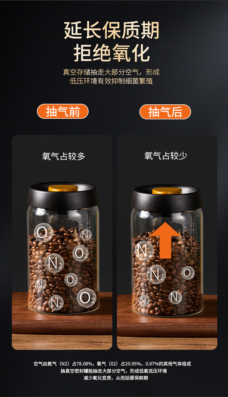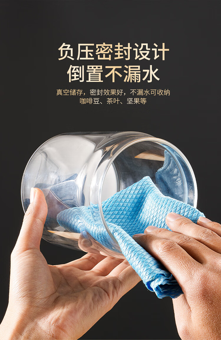 拜杰咖啡豆保存罐真空密封罐高硼硅玻璃坚果茶叶收纳储物罐900ML