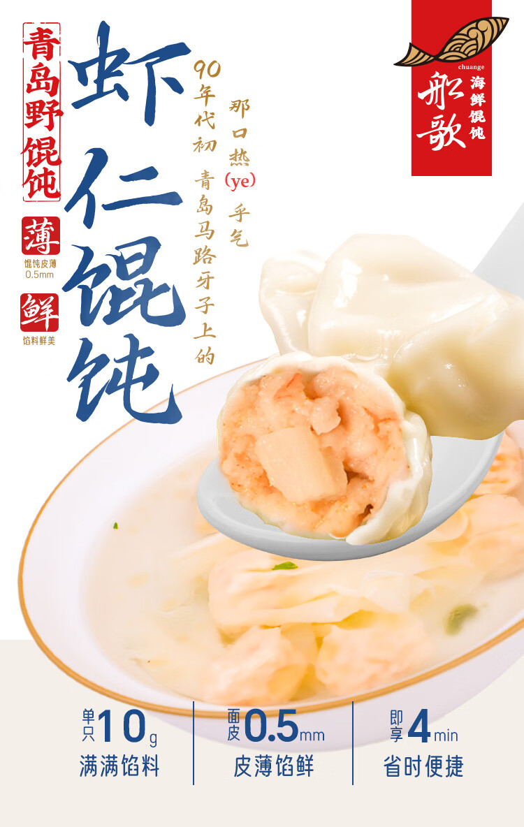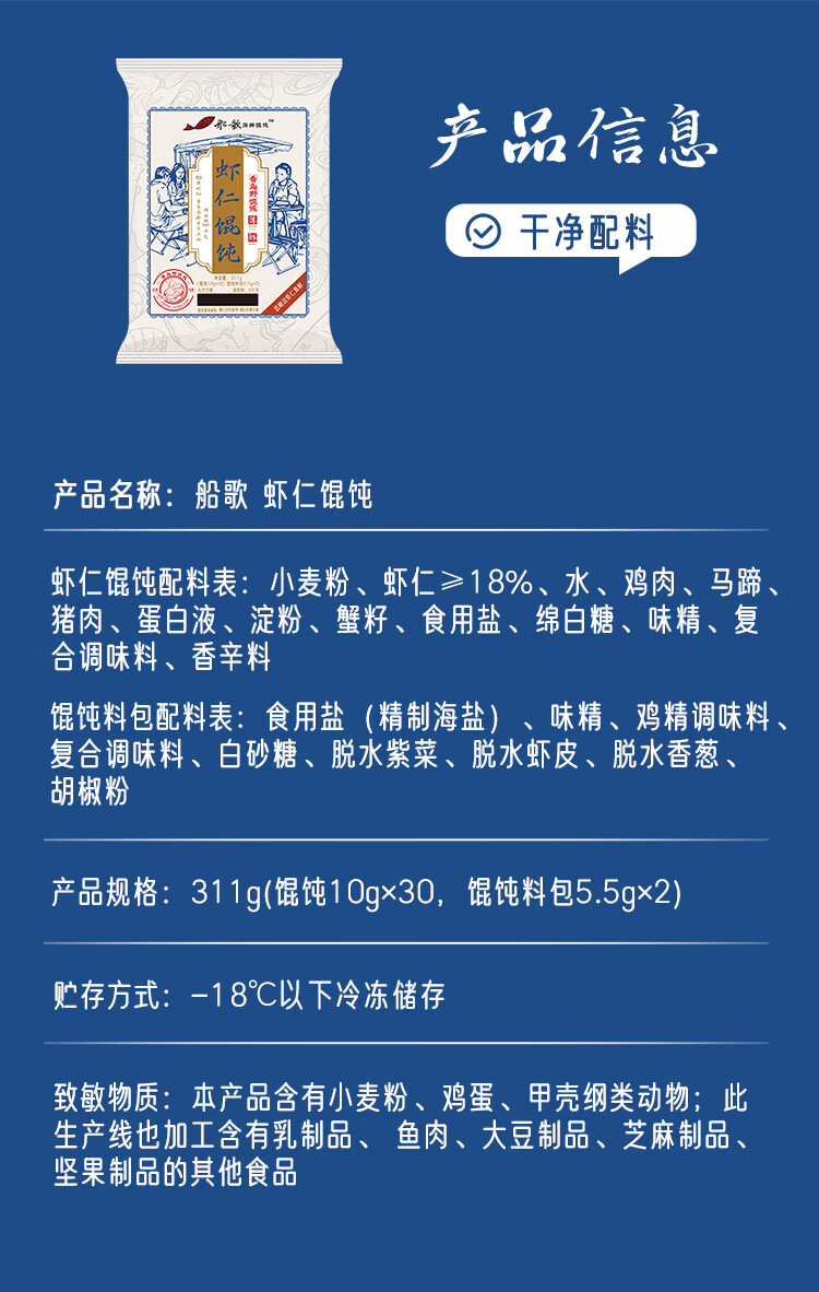 船歌鱼水饺鲜虾蟹籽云吞野馄饨311g30只早餐抄手紫菜速食面点生鲜速冻饺子