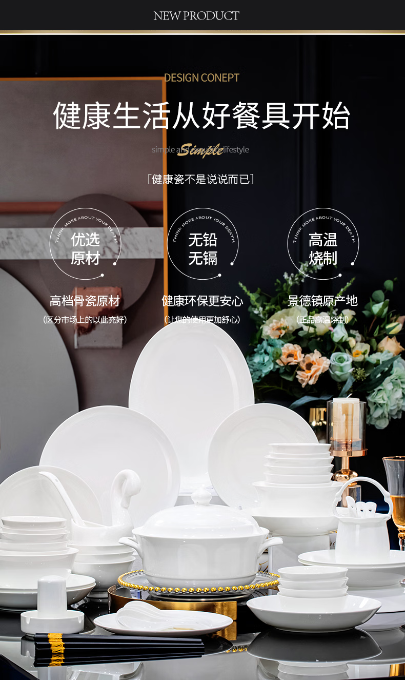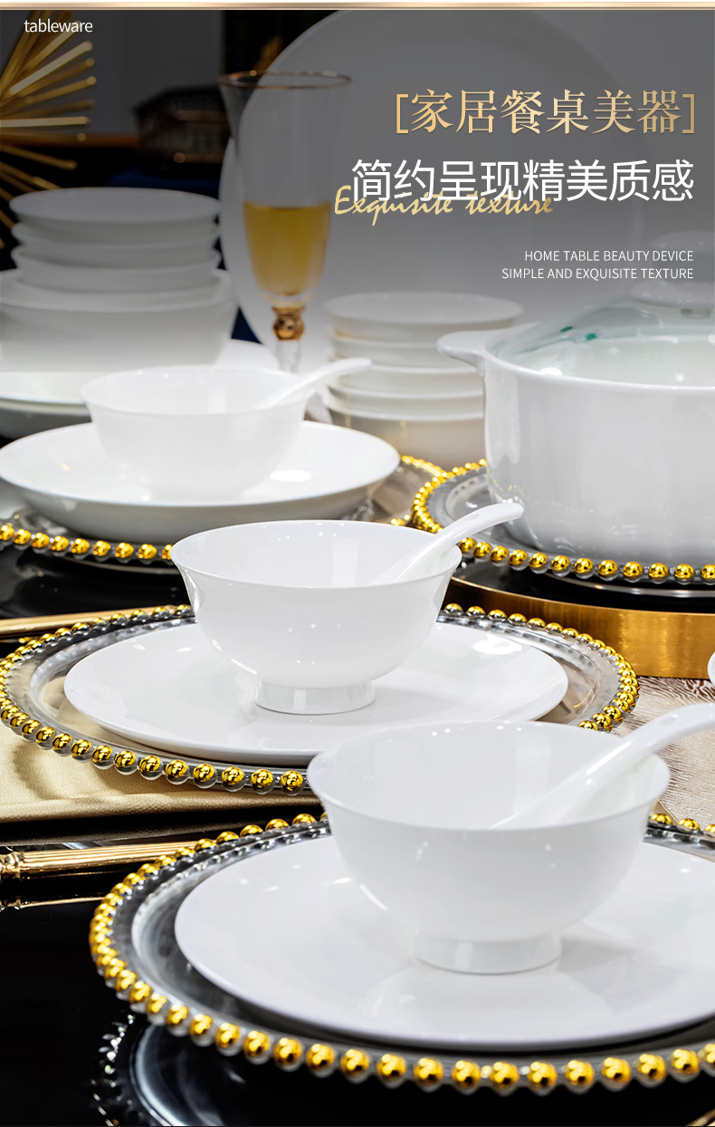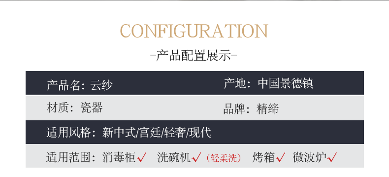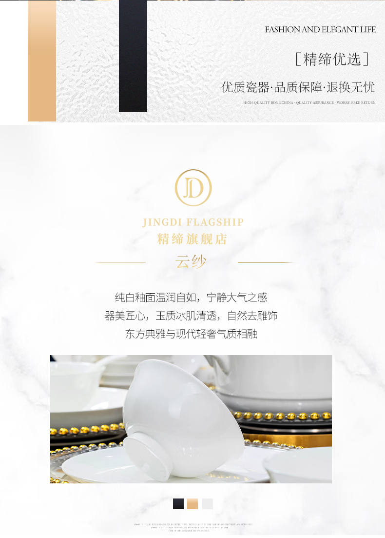 精缔陶瓷JINGDI纯白釉下彩2026碗碟套装家用景德镇陶瓷骨瓷餐具套装碗盘筷乔迁 【80%用户购买】云纱六人40件配大汤碗