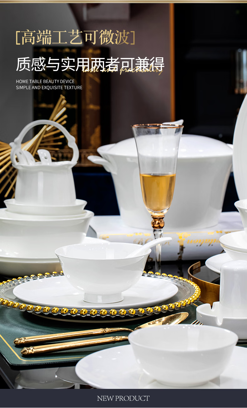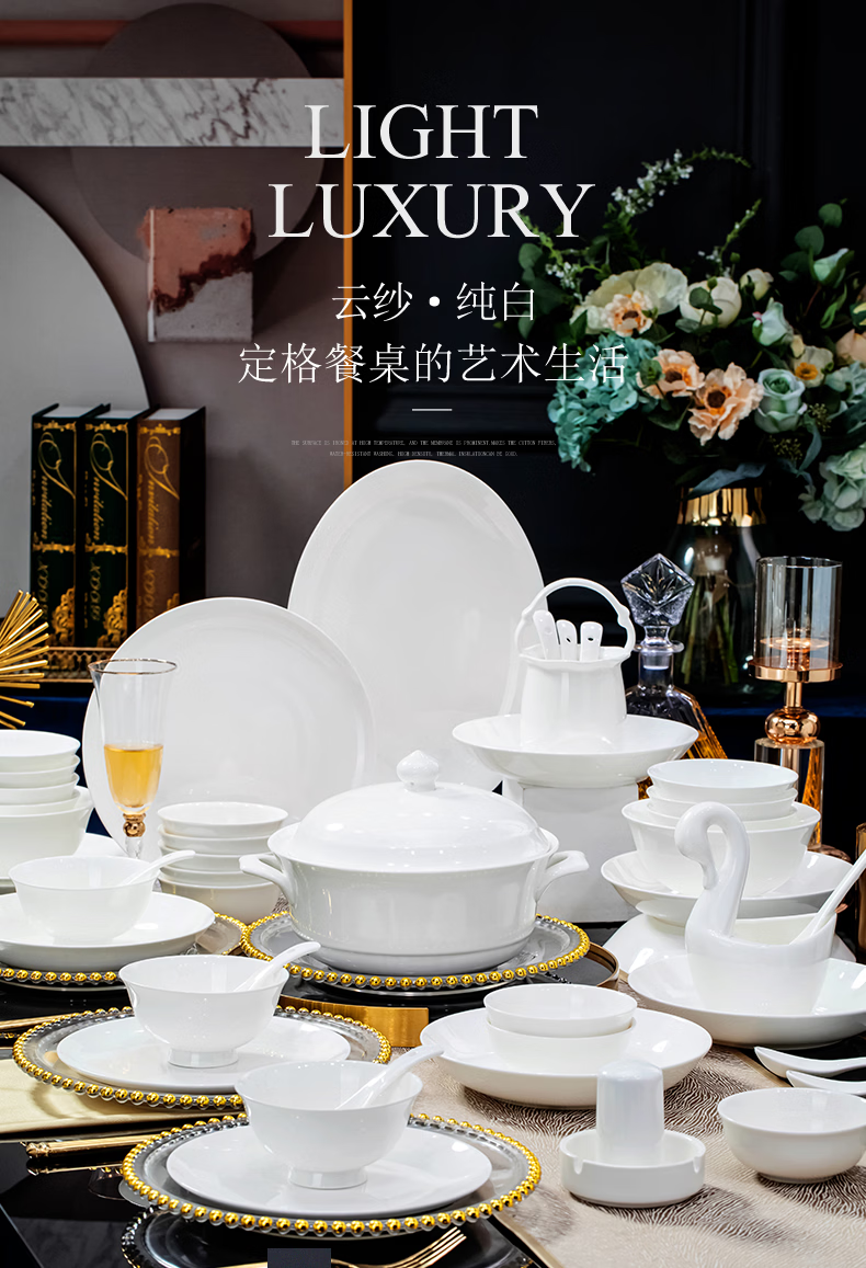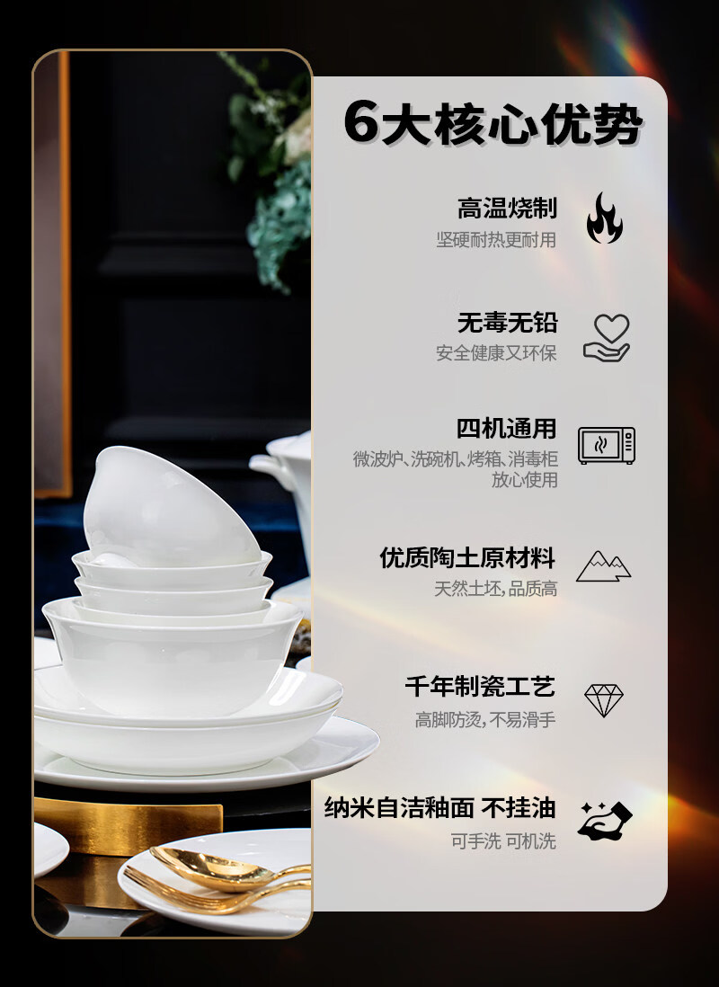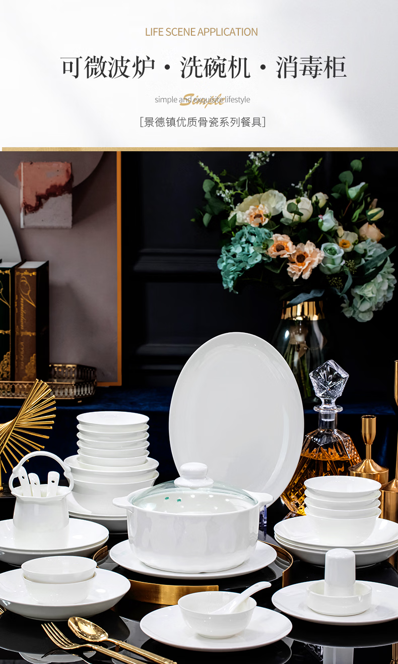 精缔陶瓷JINGDI2026新款碗碟套装家用景德镇高颜值碗盘轻奢骨瓷餐具套装陶瓷乔迁 月落星河62件豪华实用配富贵煲(可微波炉洗碗机)
