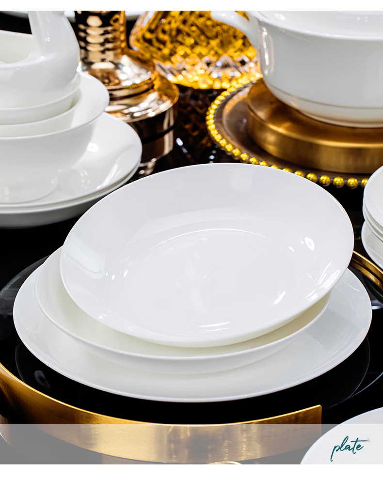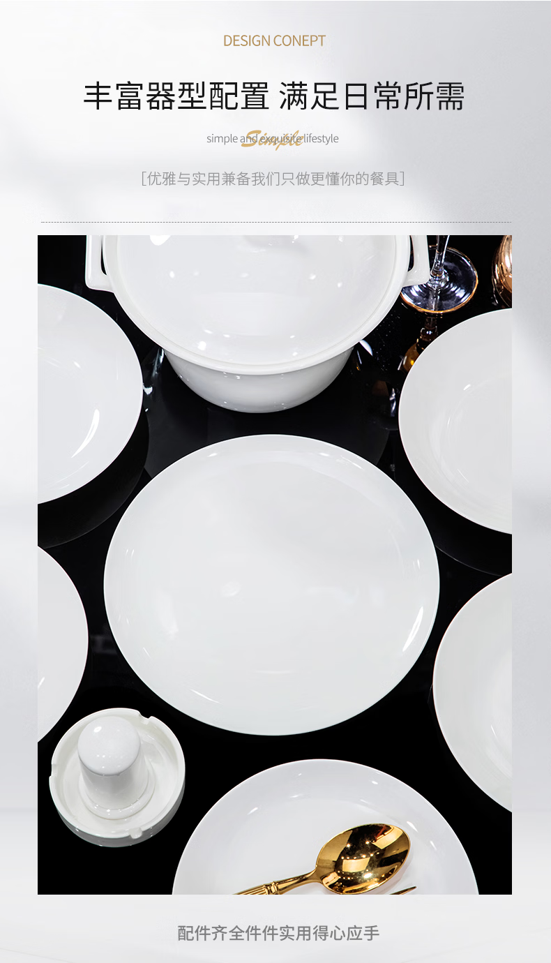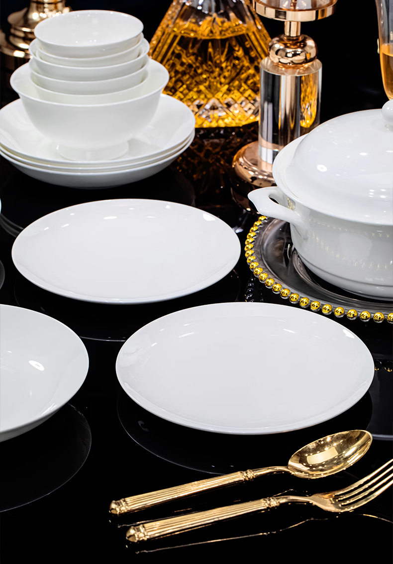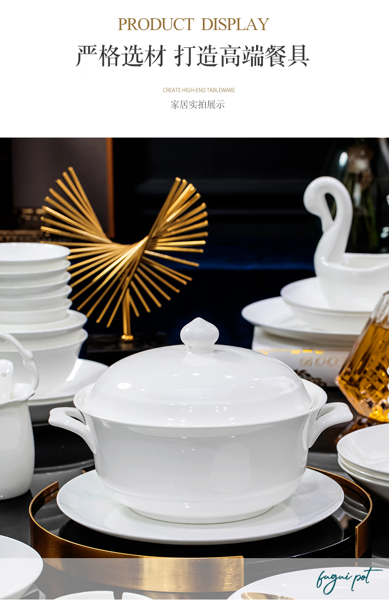 精缔陶瓷JINGDI2026新款碗碟套装家用景德镇高颜值碗盘轻奢骨瓷餐具套装陶瓷乔迁 月落星河62件豪华实用配富贵煲(可微波炉洗碗机)
