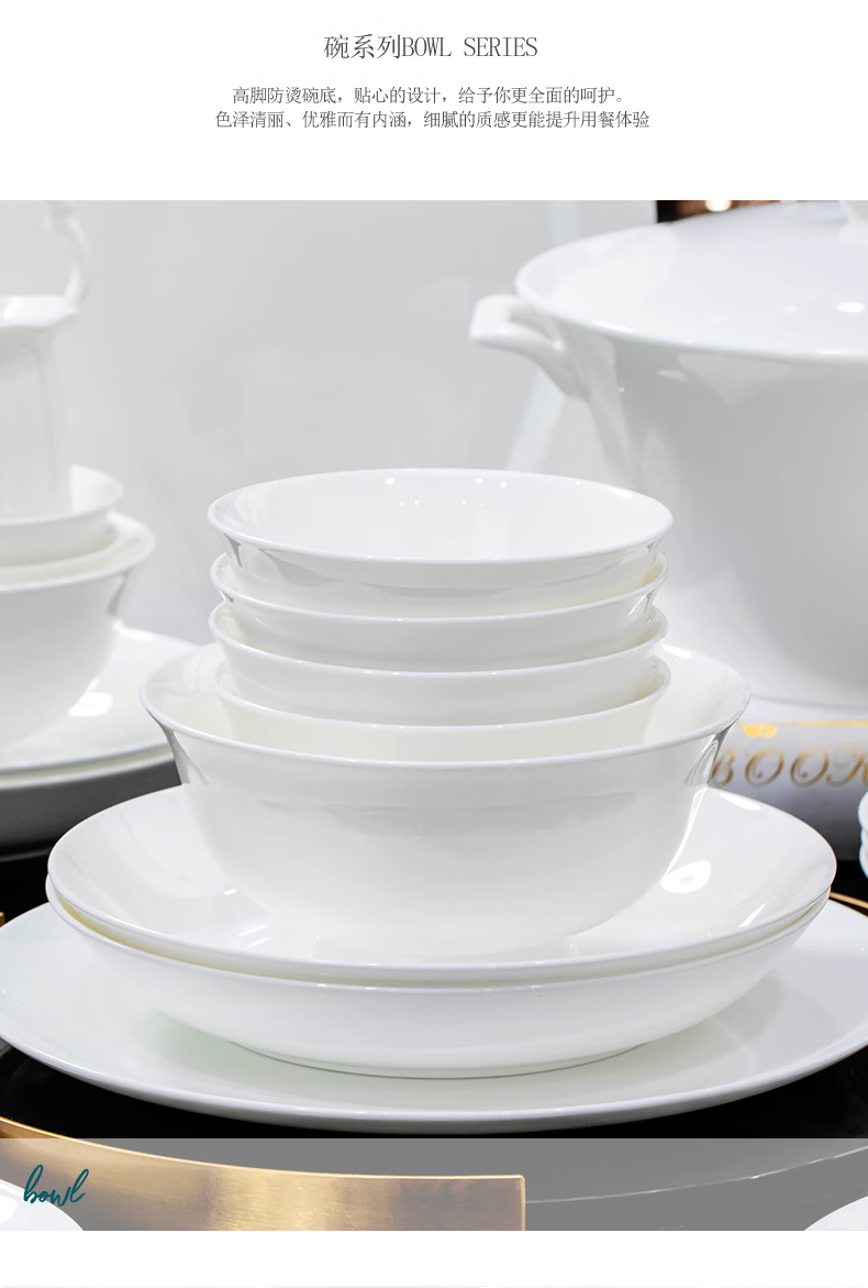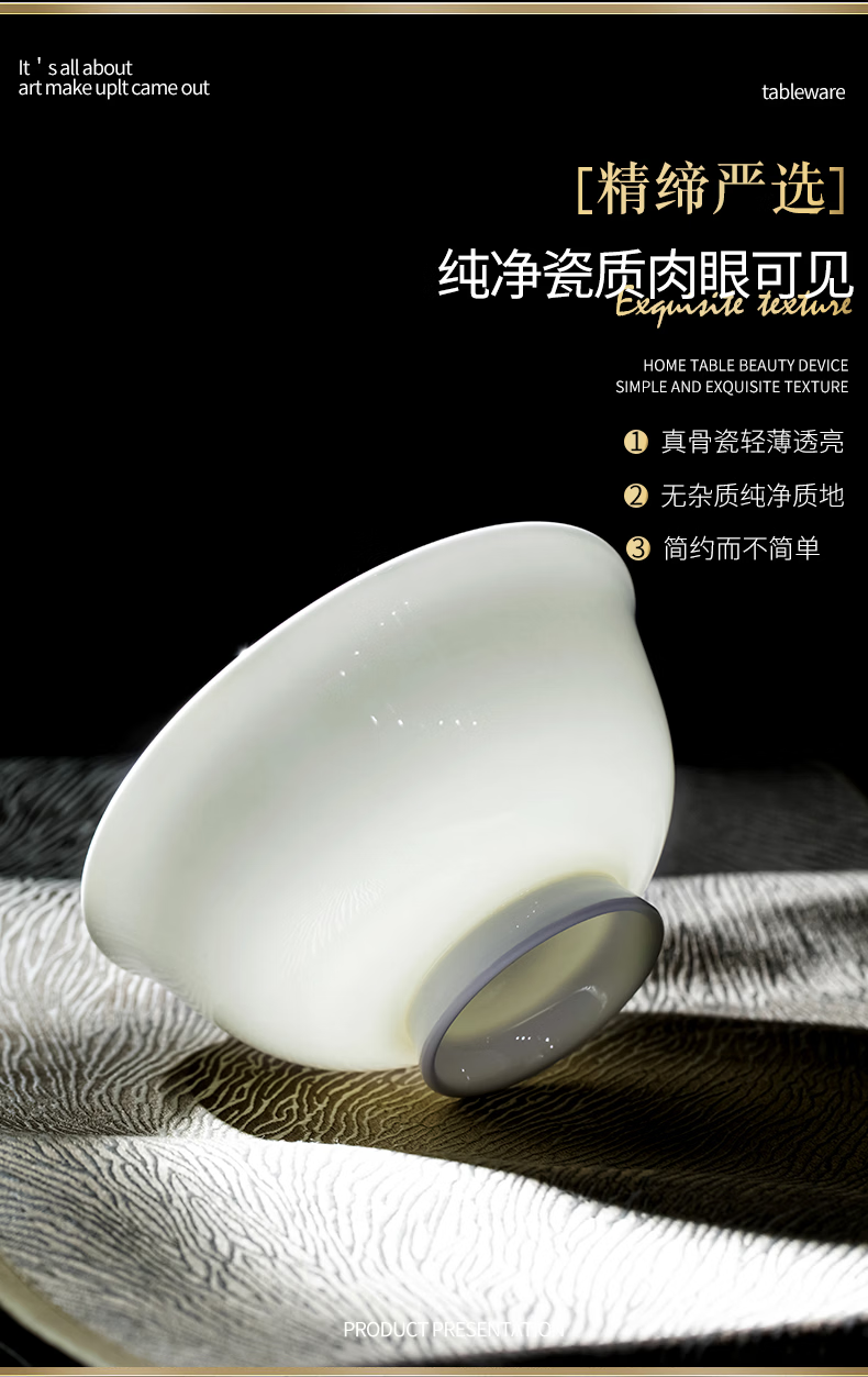 精缔陶瓷JINGDI碗碟套装家用2026高颜值景德镇中式陶瓷碗盘餐具碗具乔迁新居餐具 4.75英寸高脚饭碗