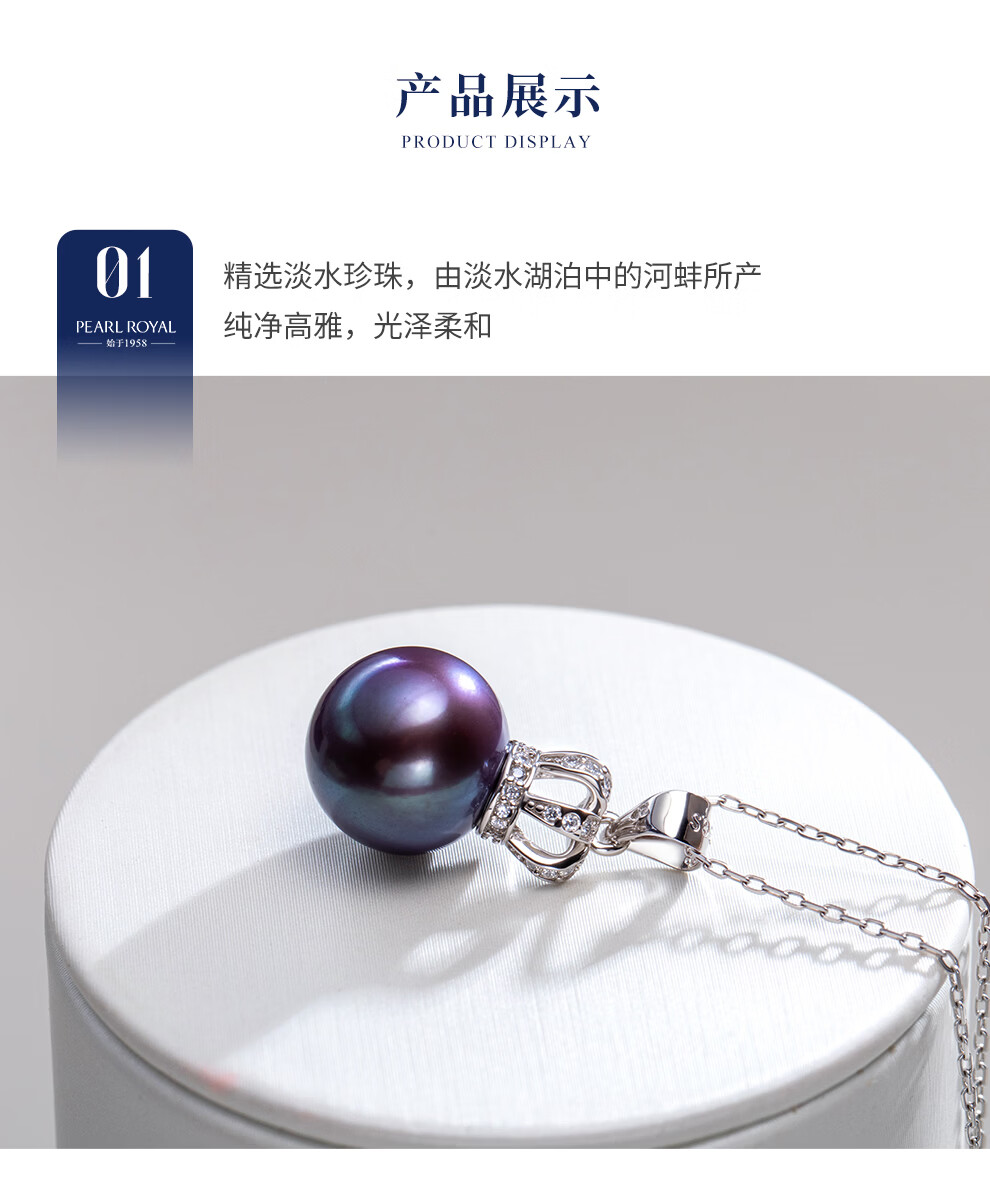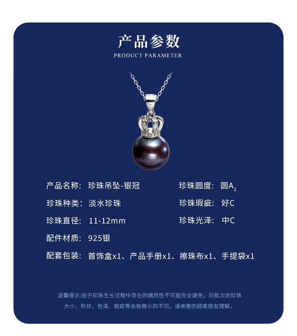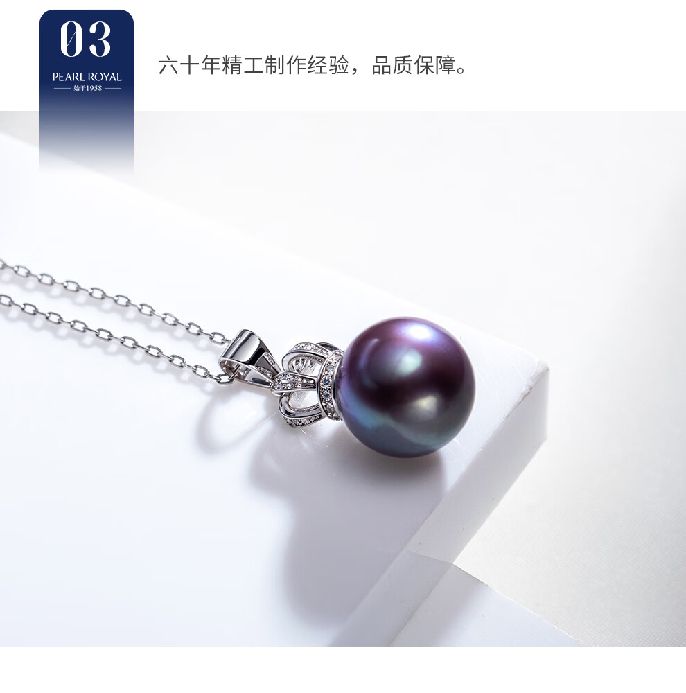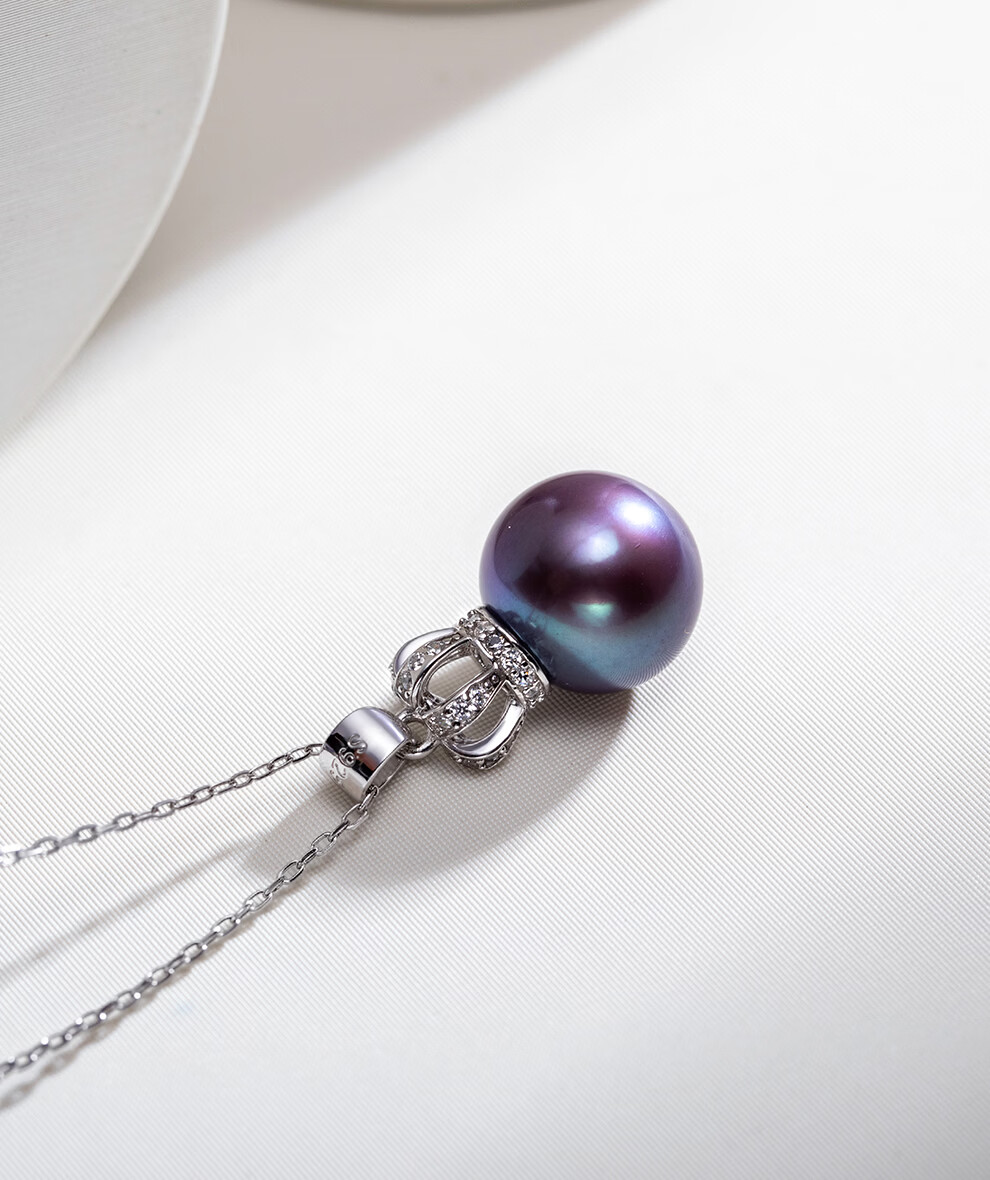 南珠宫银冠爱迪生925银淡水珍珠吊坠神秘典雅高级感生日礼物送老婆 11.0-12.0mm 为爱加冕