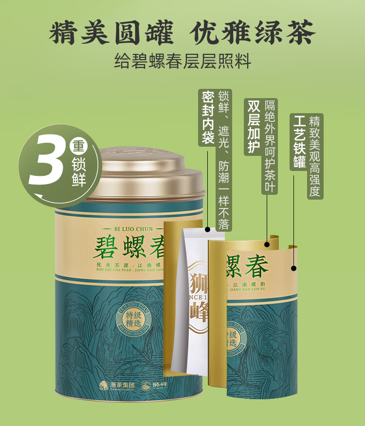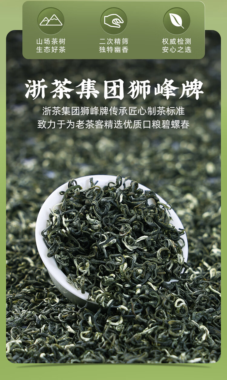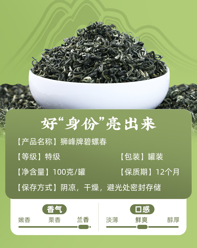 狮峰牌2025新茶明前特级精选碧螺春高山绿茶叶春茶自己喝送礼 100g小罐装