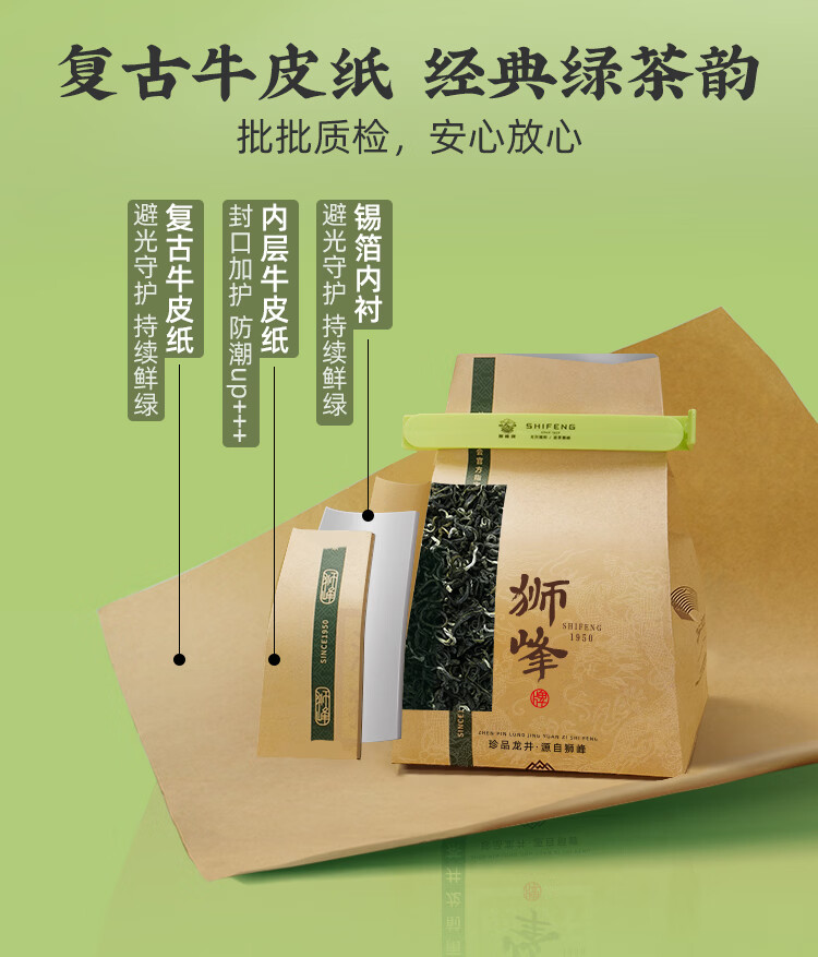 狮峰2025雨前三级龙井茶叶250g+50g组合装绿茶春茶自己喝口粮茶