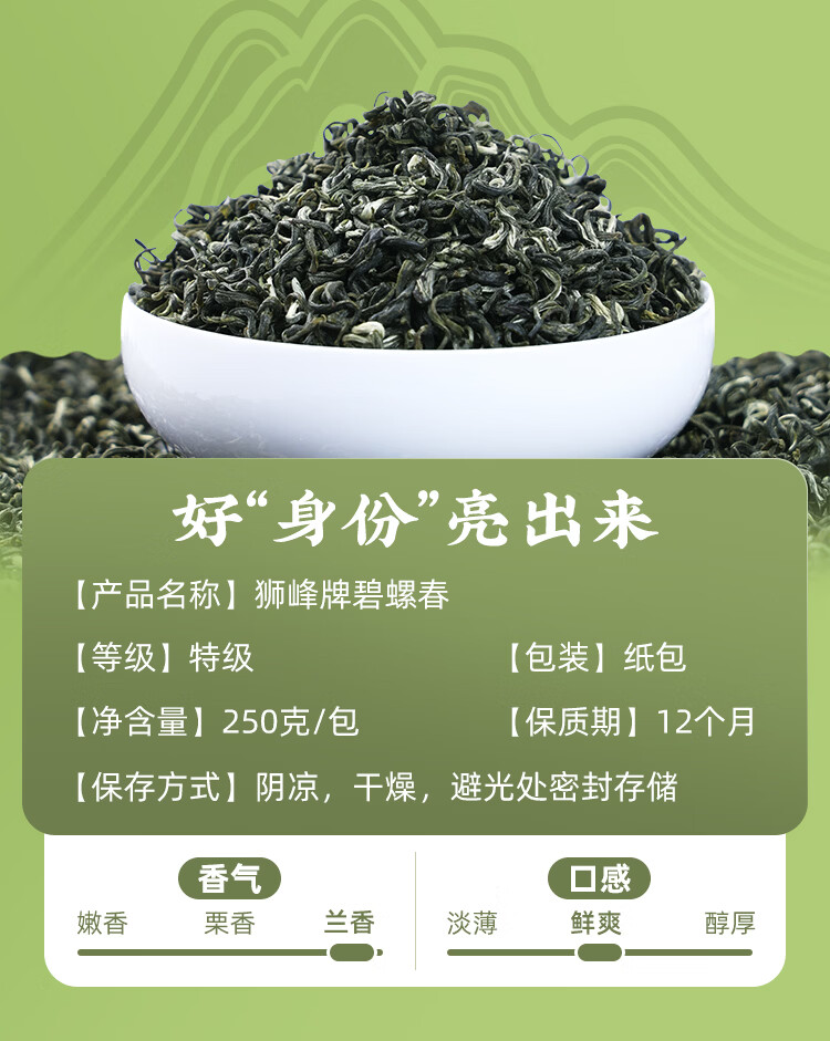 狮峰牌2025特级碧螺春绿茶茶叶浓香型250g+100g组合装自己喝