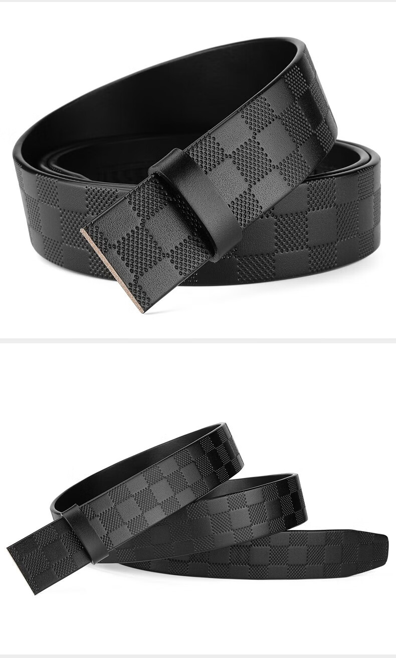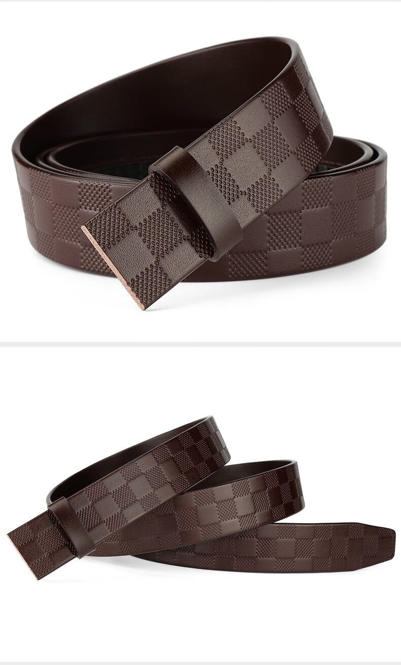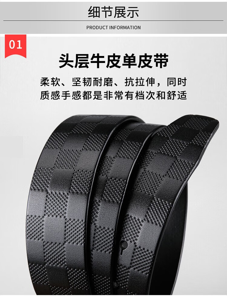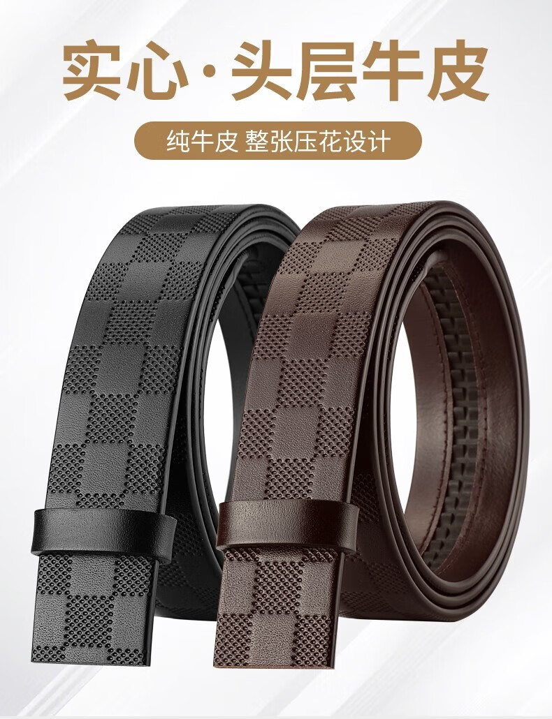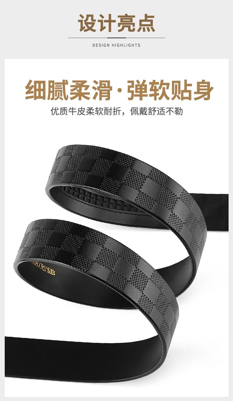 皮带男款2025年最新款真皮不带头无头男士自动扣2025新款真牛皮裤 双G纹黑色头层纯牛皮单独带条 120cm