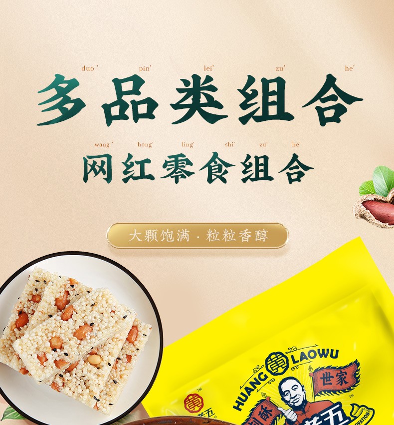 黄老五花生酥零食大礼包孕妇儿童休闲零食四川特产中式糕点小吃送女友 644g组合