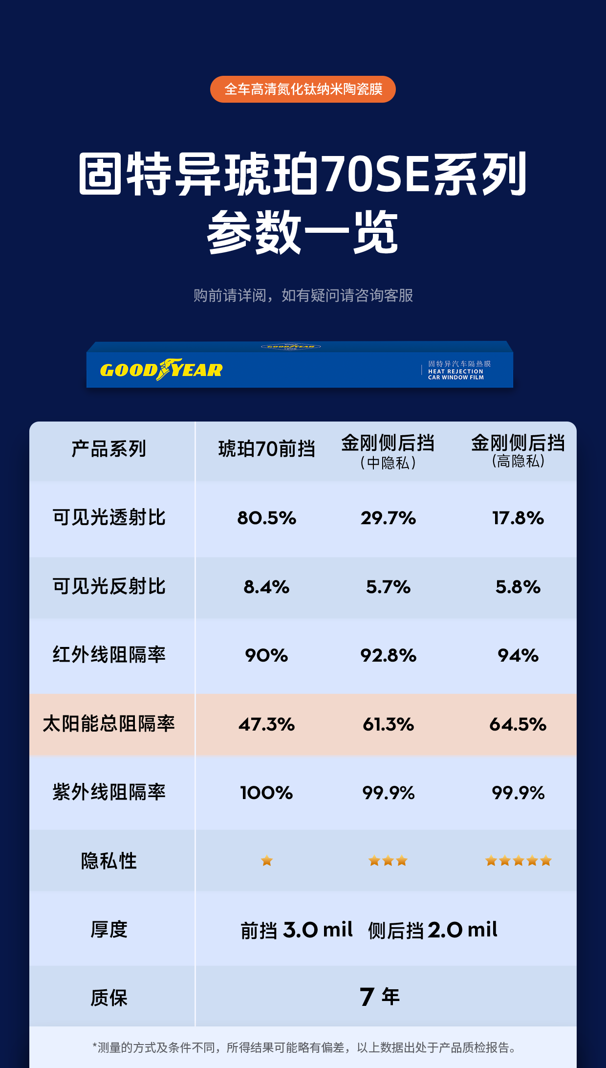 固特异(Goodyear)汽车贴膜 琥珀70SE系列汽车玻璃膜汽车膜全车膜防晒隔热车窗膜膜隐私膜
