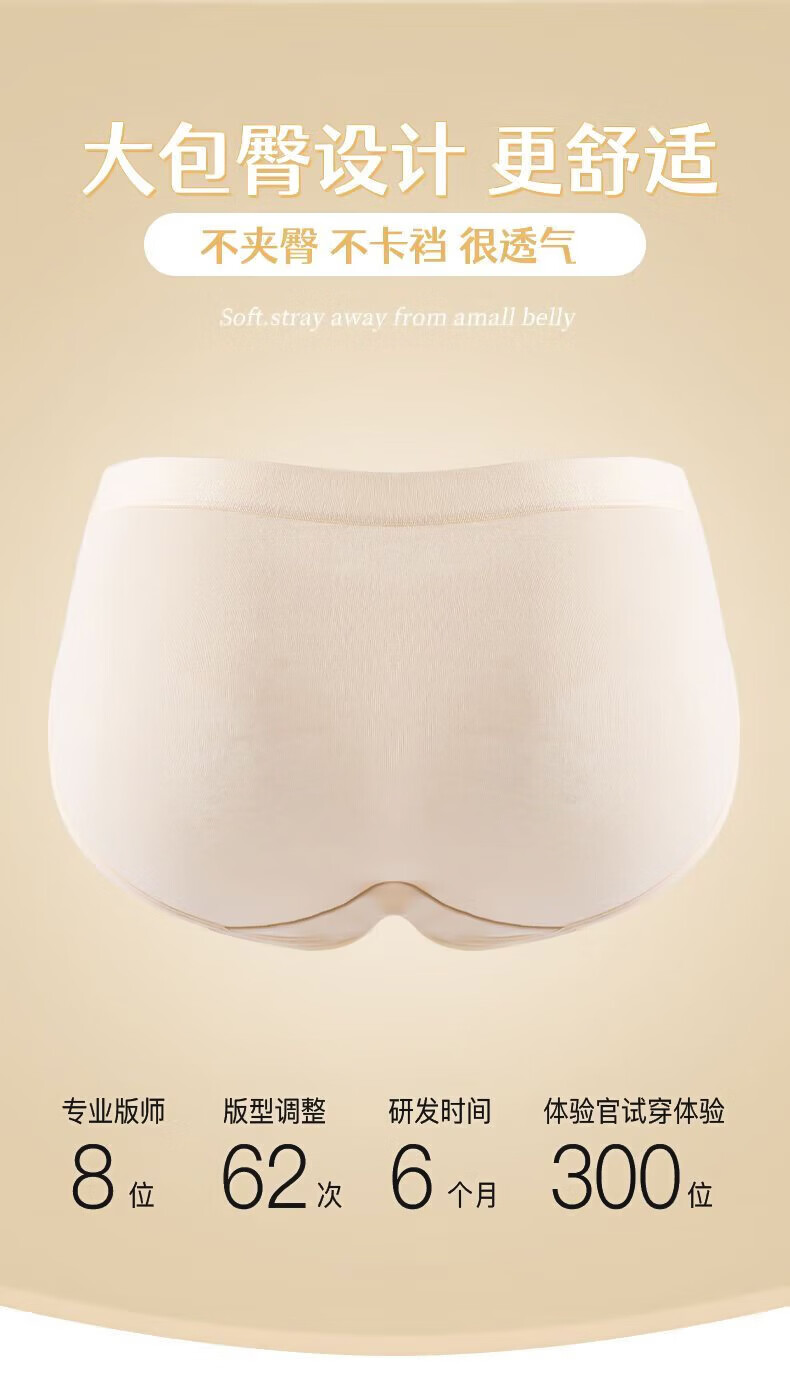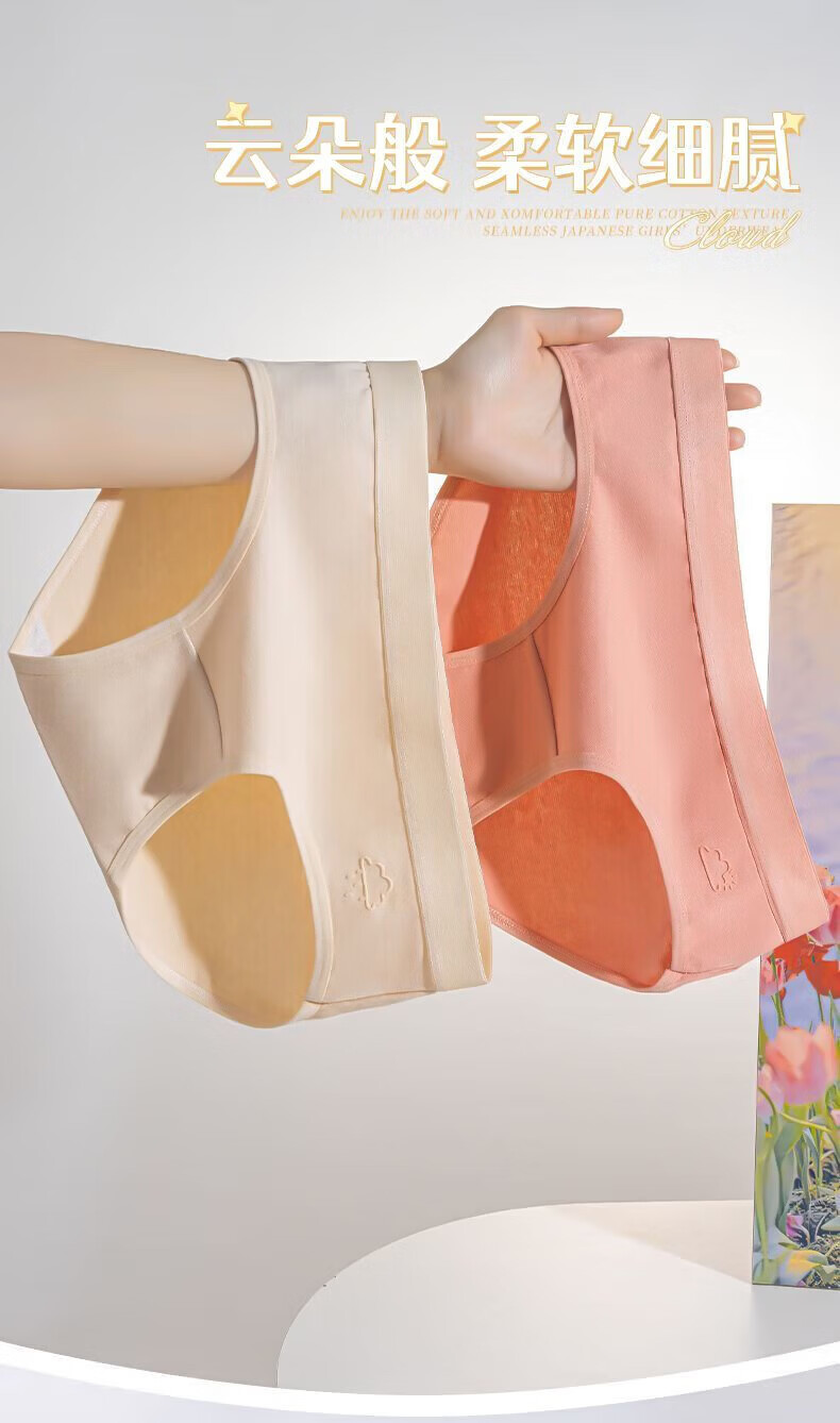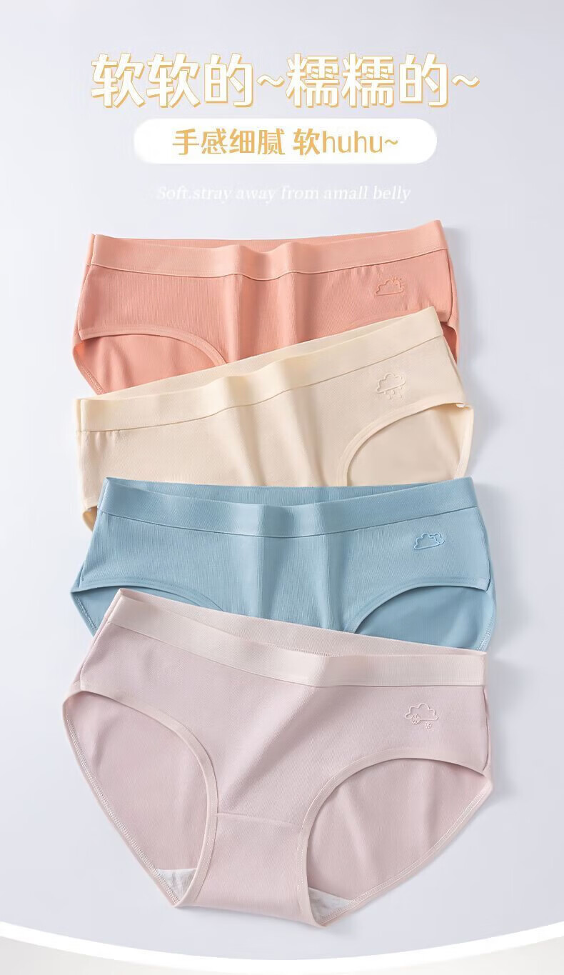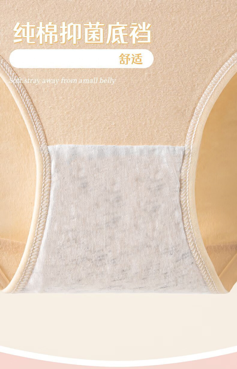 稚蝶50支精梳棉 全棉中高腰收腹大码女士内裤10A抑菌三角纯棉内裤女 混色【A类抗菌】 肤色+粉色+蓝色+白色随机 8条 2XL 140-160斤