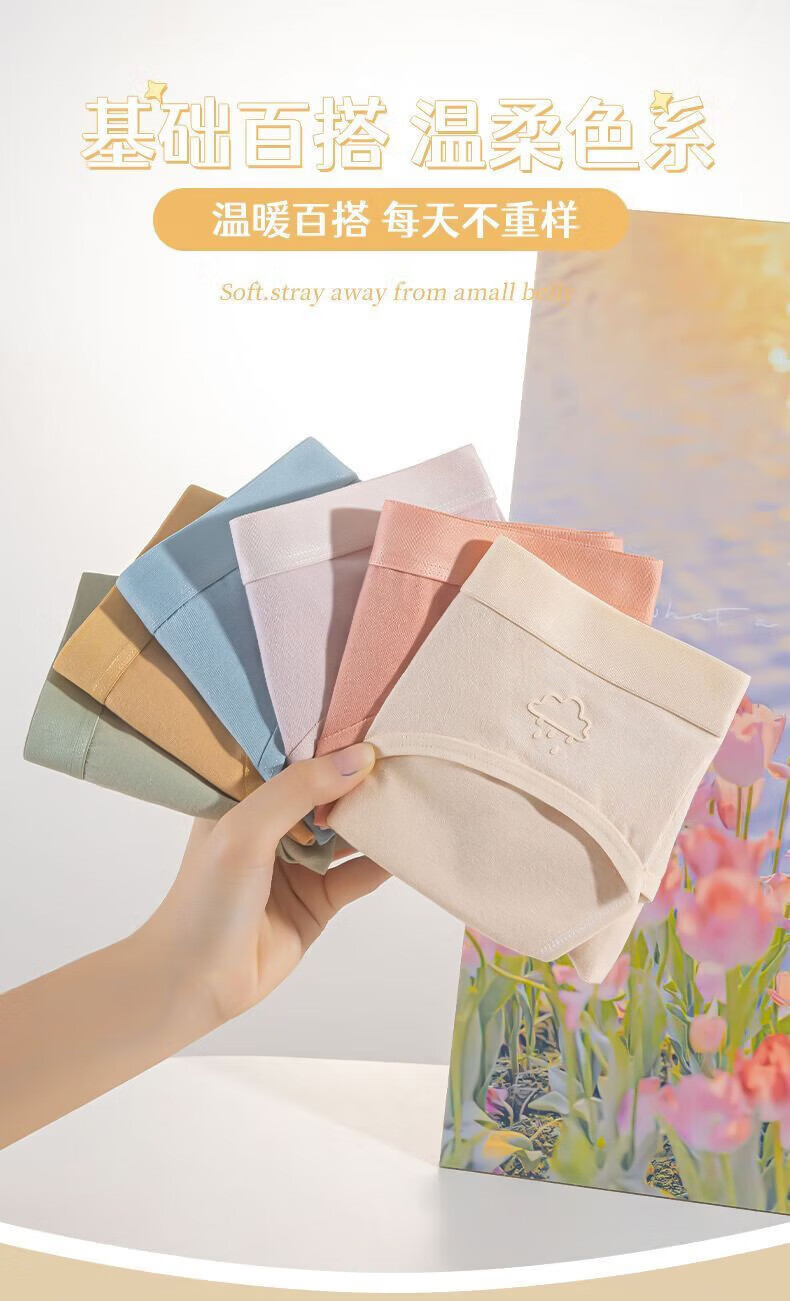 Ordifen女士内裤女纯棉少女日系撞色少女中腰学生透气女式短裤头 混色 6条 L