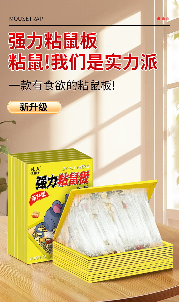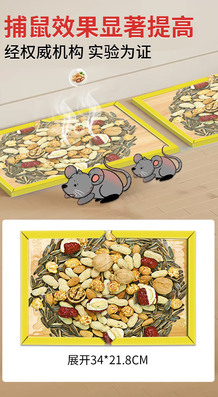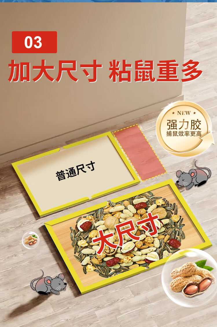 驰天粘鼠板抓老鼠诱鼠粮食灭老鼠强力粘鼠贴强力胶捉地鼠专用加大加厚 3张装