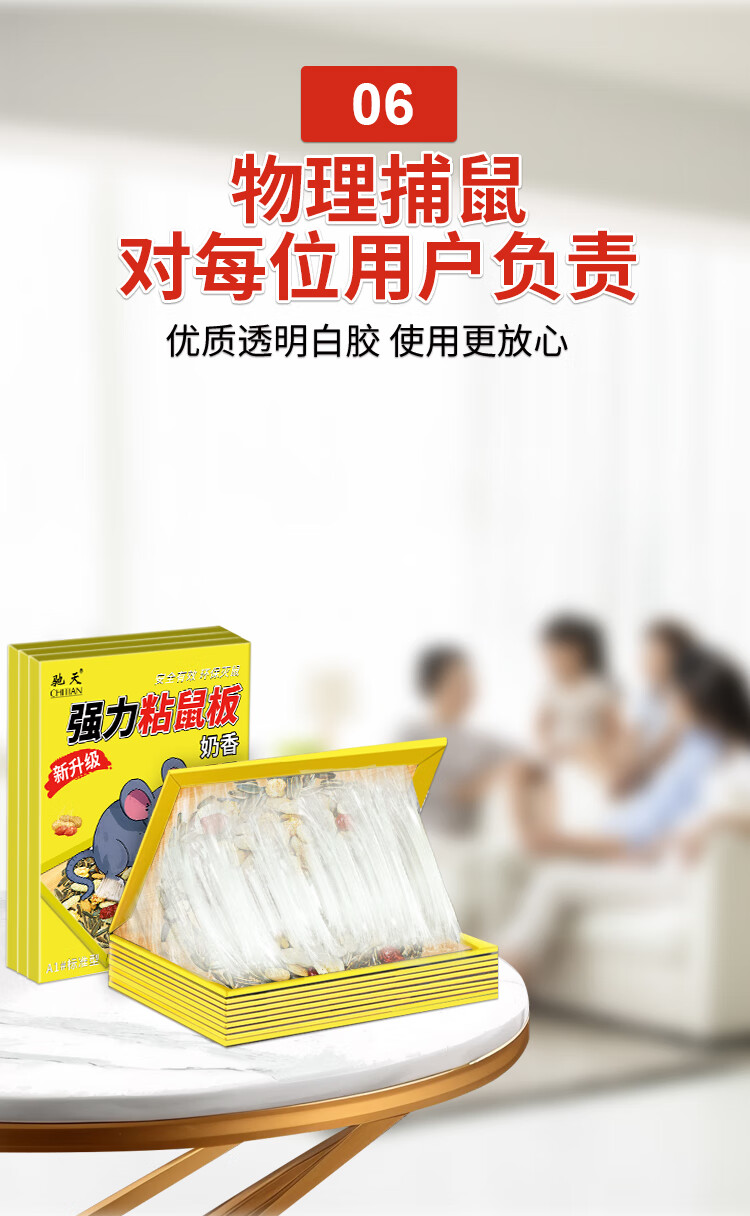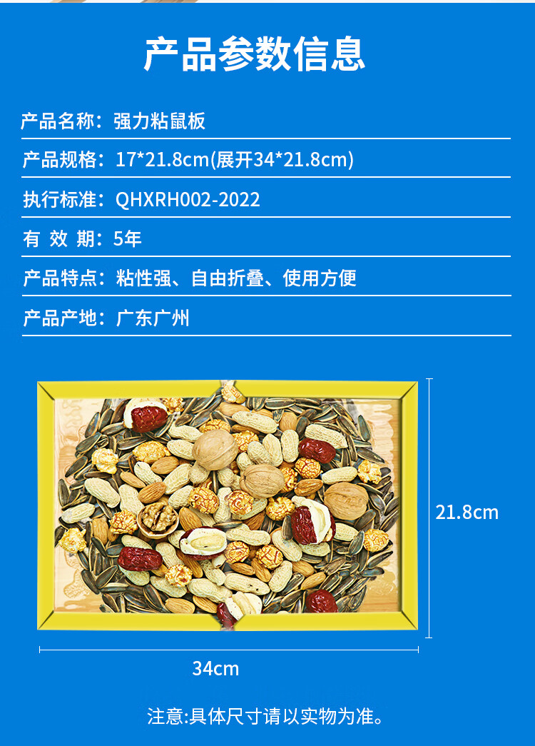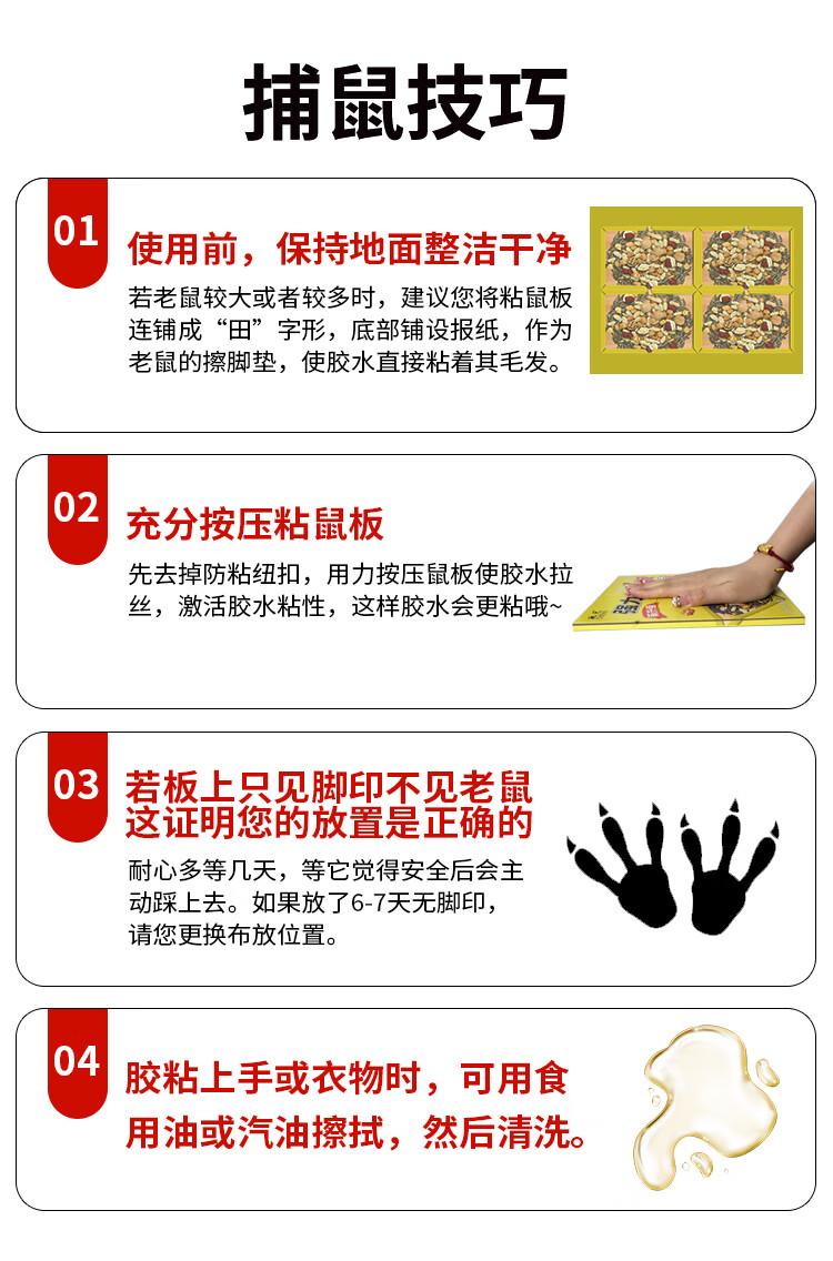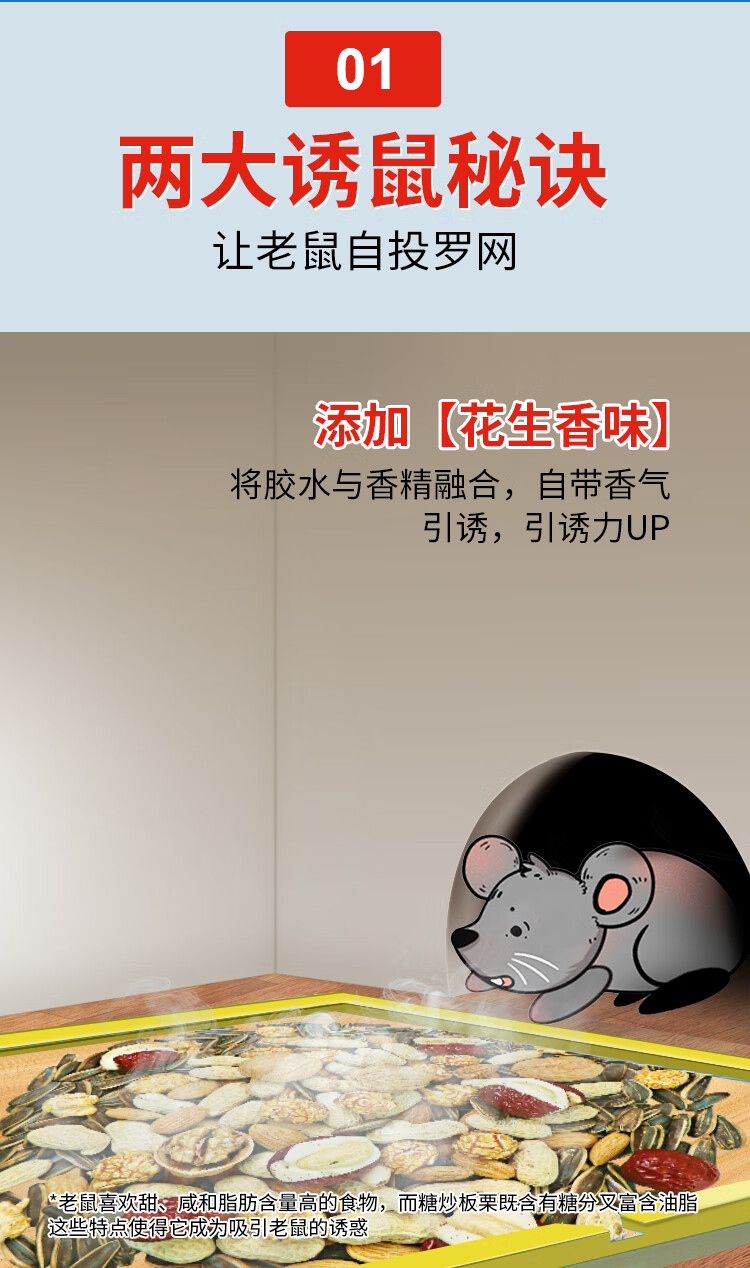 驰天粘鼠板抓老鼠诱鼠粮食灭老鼠强力粘鼠贴强力胶捉地鼠专用加大加厚 3张装