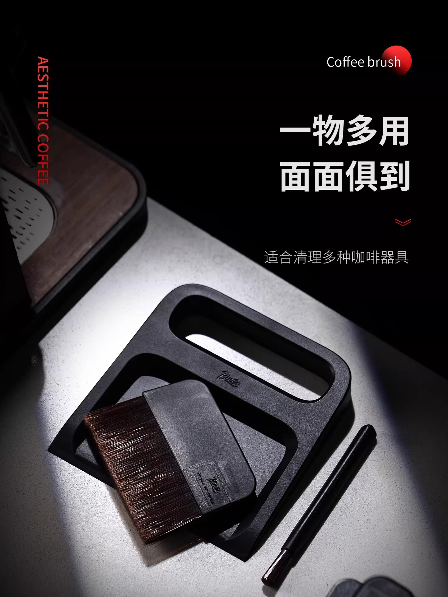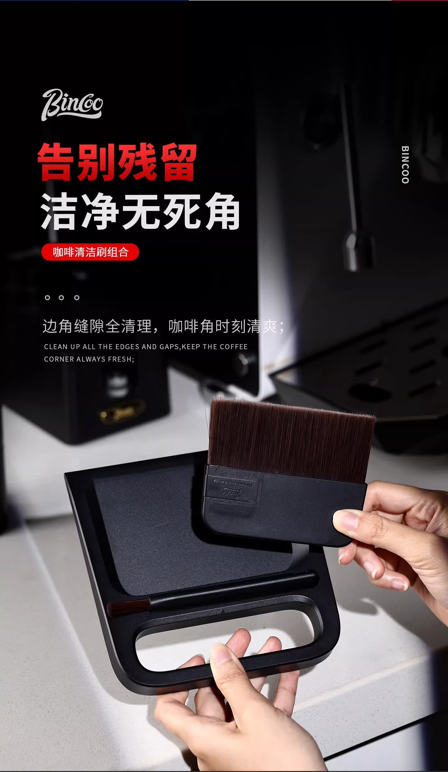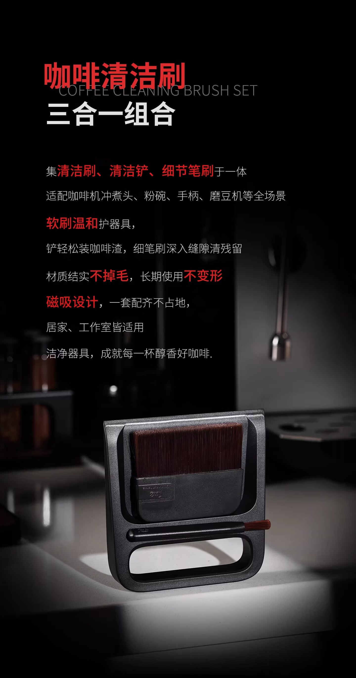 Bincoo咖啡专用清洁刷磁吸收纳套装托盘咖啡清理毛刷 笔刷