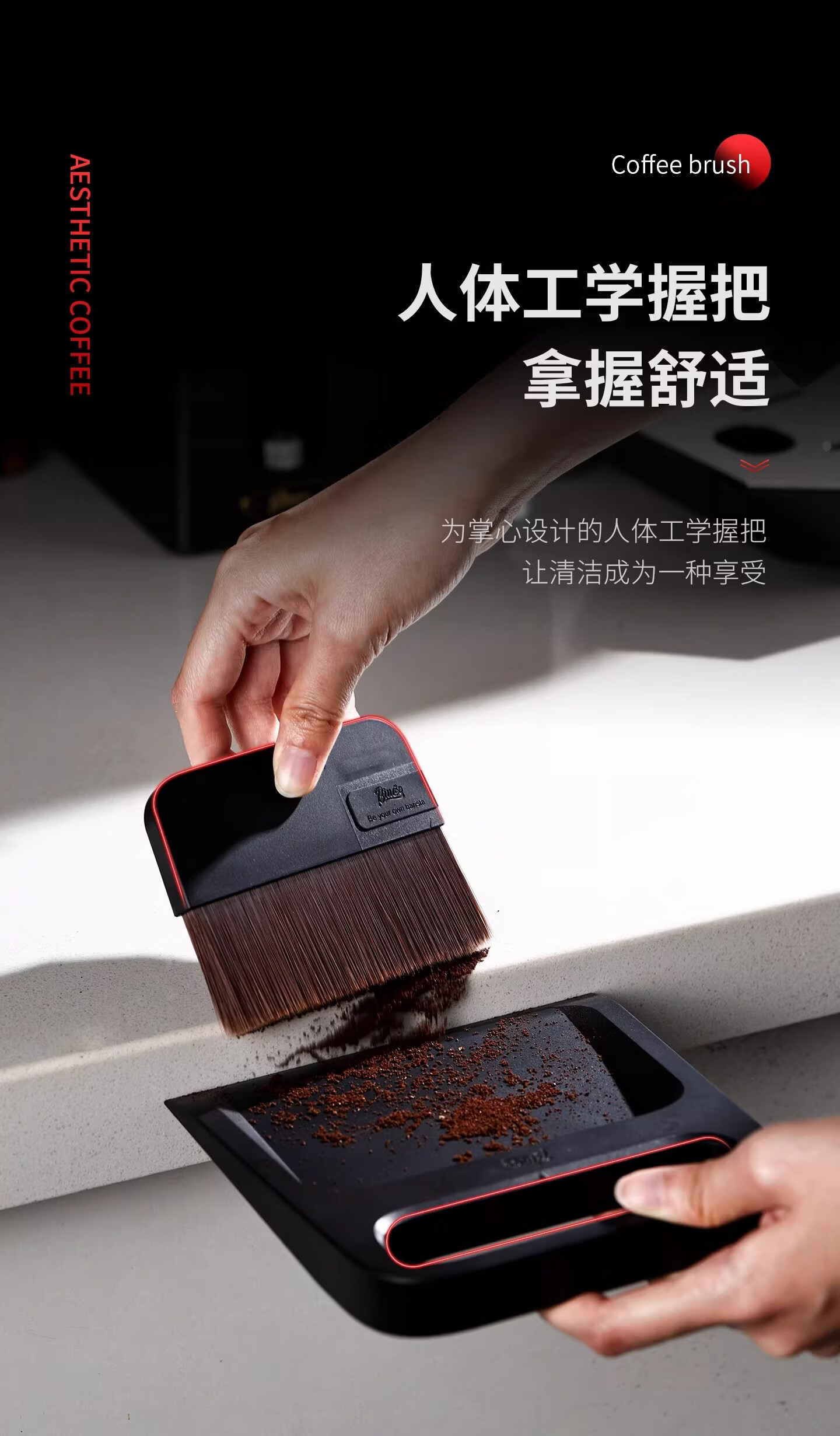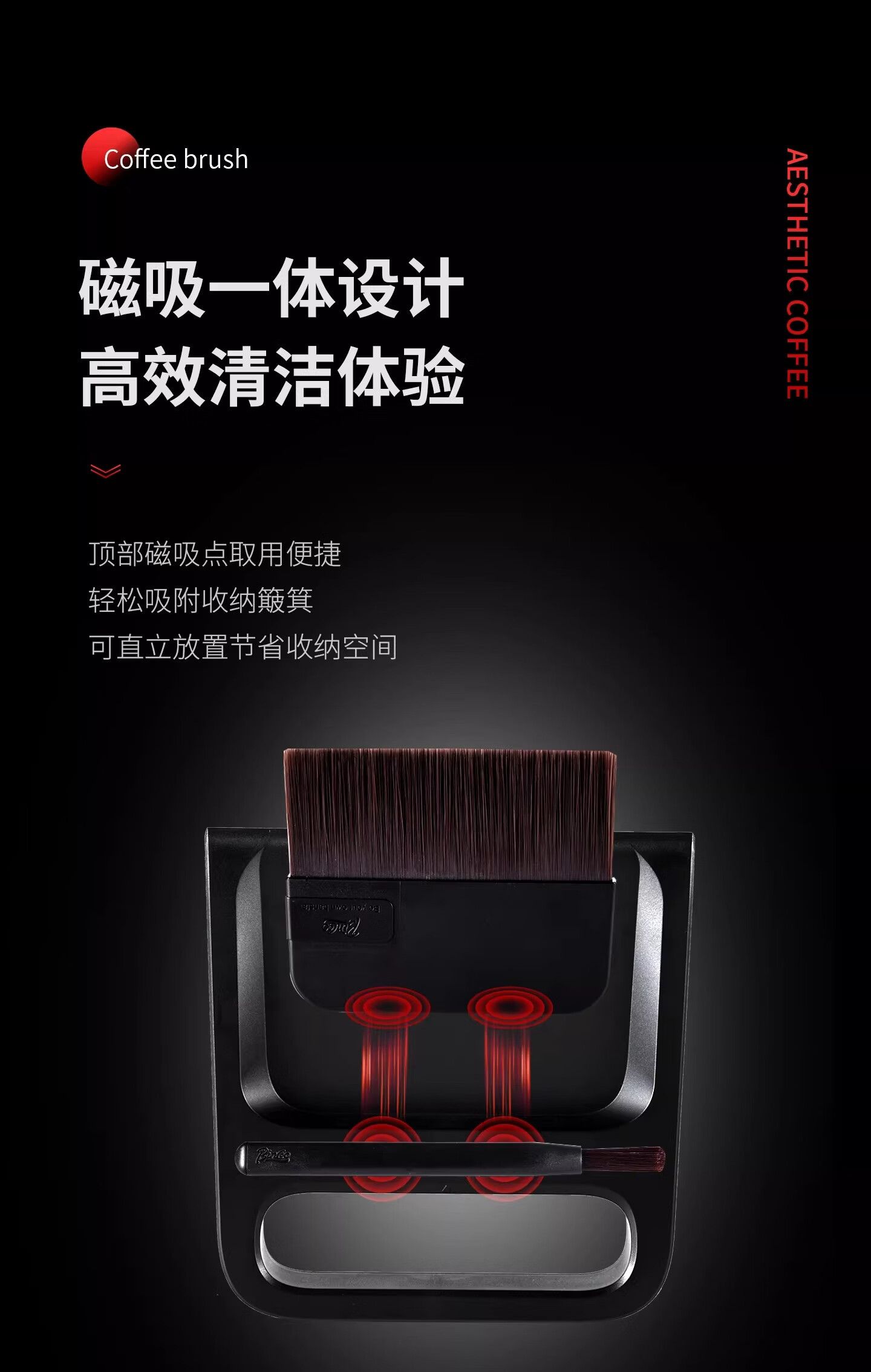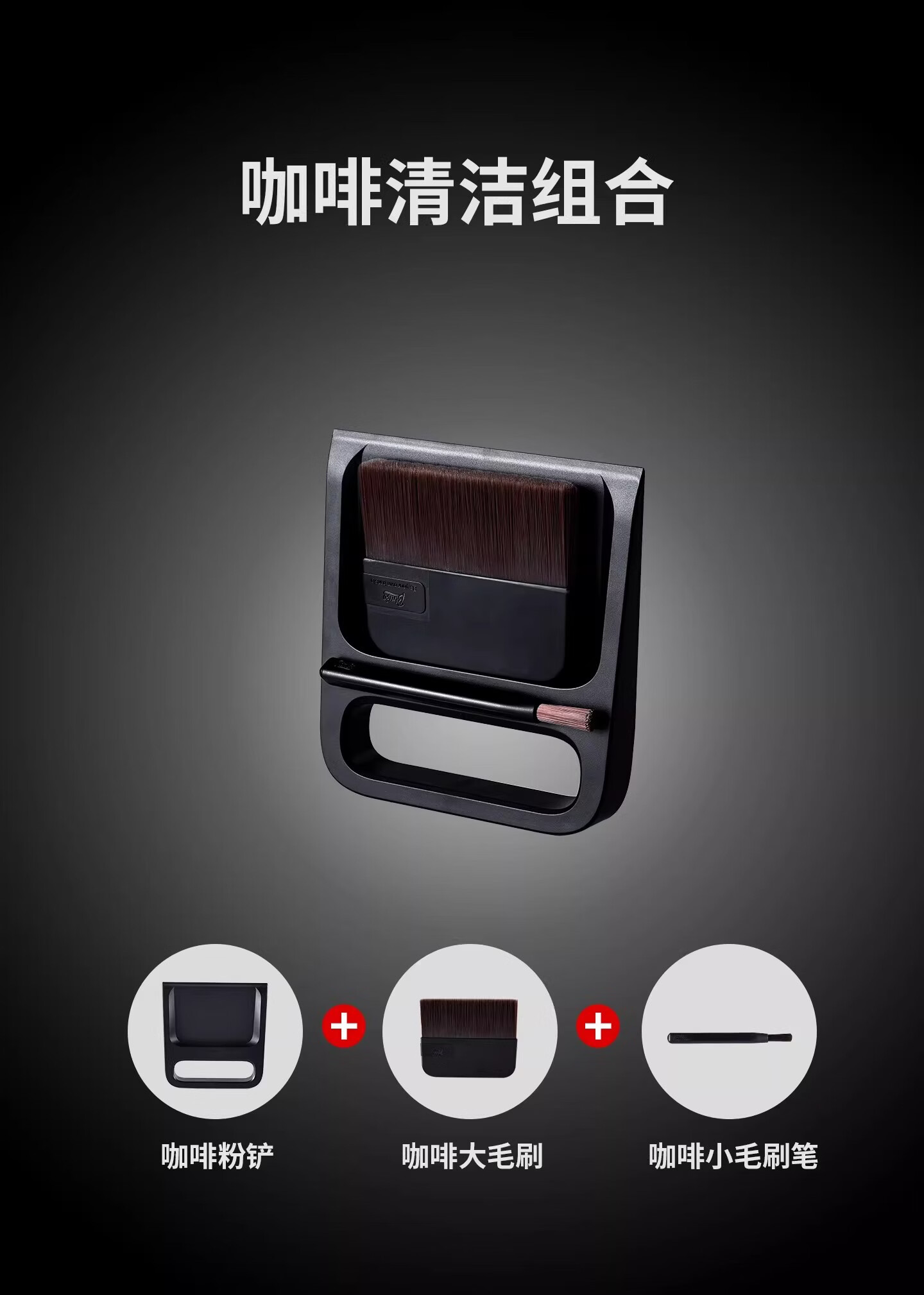 Bincoo咖啡专用清洁刷磁吸收纳套装托盘咖啡清理毛刷 笔刷