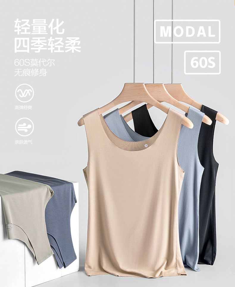 宜而爽60S莫代尔女士背心春夏季薄款修身纯色内搭新款外穿显瘦打底上衣 天空白 2XL 【130-150斤】