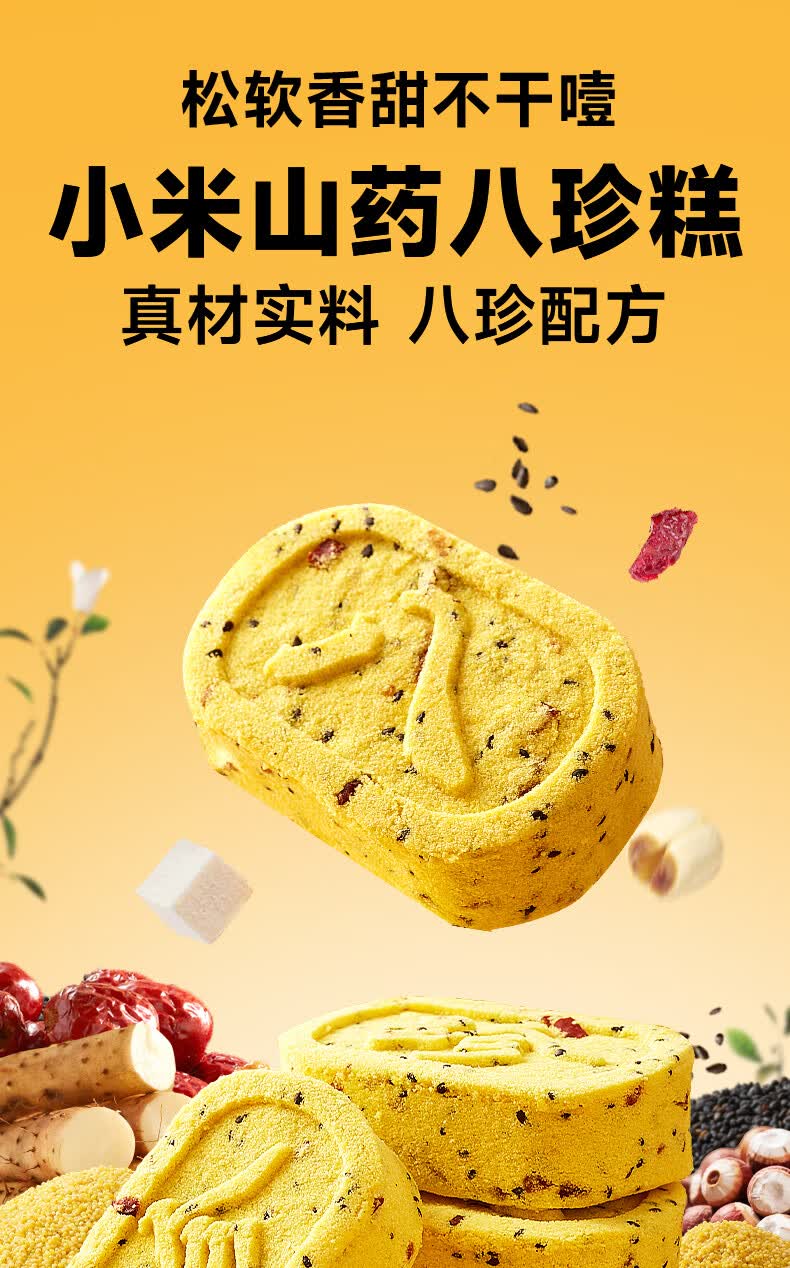 比比赞(BIBIZAN)小米红枣山药八珍糕250g蔓越莓饱腹健身代餐点心面包休闲零食品