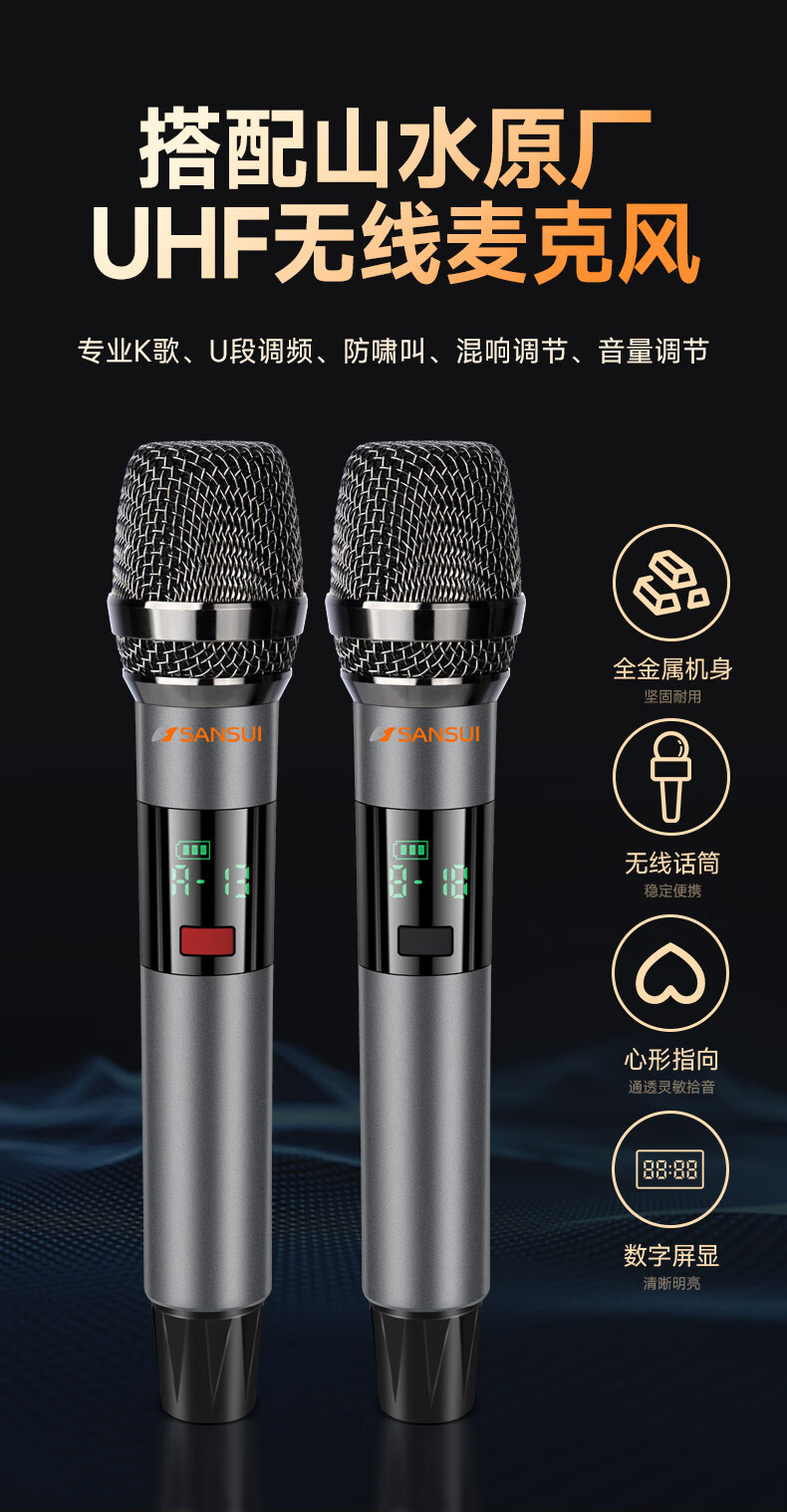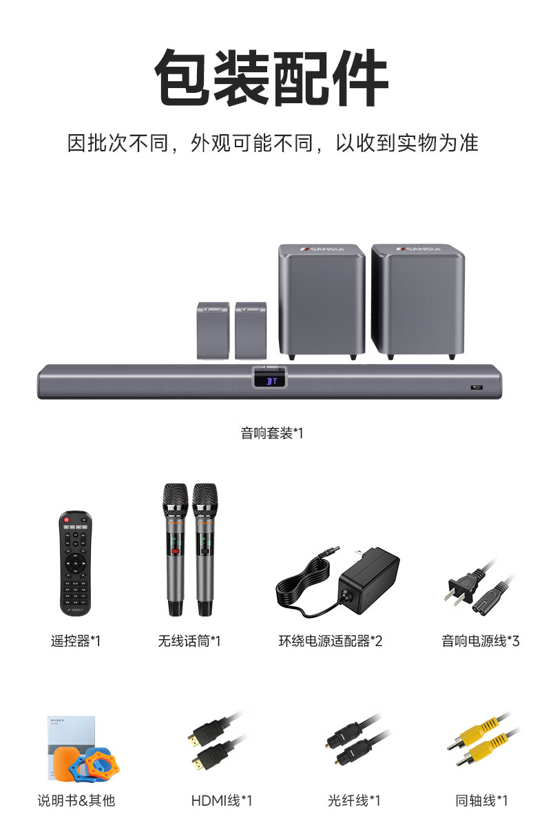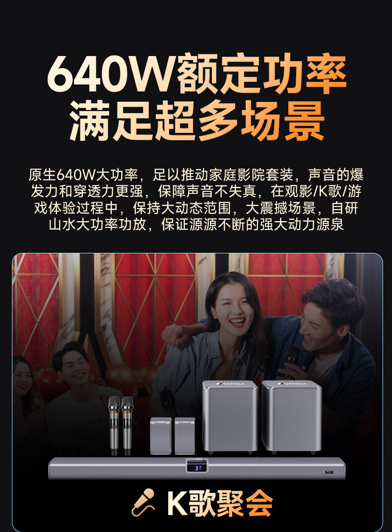 山水(SANSUI)DV-99C 7.2.4杜比全景声回音壁电视音响 家庭影院KTV套装投影仪智能蓝牙壁挂免布线无线带麦克风