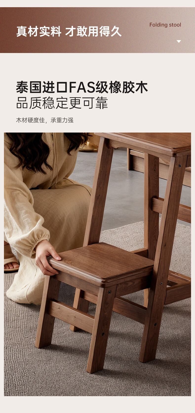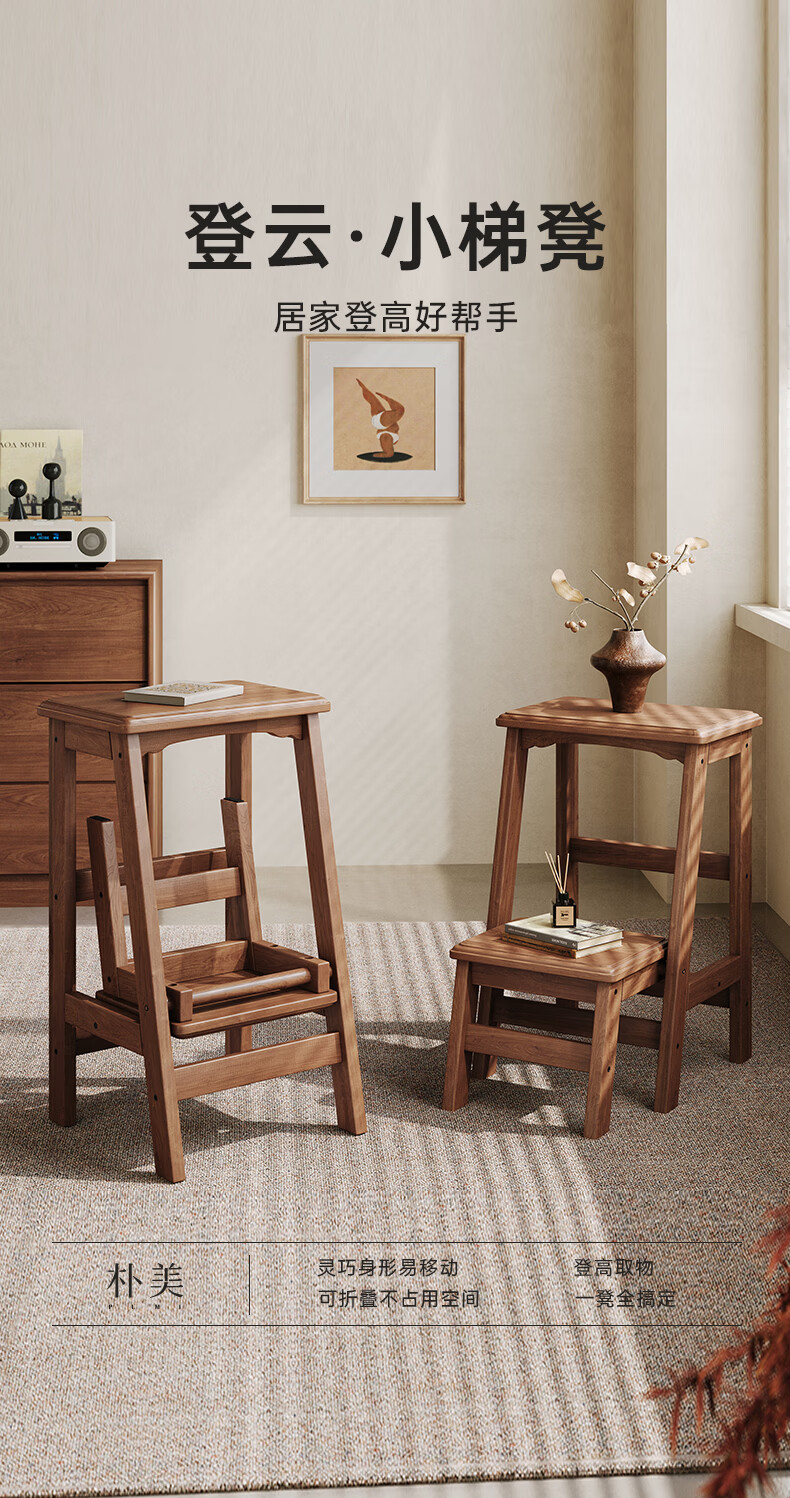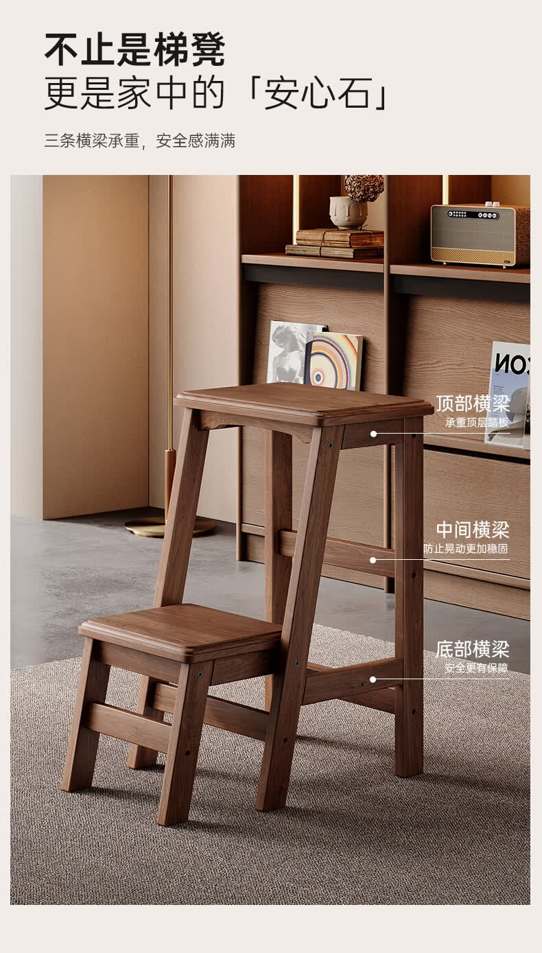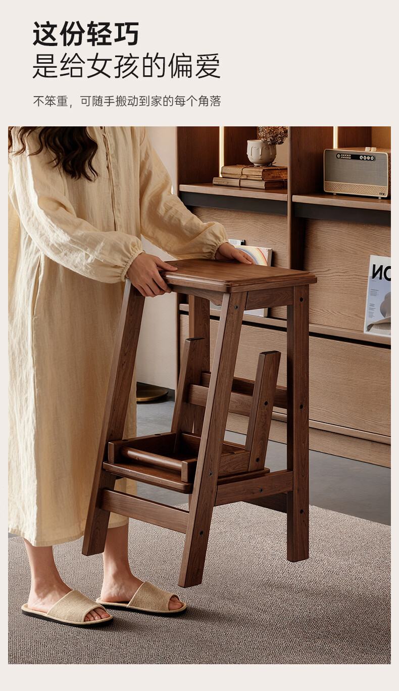 朴美实木梯凳两用家用多功能梯凳折叠凳子登高取物凳稳步三步阶梯子凳