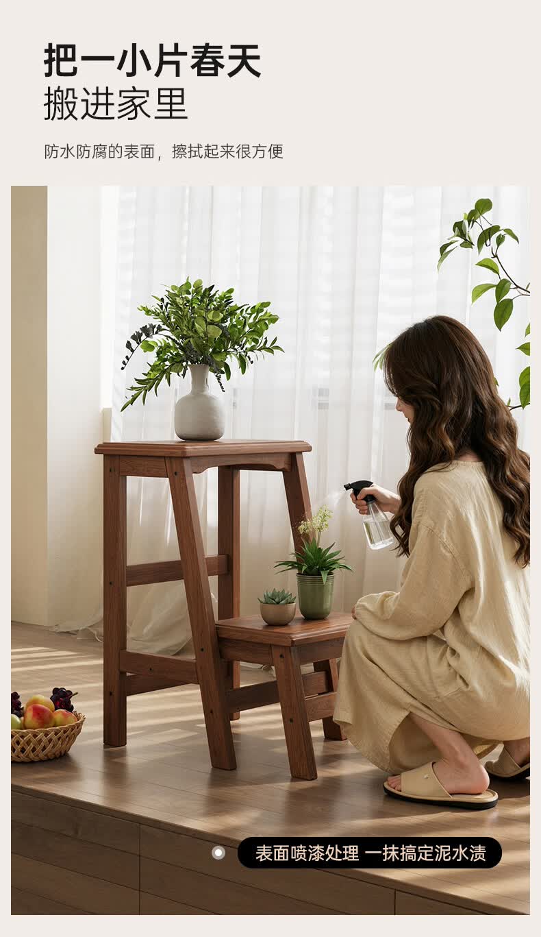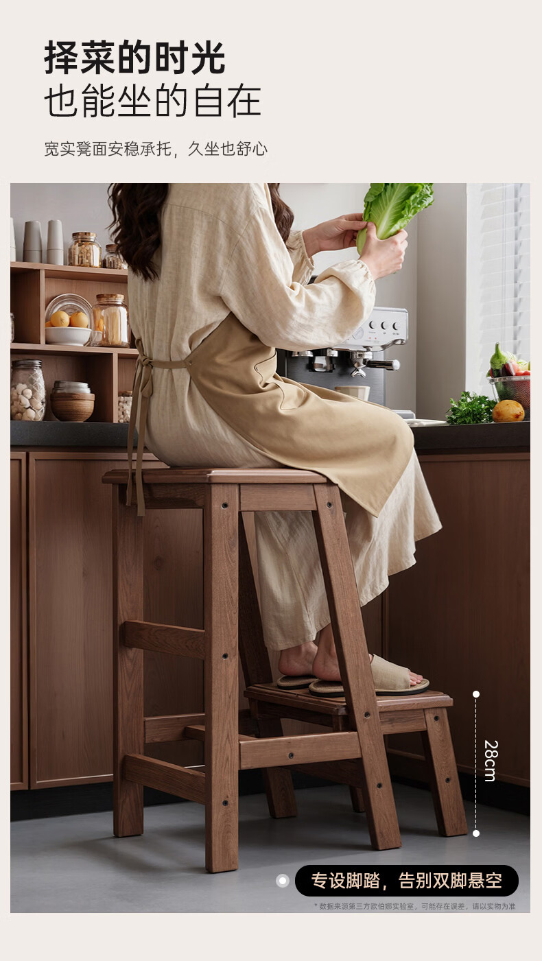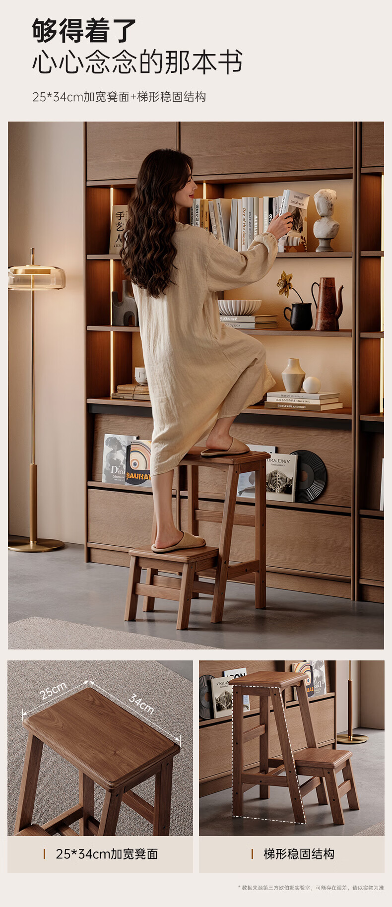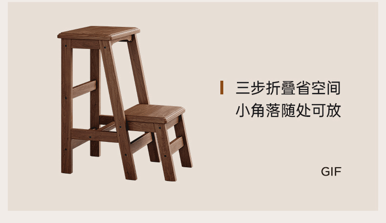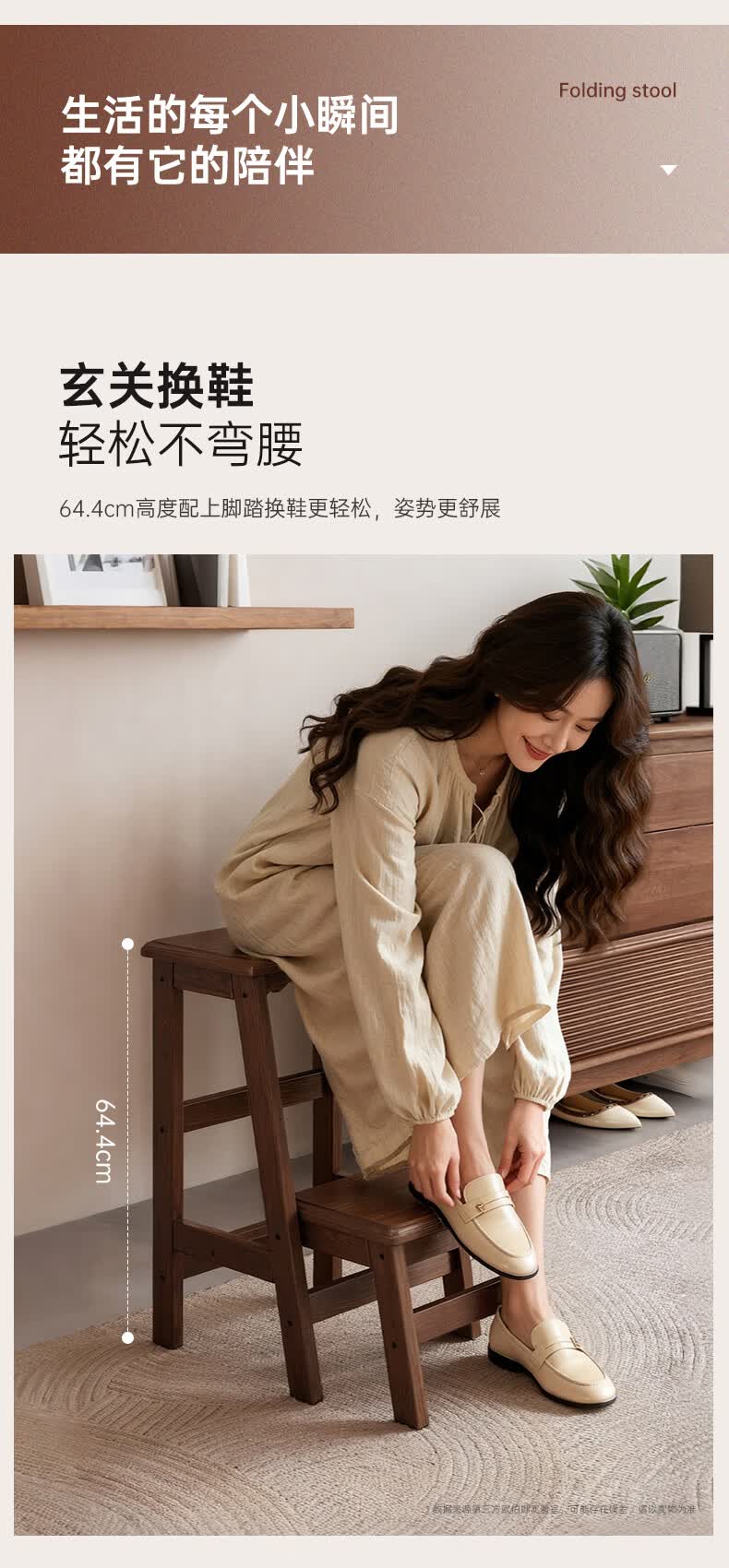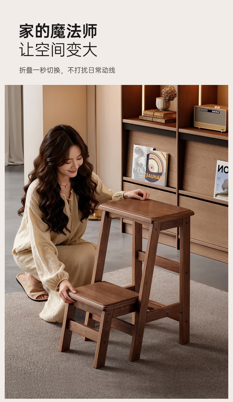 朴美实木梯凳两用家用多功能梯凳折叠凳子登高取物凳稳步三步阶梯子凳