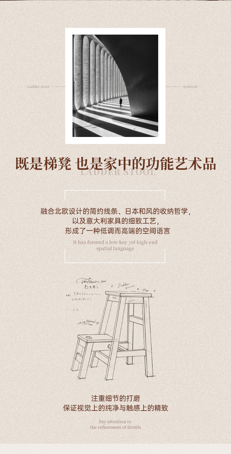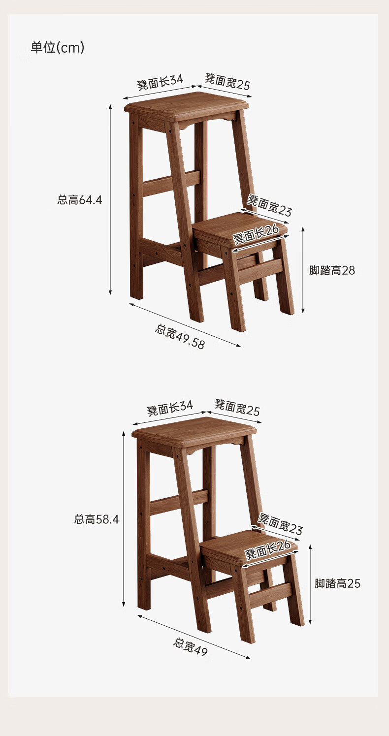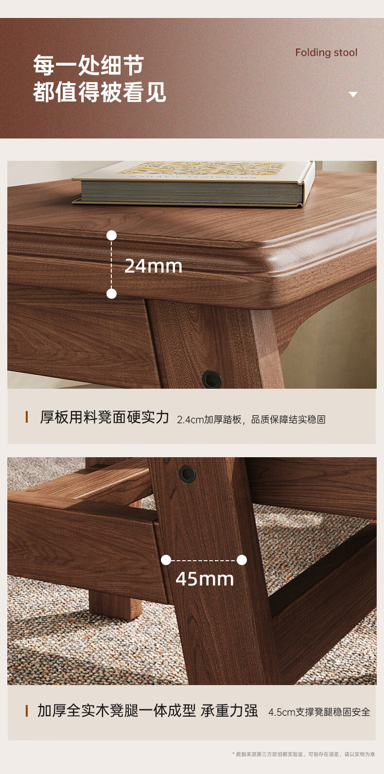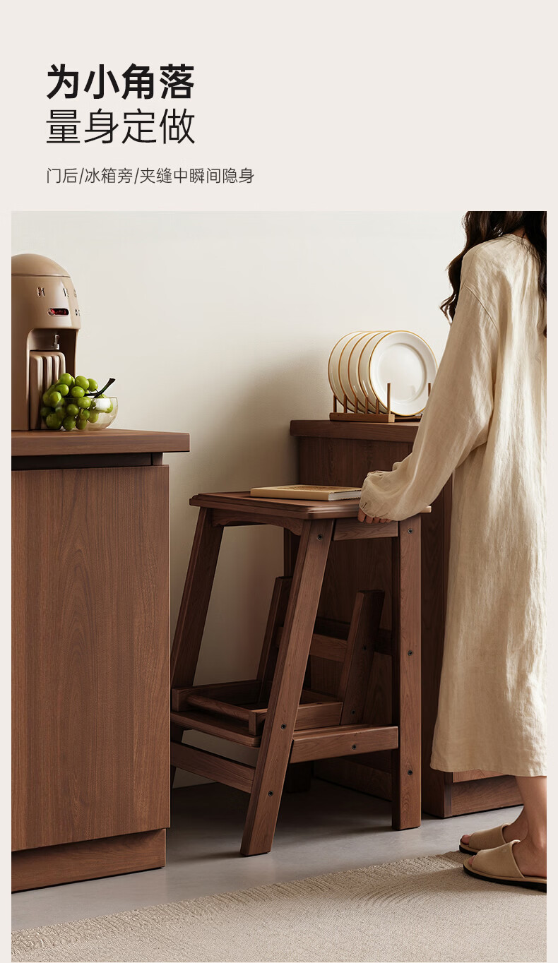 朴美实木梯凳两用家用多功能梯凳折叠凳子登高取物凳稳步三步阶梯子凳