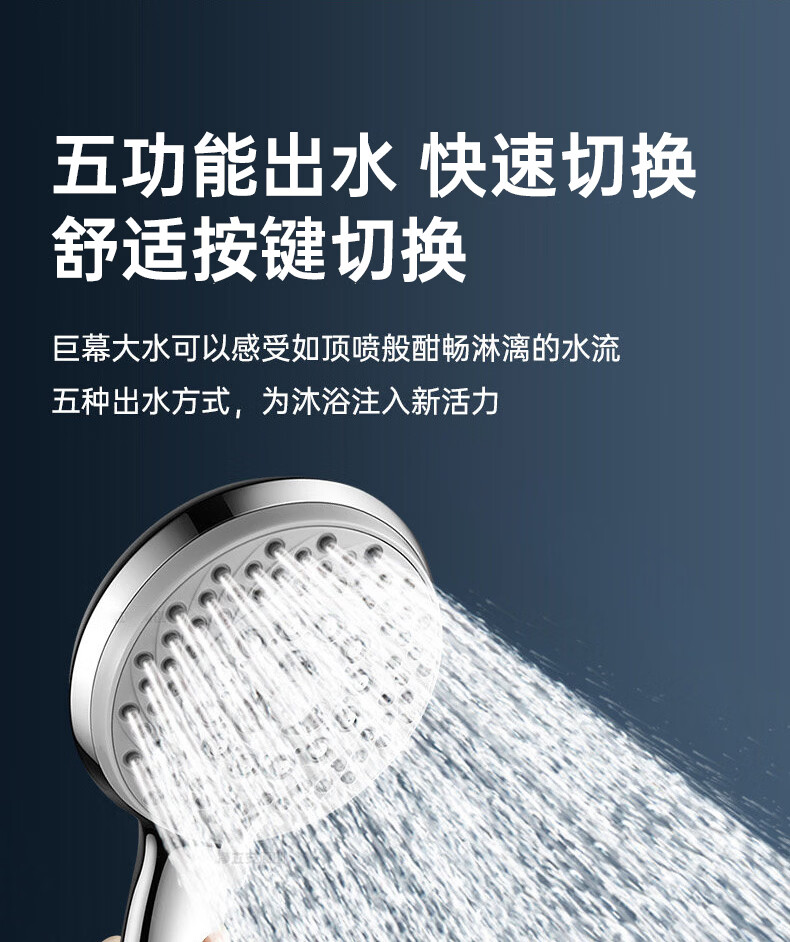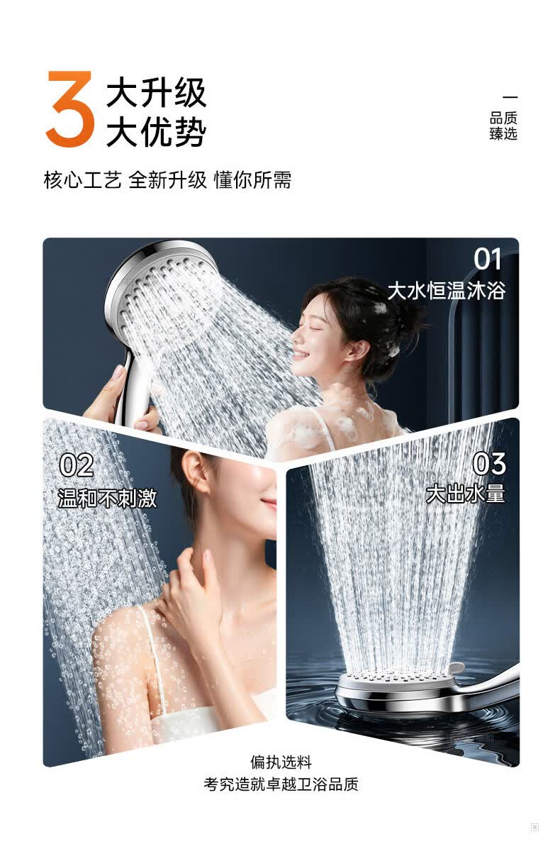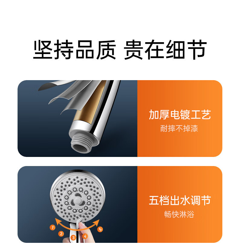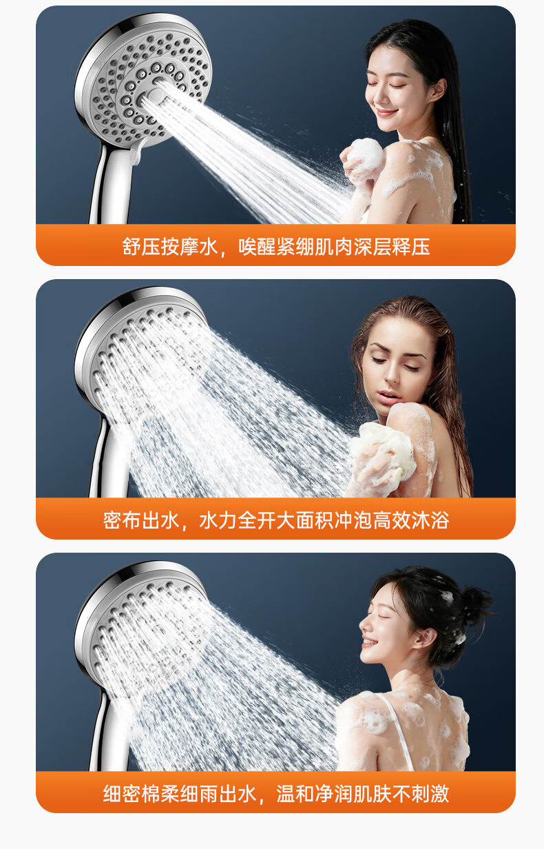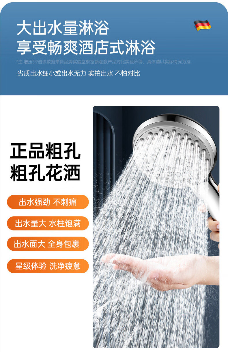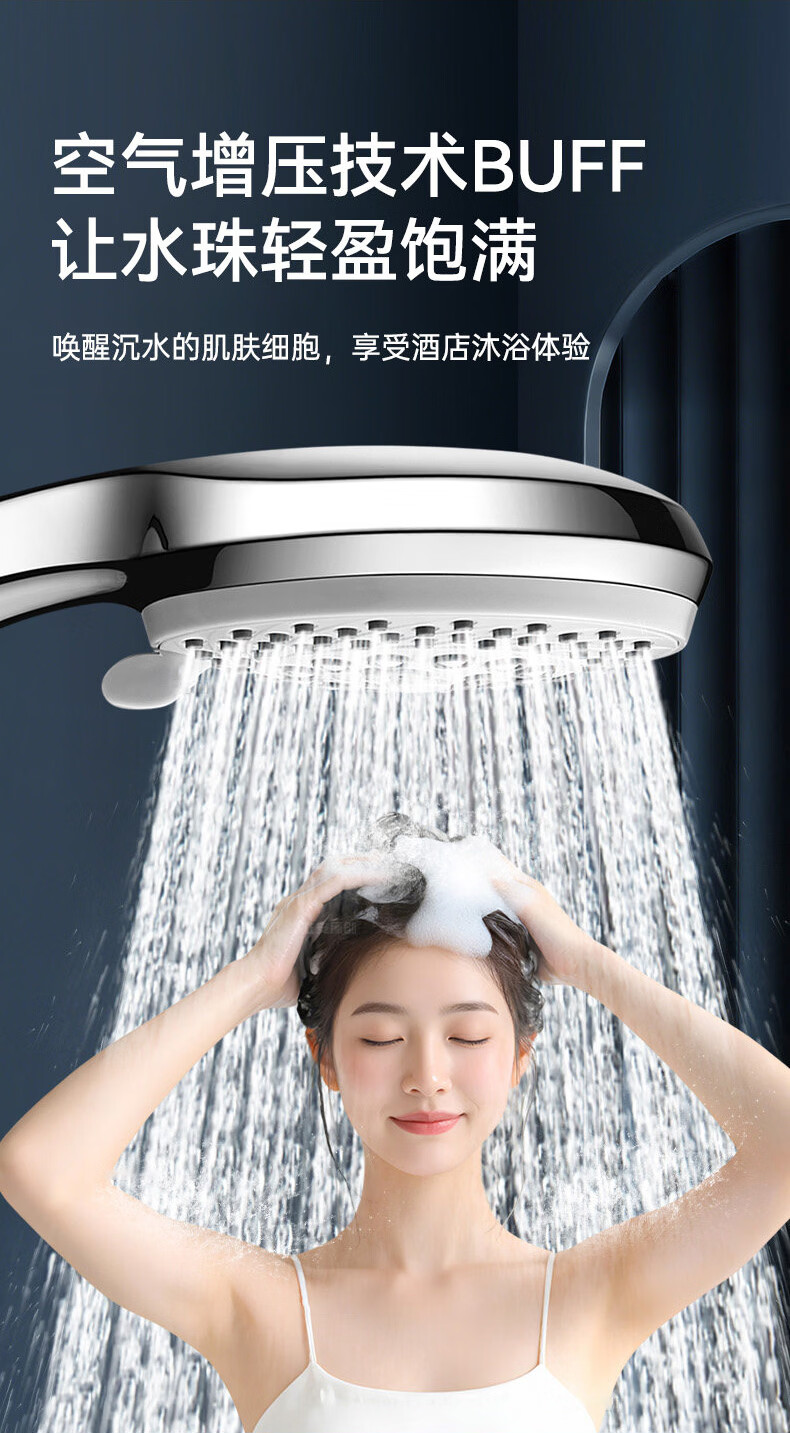 WUZORY【德国】淋浴增压花洒喷头带软管一套家用加压洗澡手持莲蓬头全套 五挡粗孔花洒三件套【旗舰款】 超粗孔增压丨拍一发三超值套装