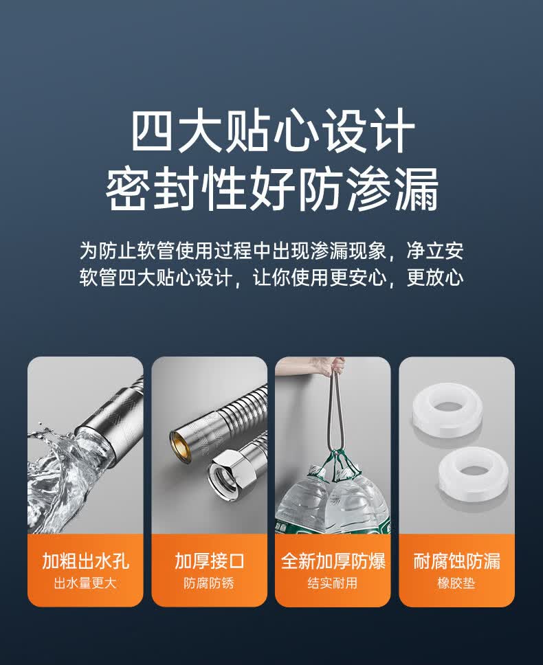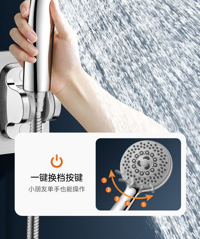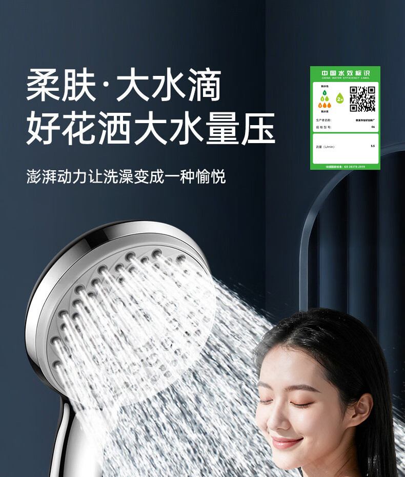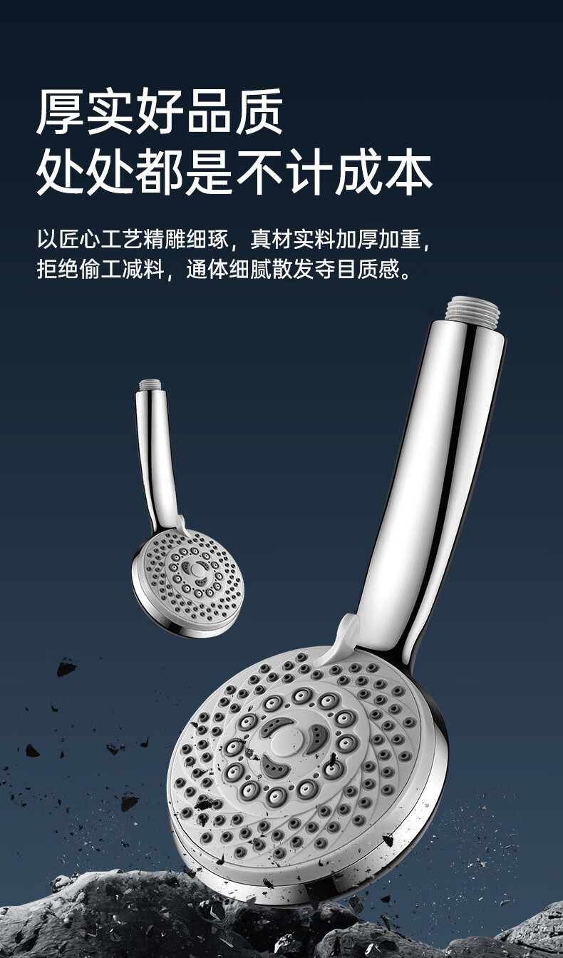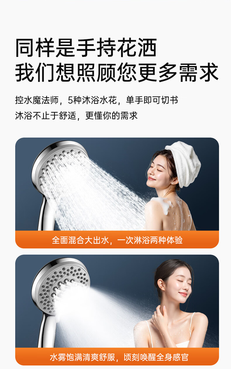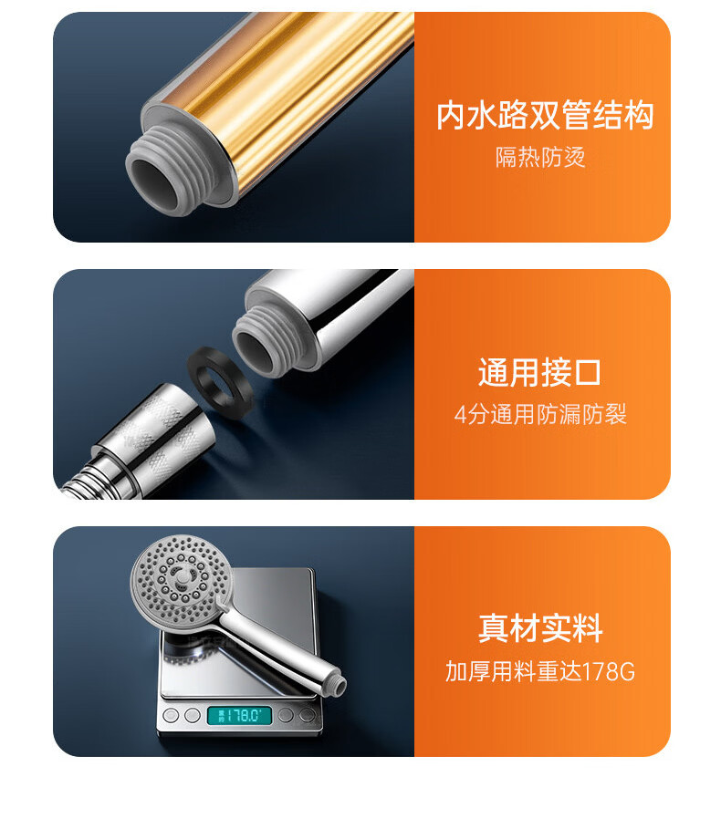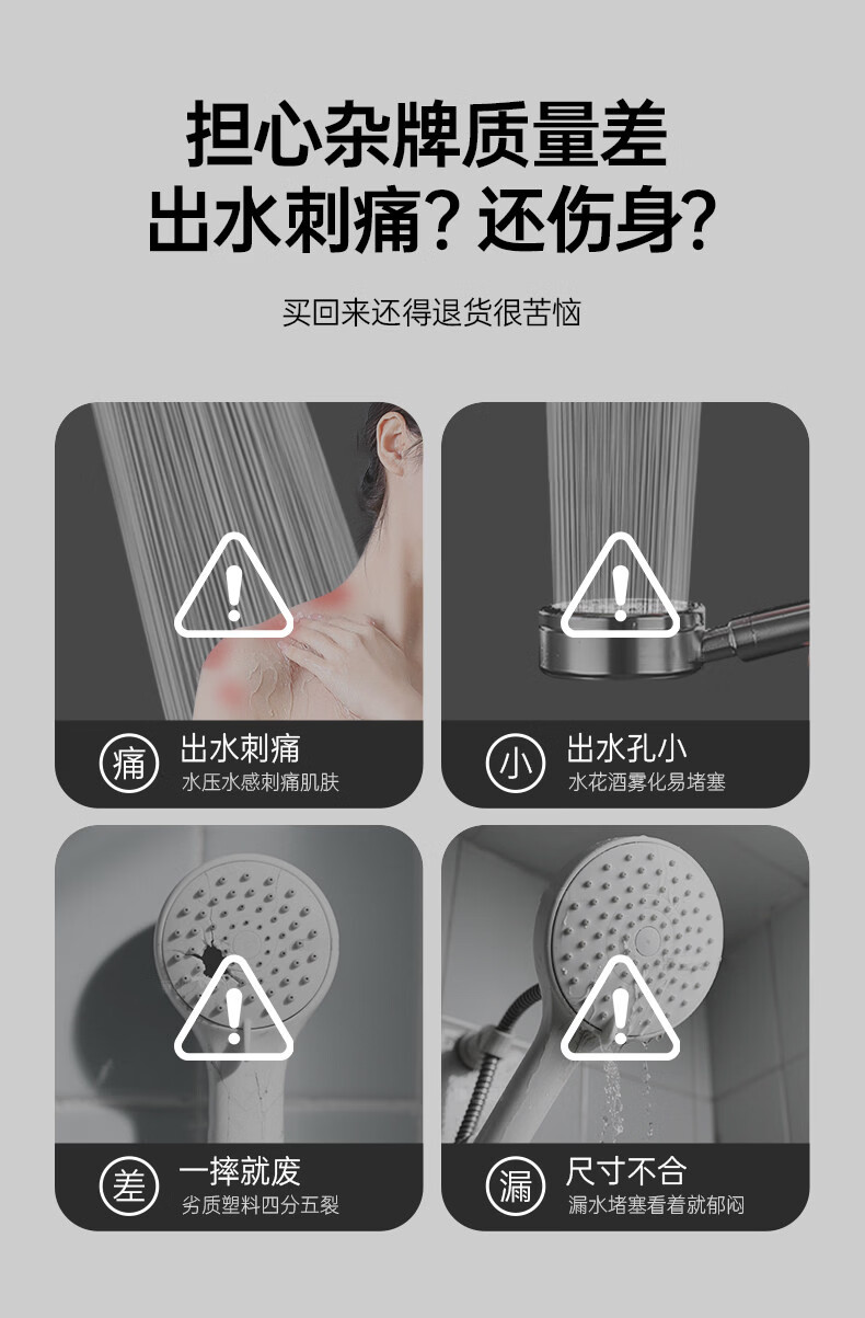 WUZORY【德国】淋浴增压花洒喷头带软管一套家用加压洗澡手持莲蓬头全套 五挡粗孔花洒三件套【旗舰款】 超粗孔增压丨拍一发三超值套装